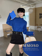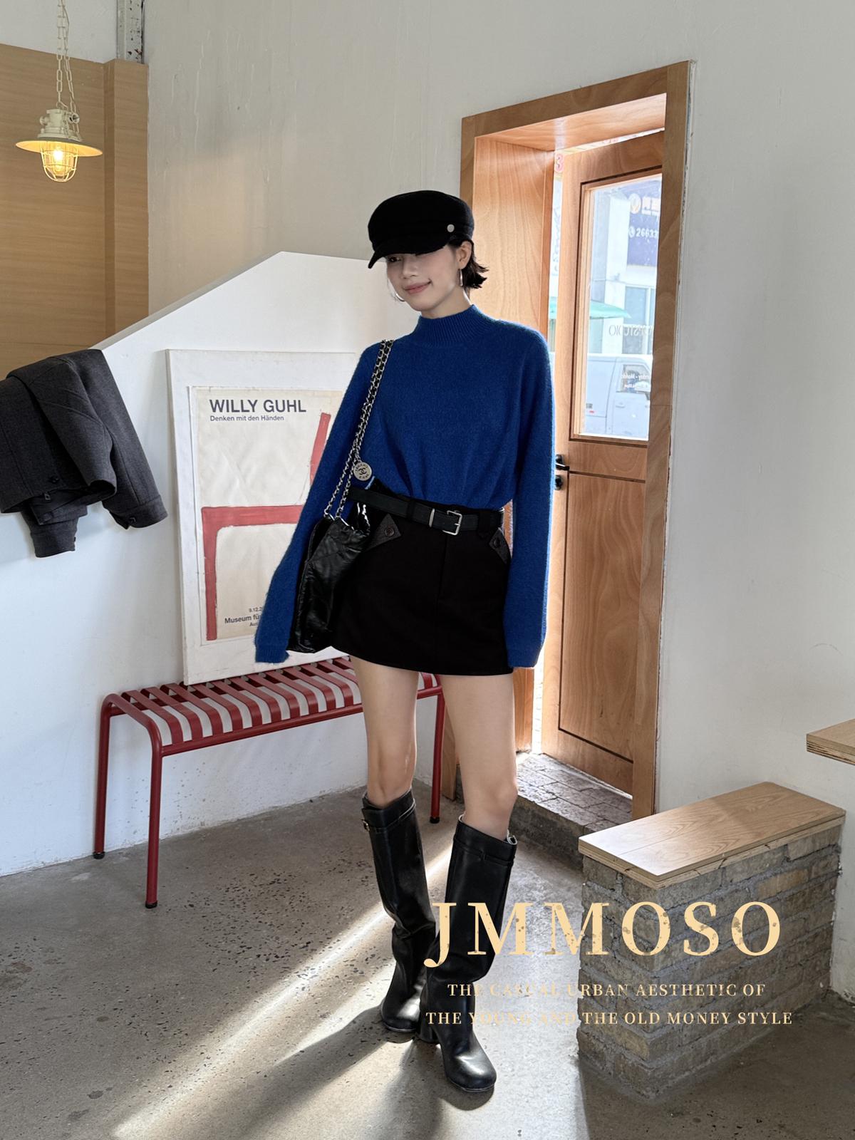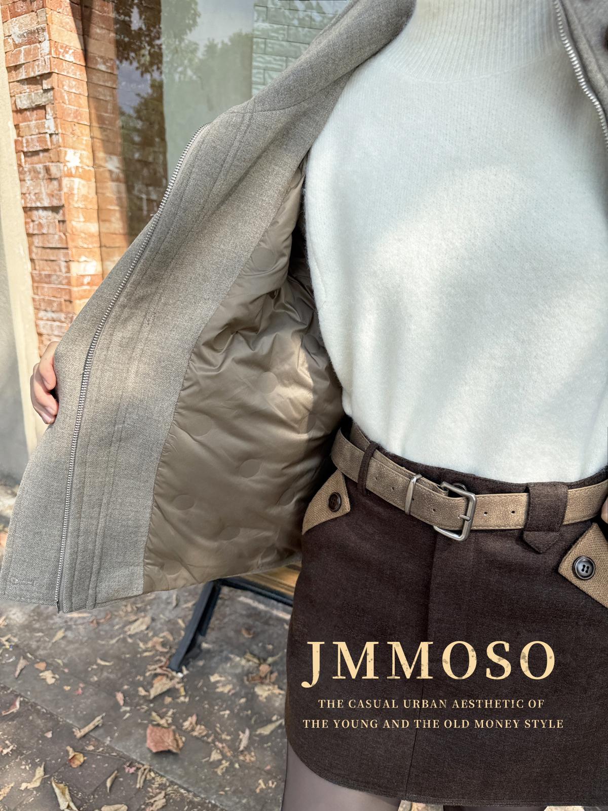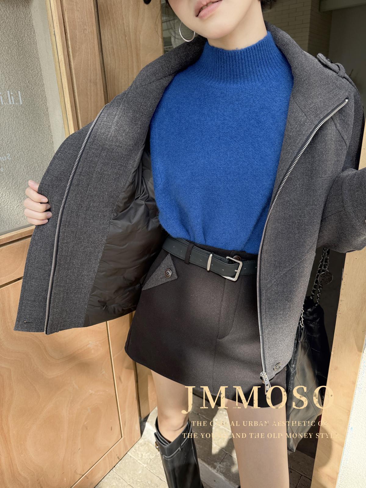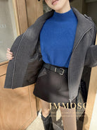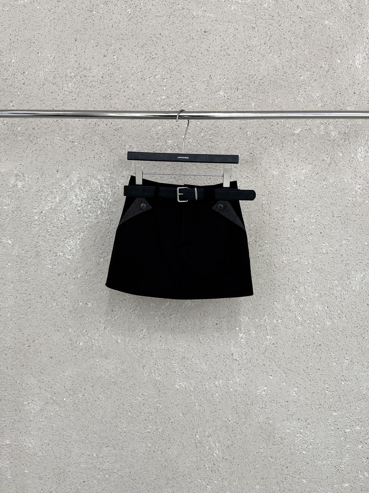 【C7817】時髦博主韓版復古高腰撞色口袋防靜電陽離子呢料A字短裙半身裙(配腰帶)(磨毛加絨內裏)