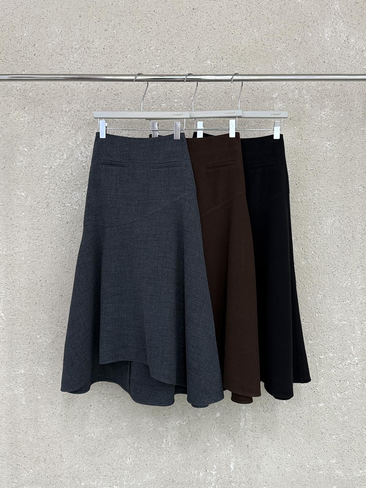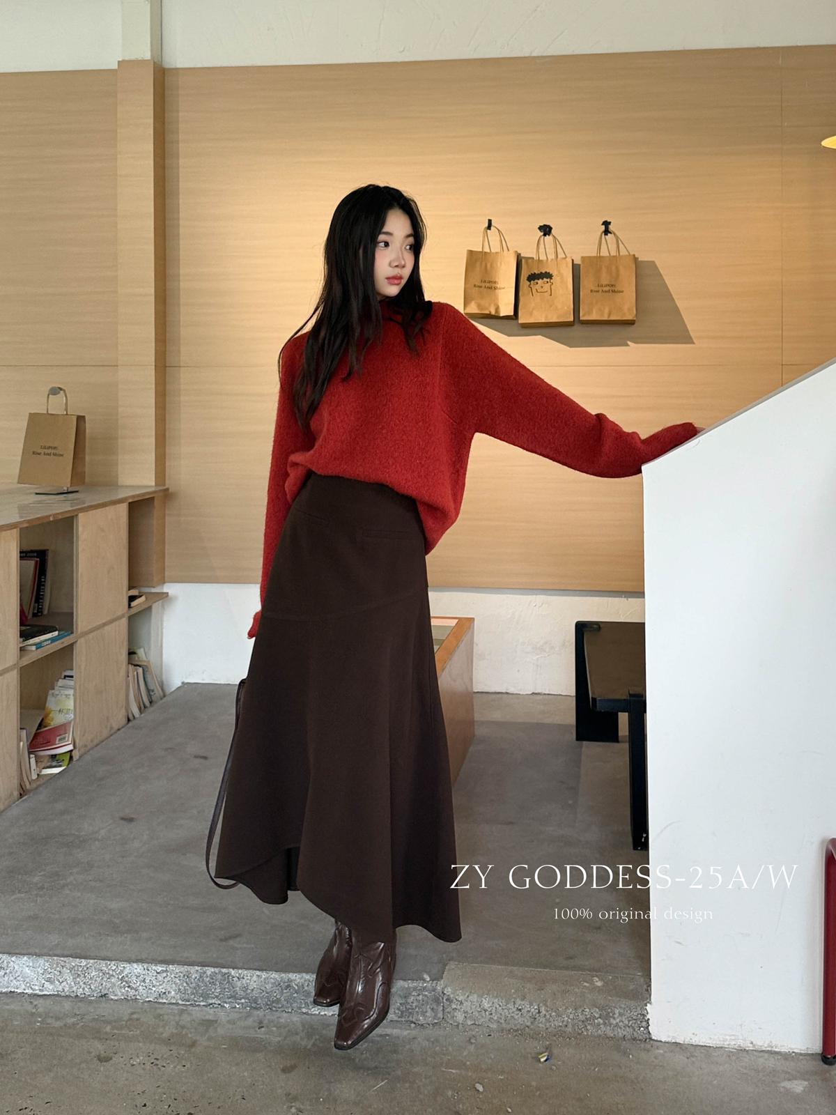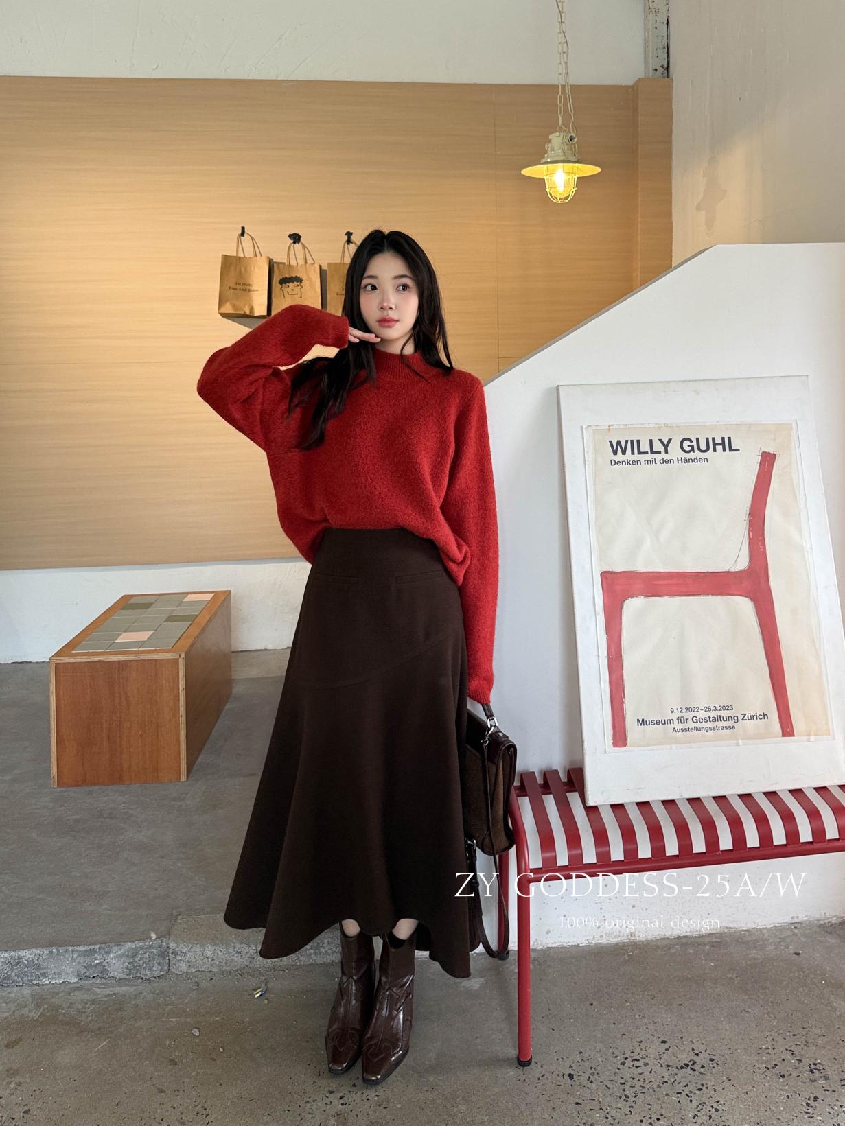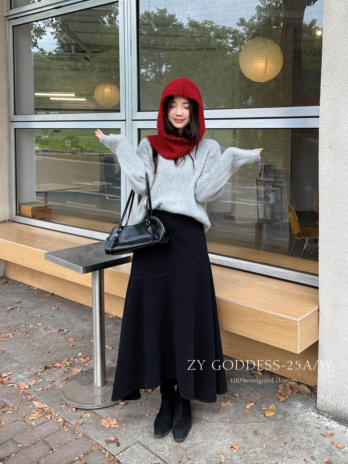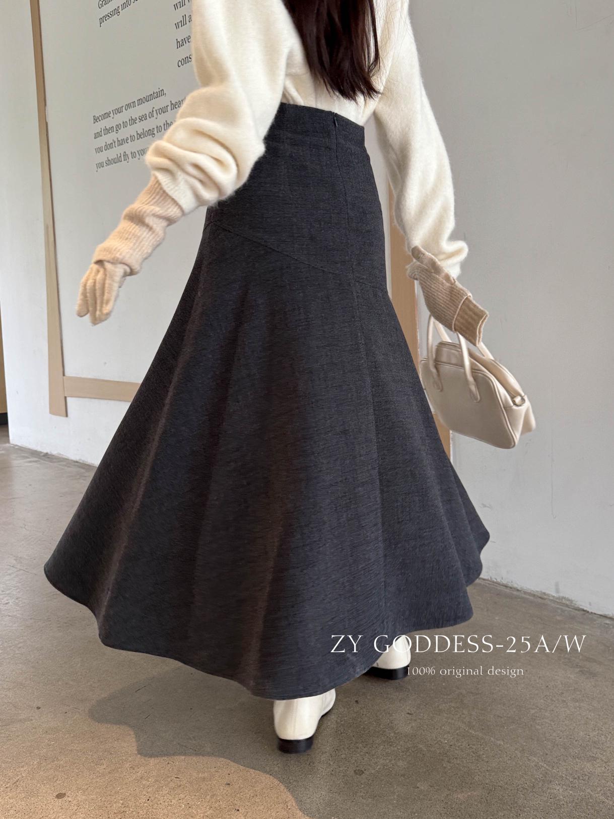 【C7818】韓版復古簡約優雅羊毛保暖高腰拼接不規則裙襬長裙半身裙(含10%羊毛)(牛奶絲抓毛加絨內裏)