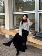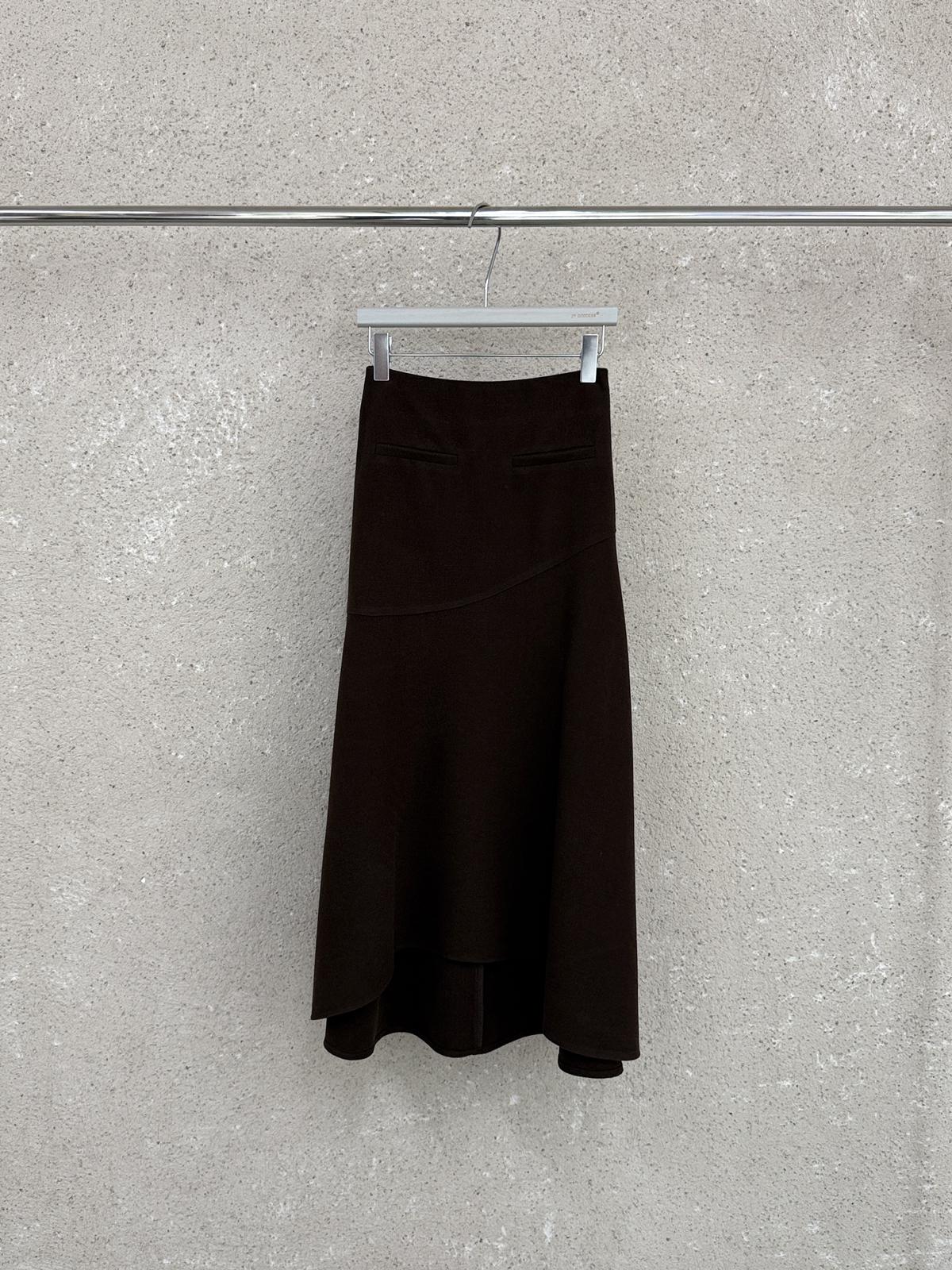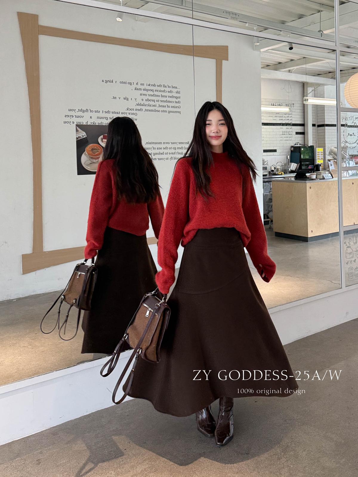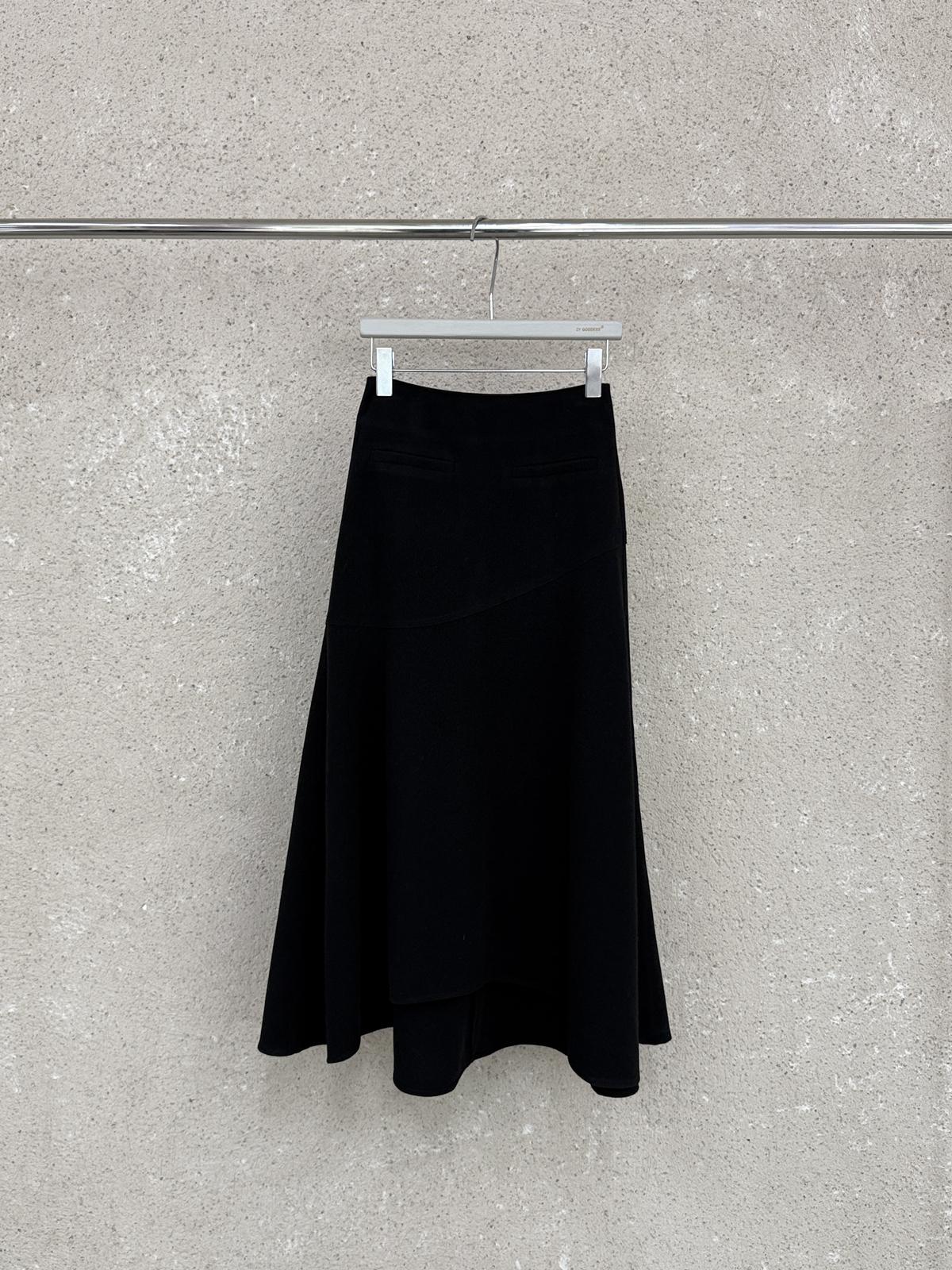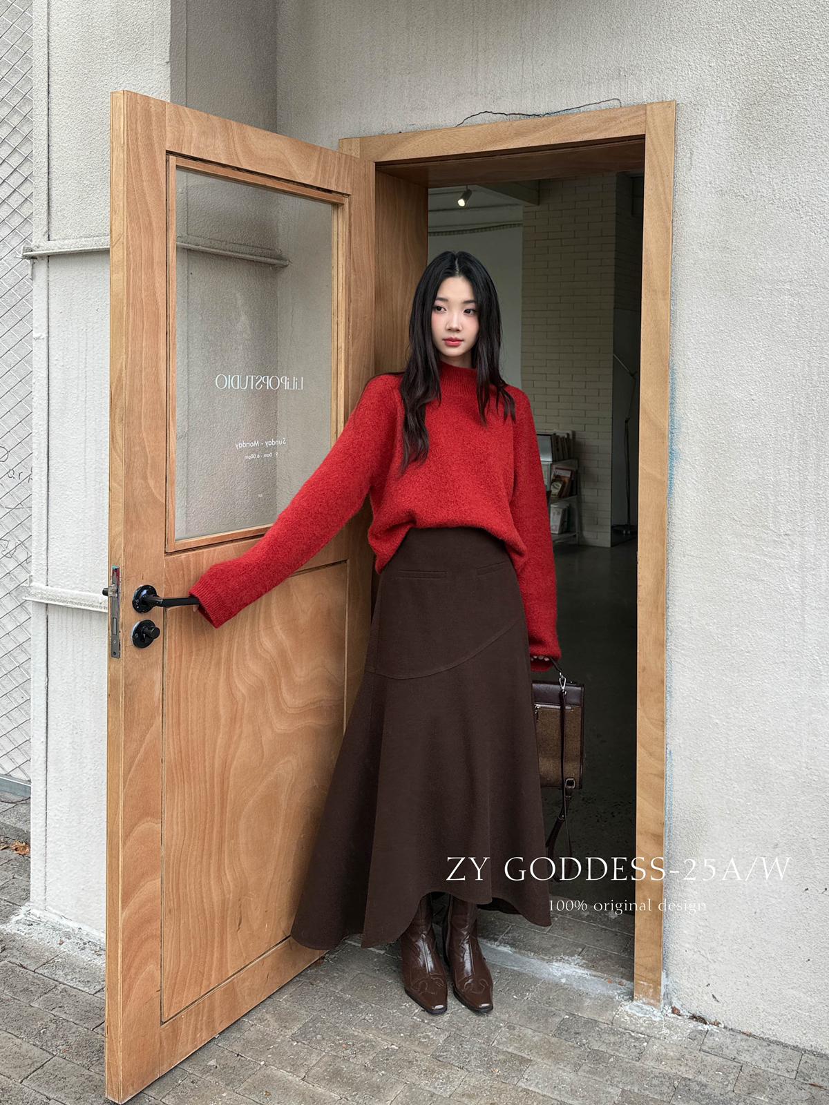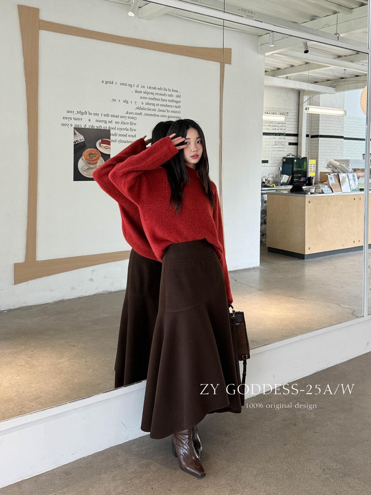 【C7818】韓版復古簡約優雅羊毛保暖高腰拼接不規則裙襬長裙半身裙(含10%羊毛)(牛奶絲抓毛加絨內裏)