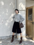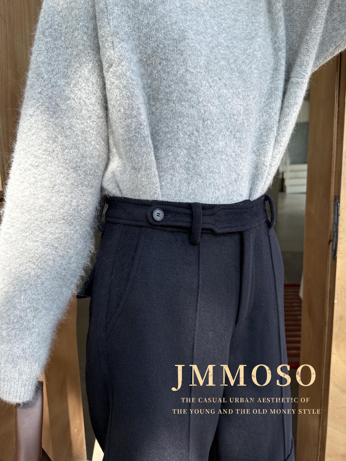 【C7819】高階質感丨小衆港風寬鬆高腰顯瘦顯高60%羊毛混紡毛呢休閒褲(含60%羊毛)