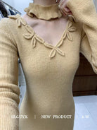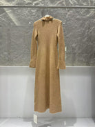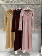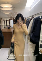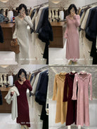 【C7820】冬上新法式小衆設計感女人味花瓣領收腰顯瘦長款連衣裙