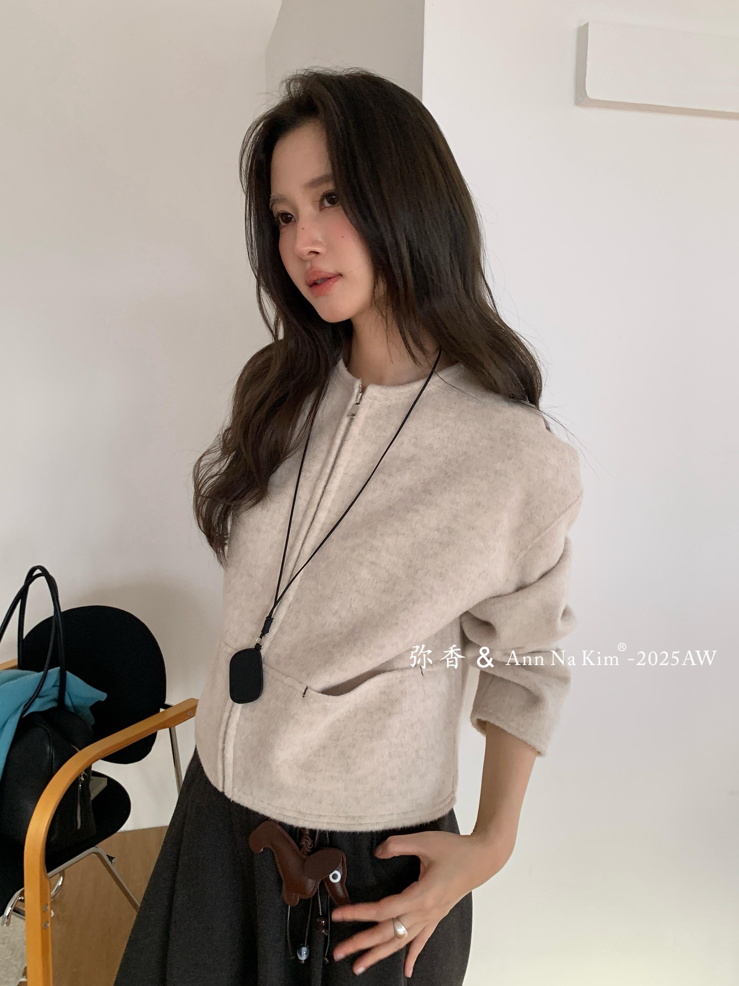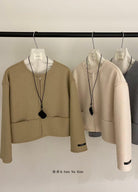 【C7824】韓系簡約百搭拉鍊日常氛圍感雙面尼短外套(配掛飾)