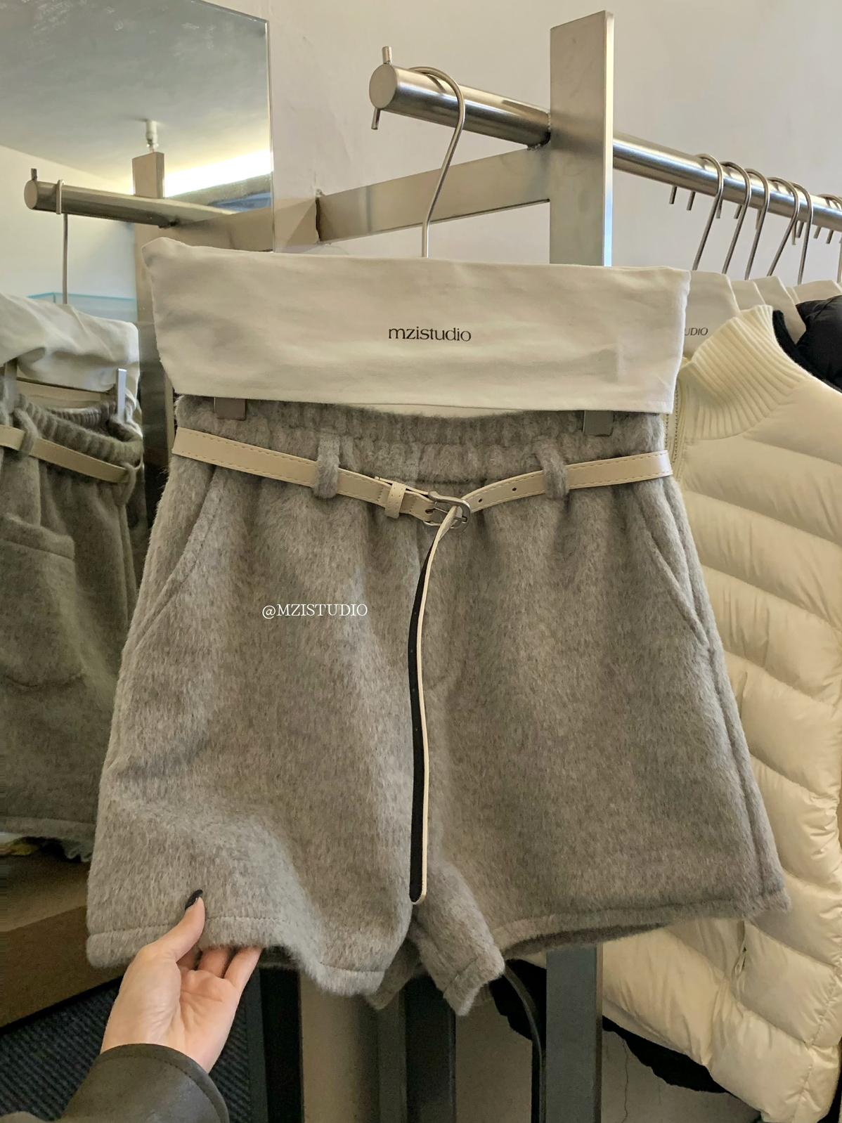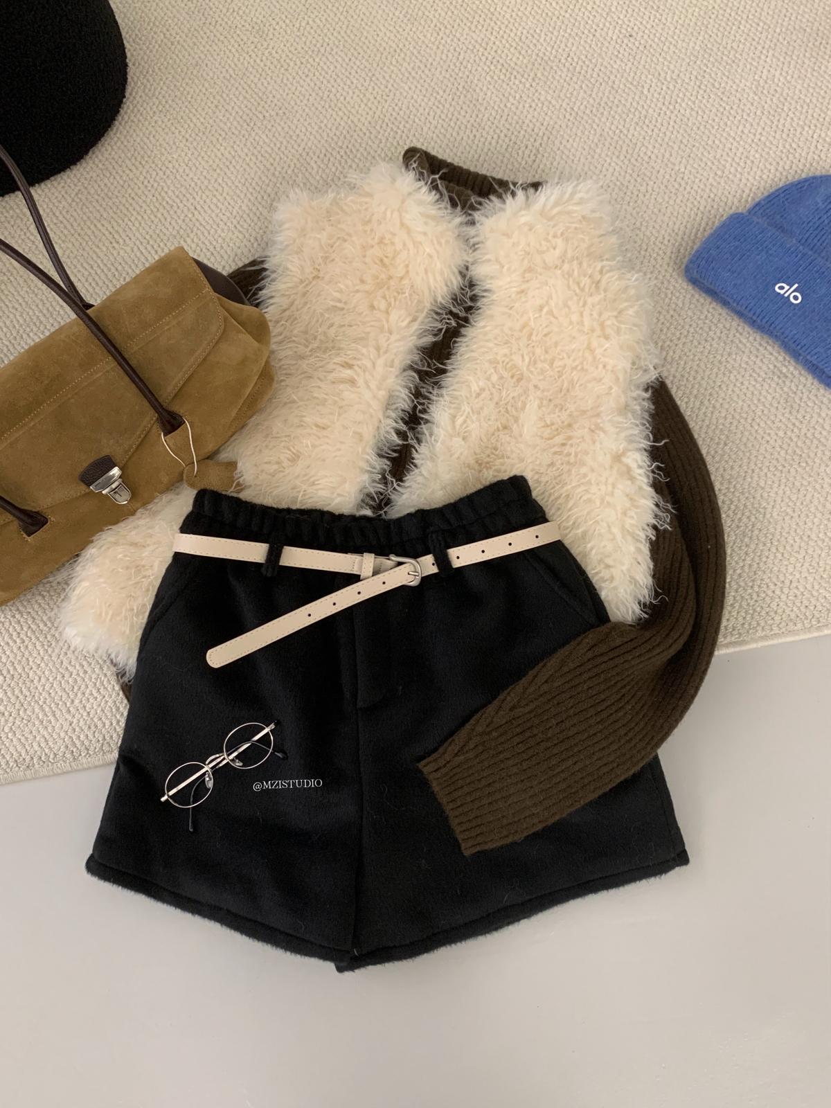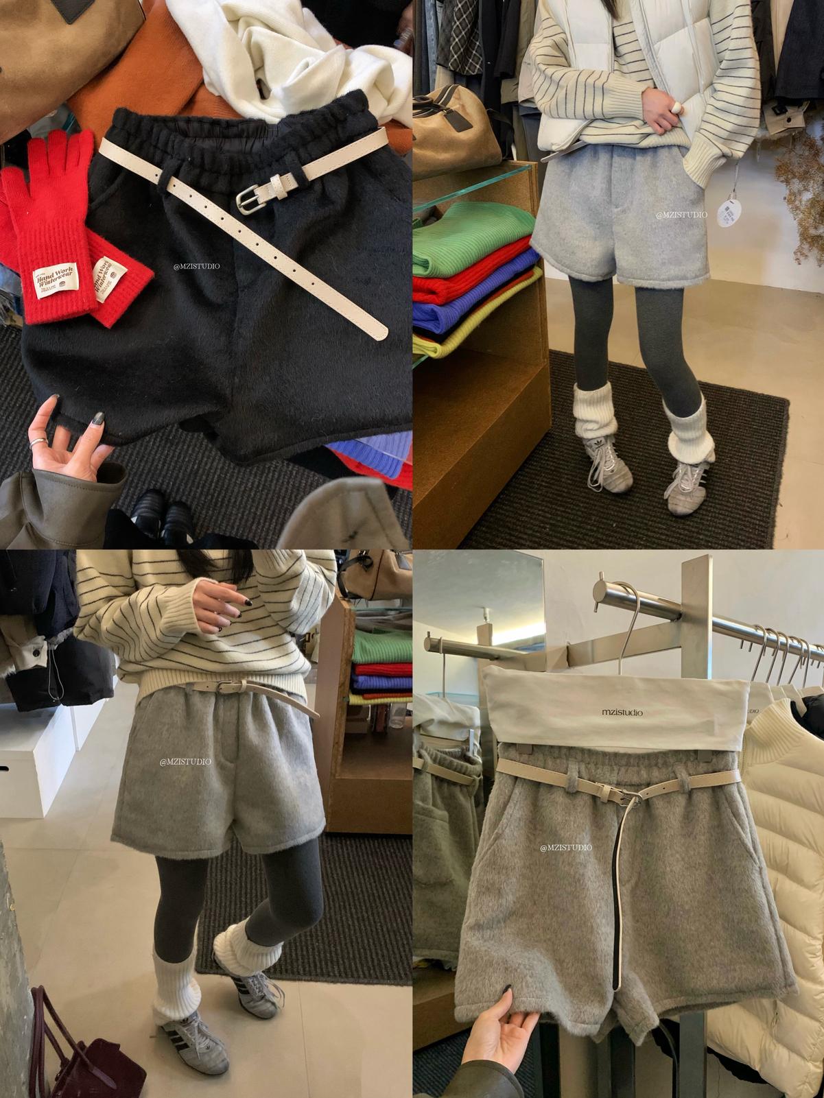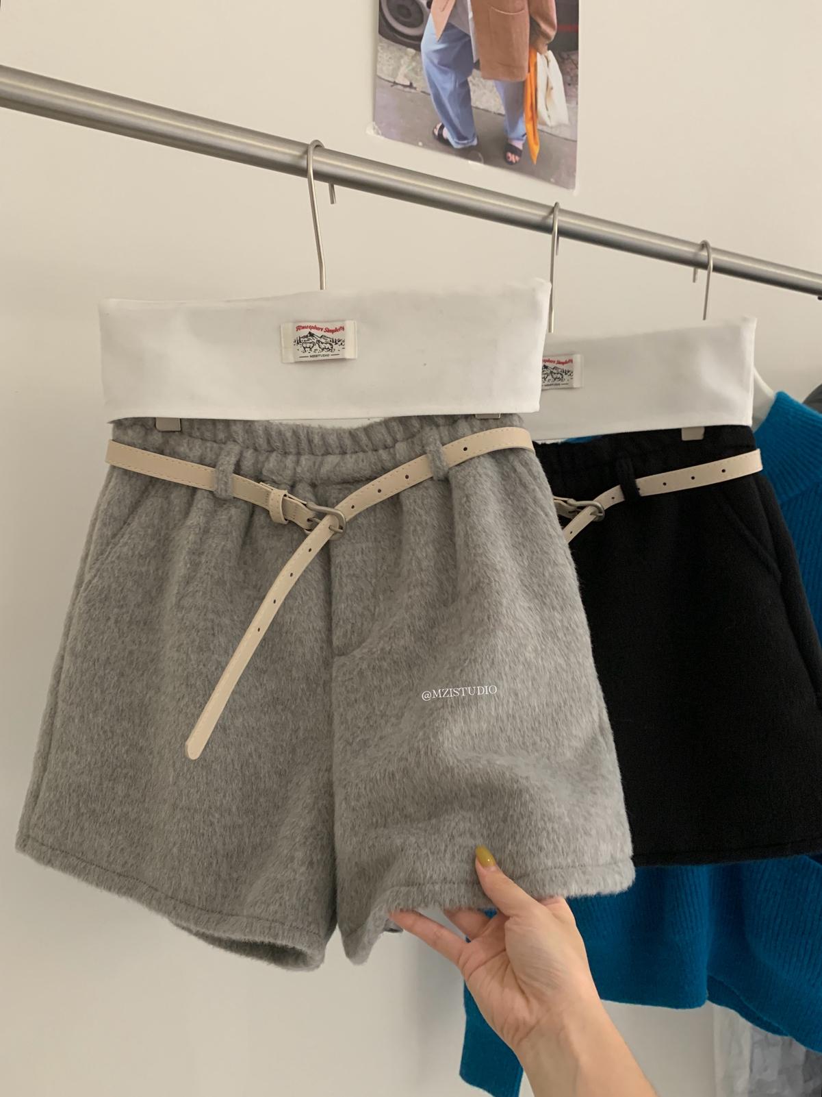 3. 【C7830】韓女衣櫥必備冬季羊毛A字顯腿長百搭休閒簡約口袋休閒短褲(配皮帶)(含20%羊毛)