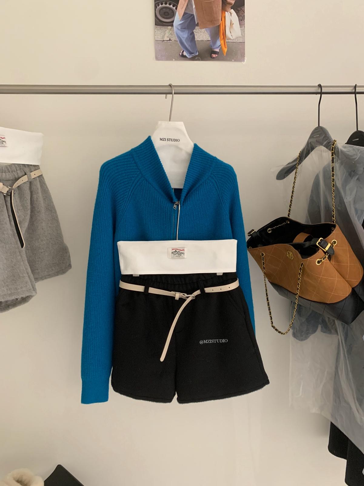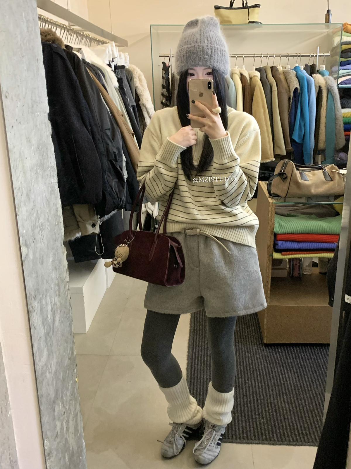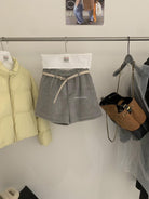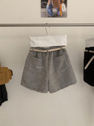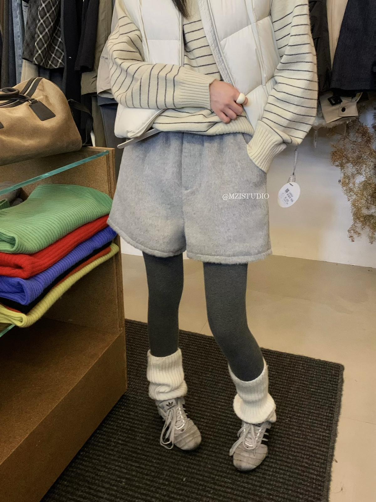 3. 【C7830】韓女衣櫥必備冬季羊毛A字顯腿長百搭休閒簡約口袋休閒短褲(配皮帶)(含20%羊毛)