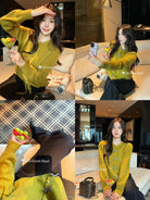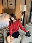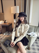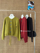 【C7832】垂直入坑!甜法氧氣少女~秋冬法式溫柔甜美排扣休閒百搭針織開衫