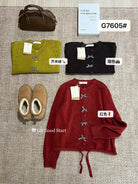 3. 【C7832】垂直入坑!甜法氧氣少女~秋冬法式溫柔甜美排扣休閒百搭針織開衫