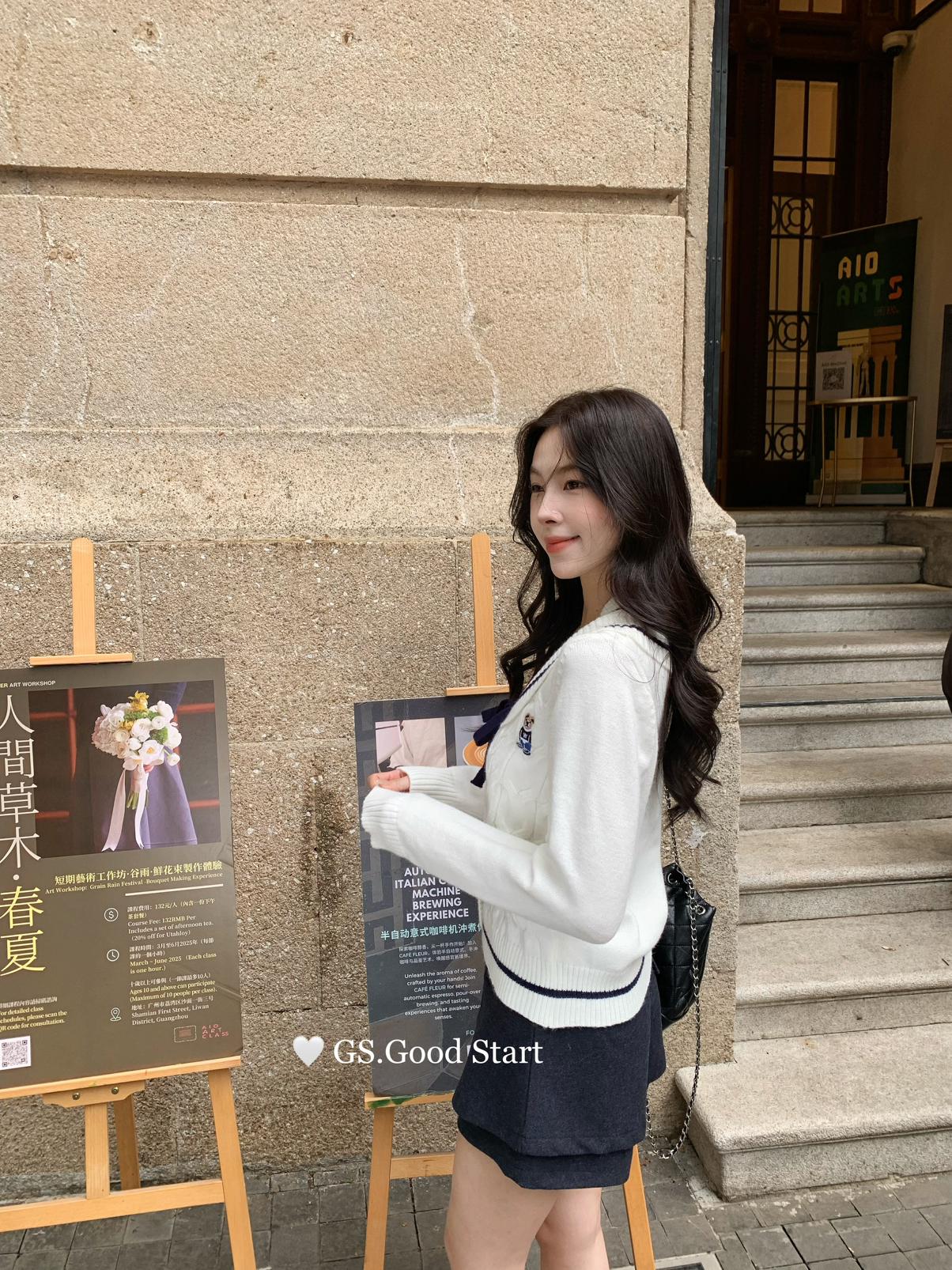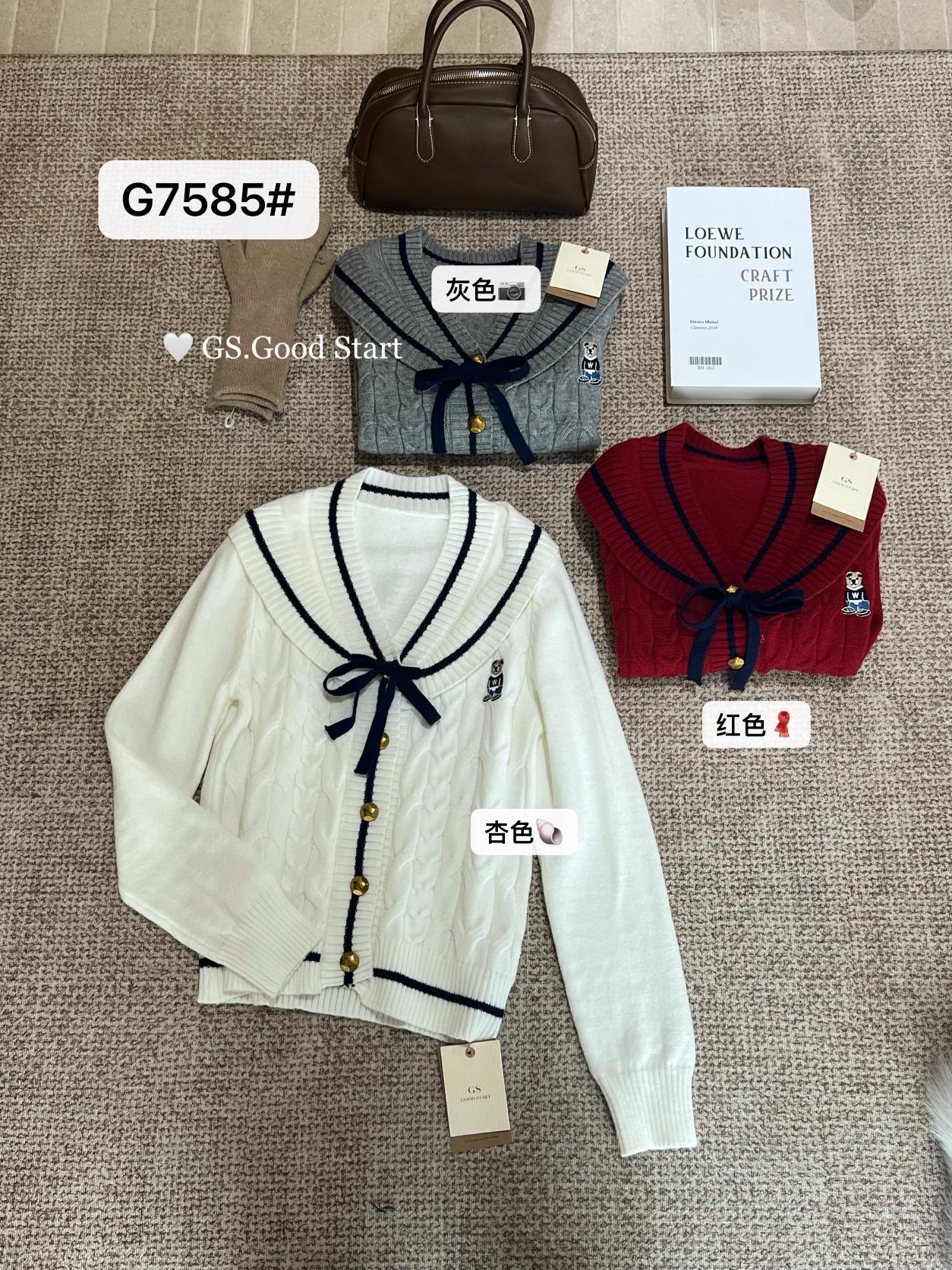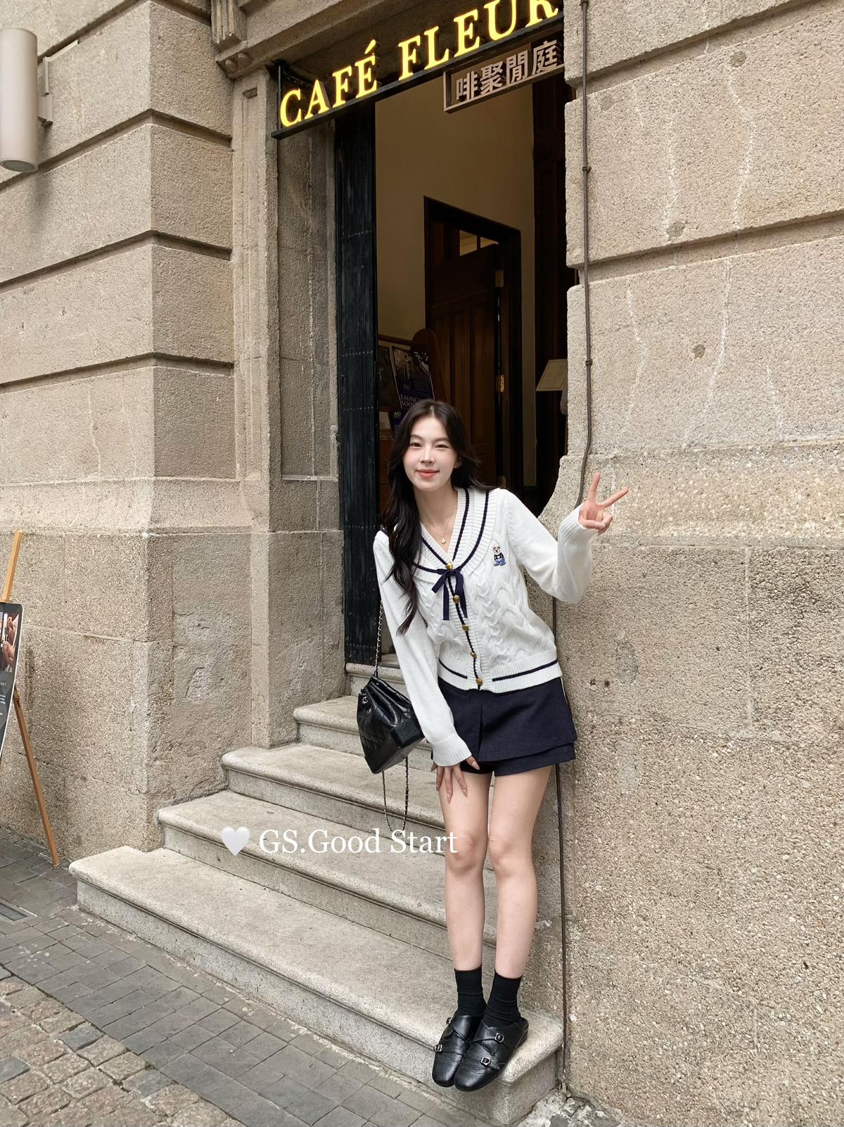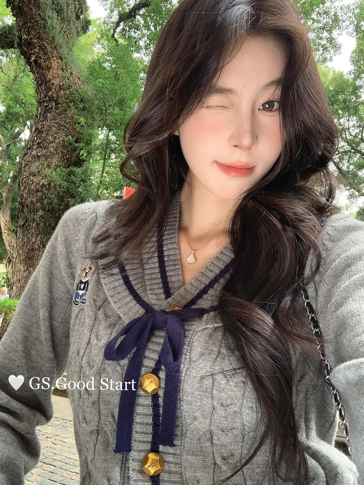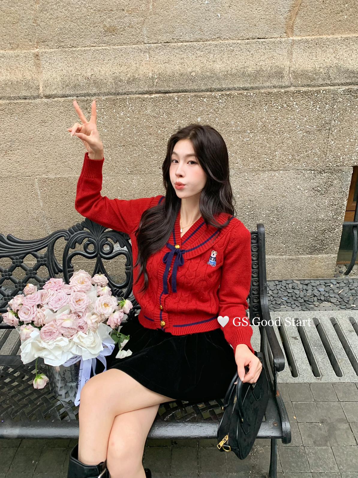 【C7834】減齡首選!上身就是*英倫院校學妹~秋冬復古甜美少女感小熊刺繡針織開衫
