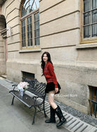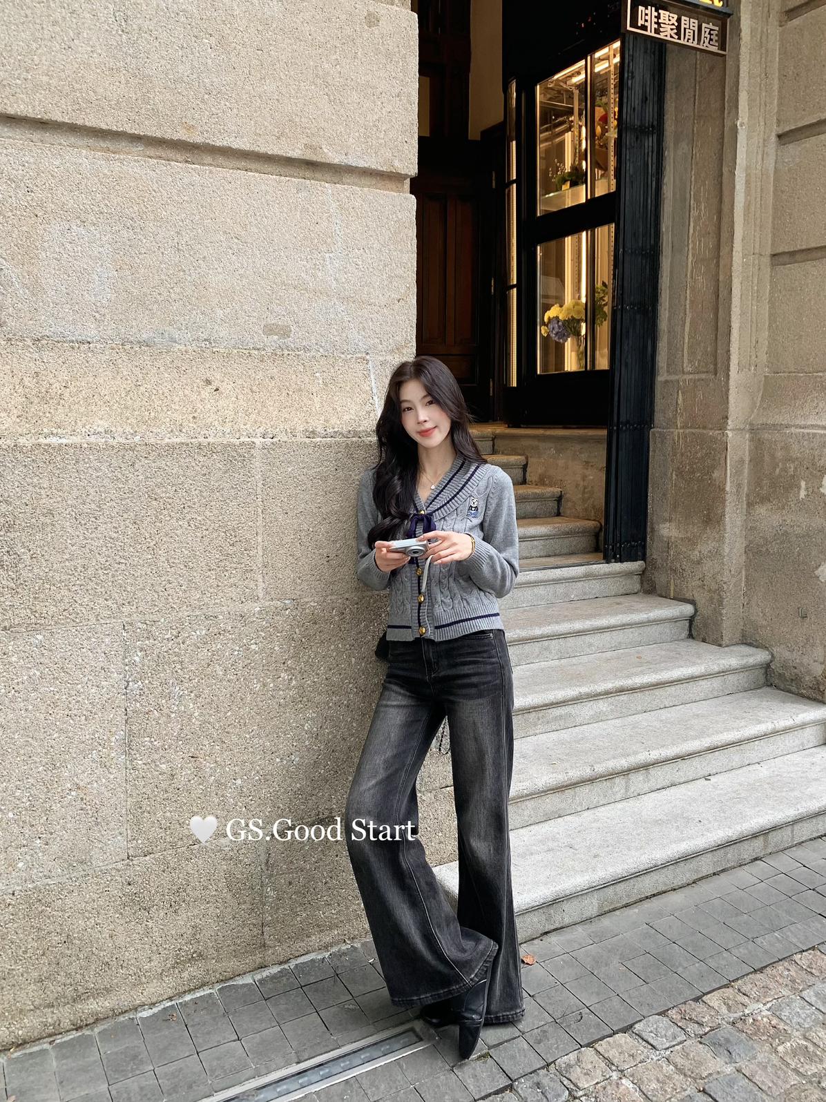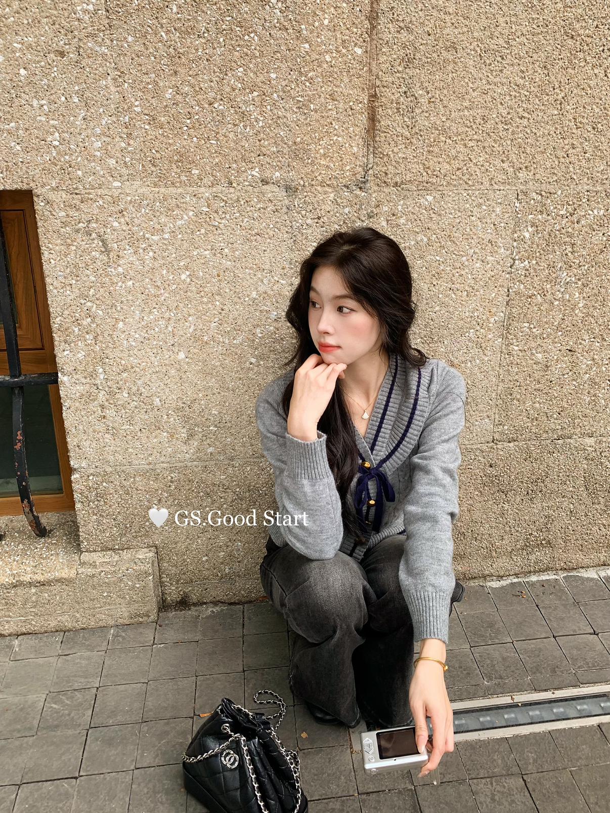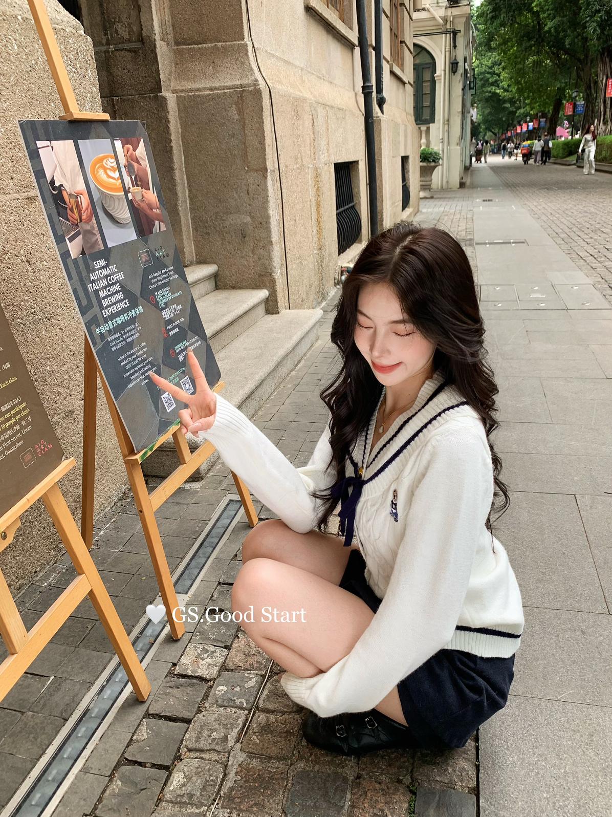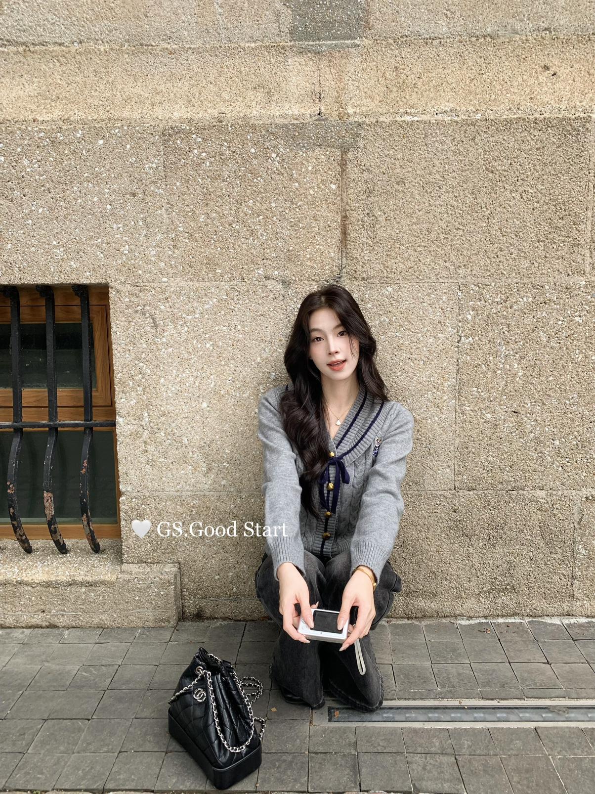 【C7834】減齡首選!上身就是*英倫院校學妹~秋冬復古甜美少女感小熊刺繡針織開衫