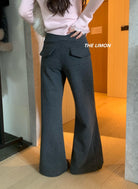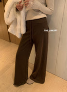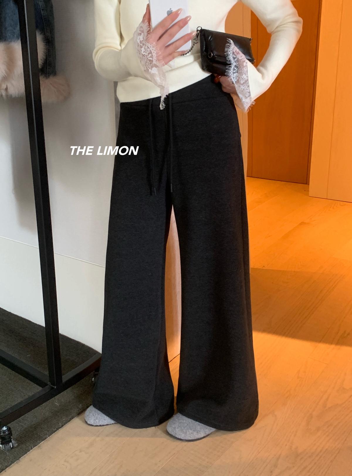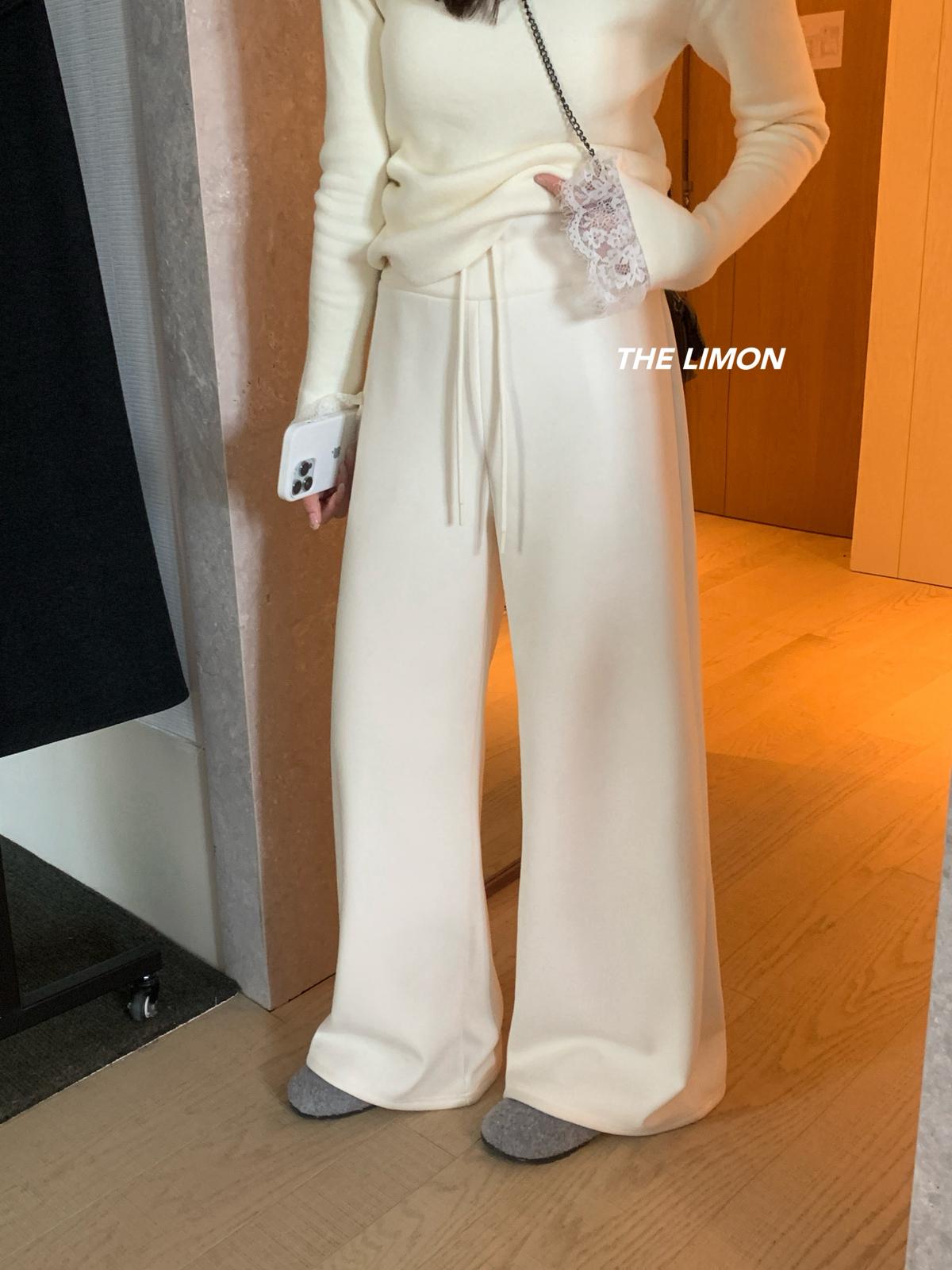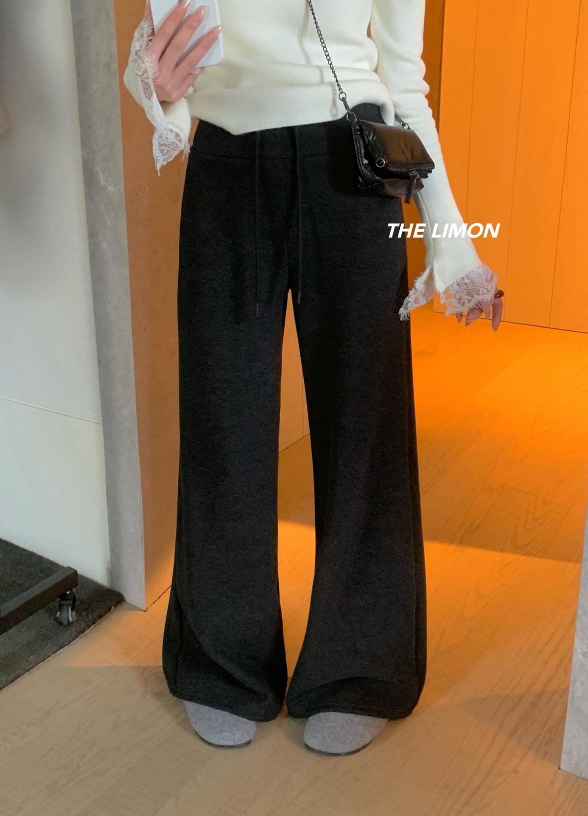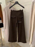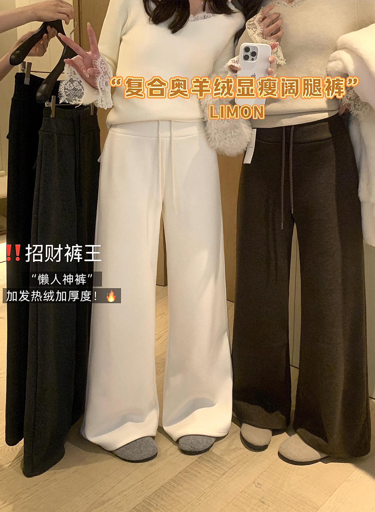 【C7844】複合絨高腰顯瘦微喇休閒褲