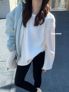 【C7847】雪芙絨毛巾絨寬鬆百搭大白長袖T恤