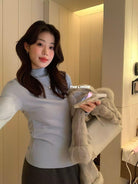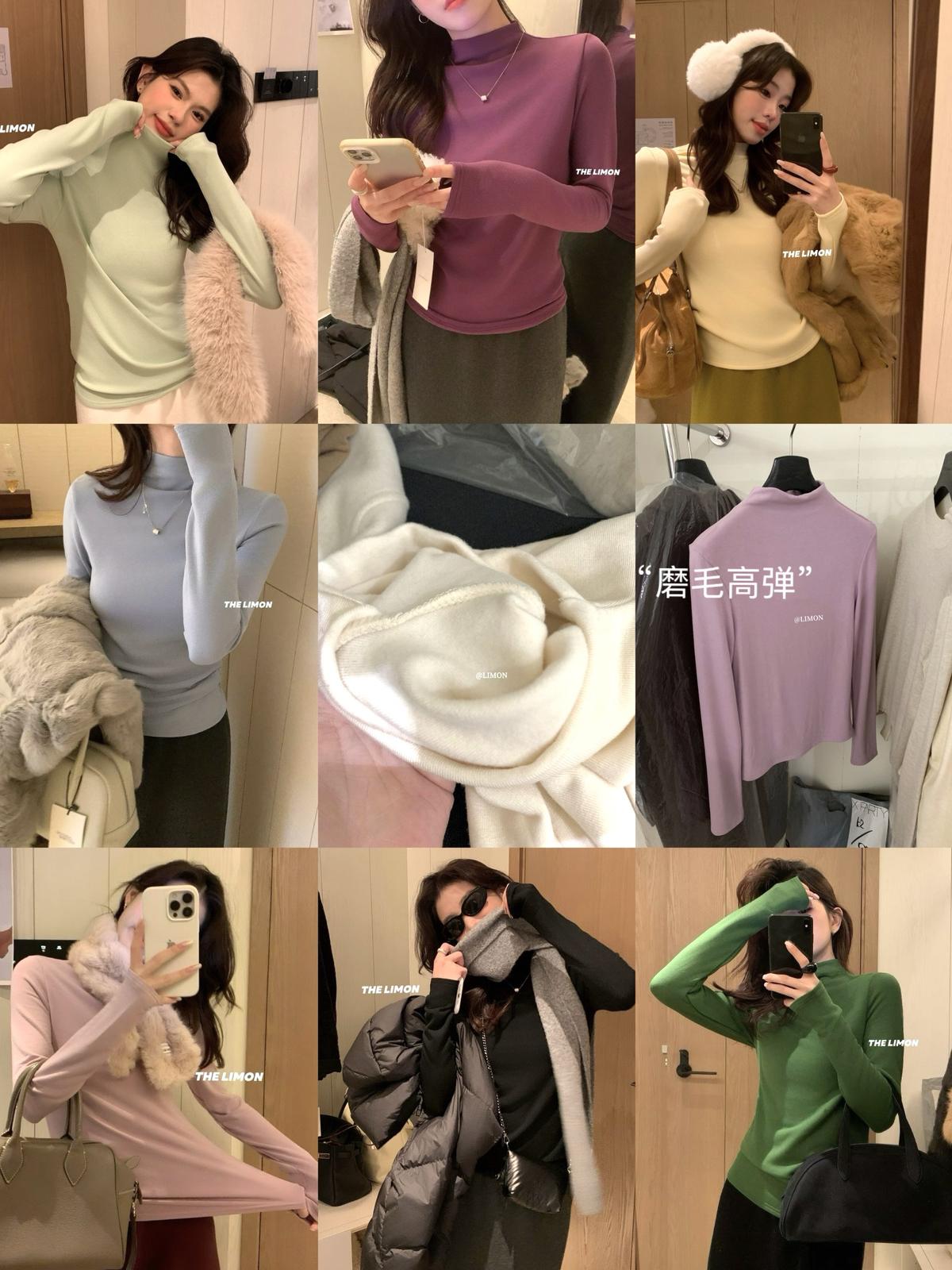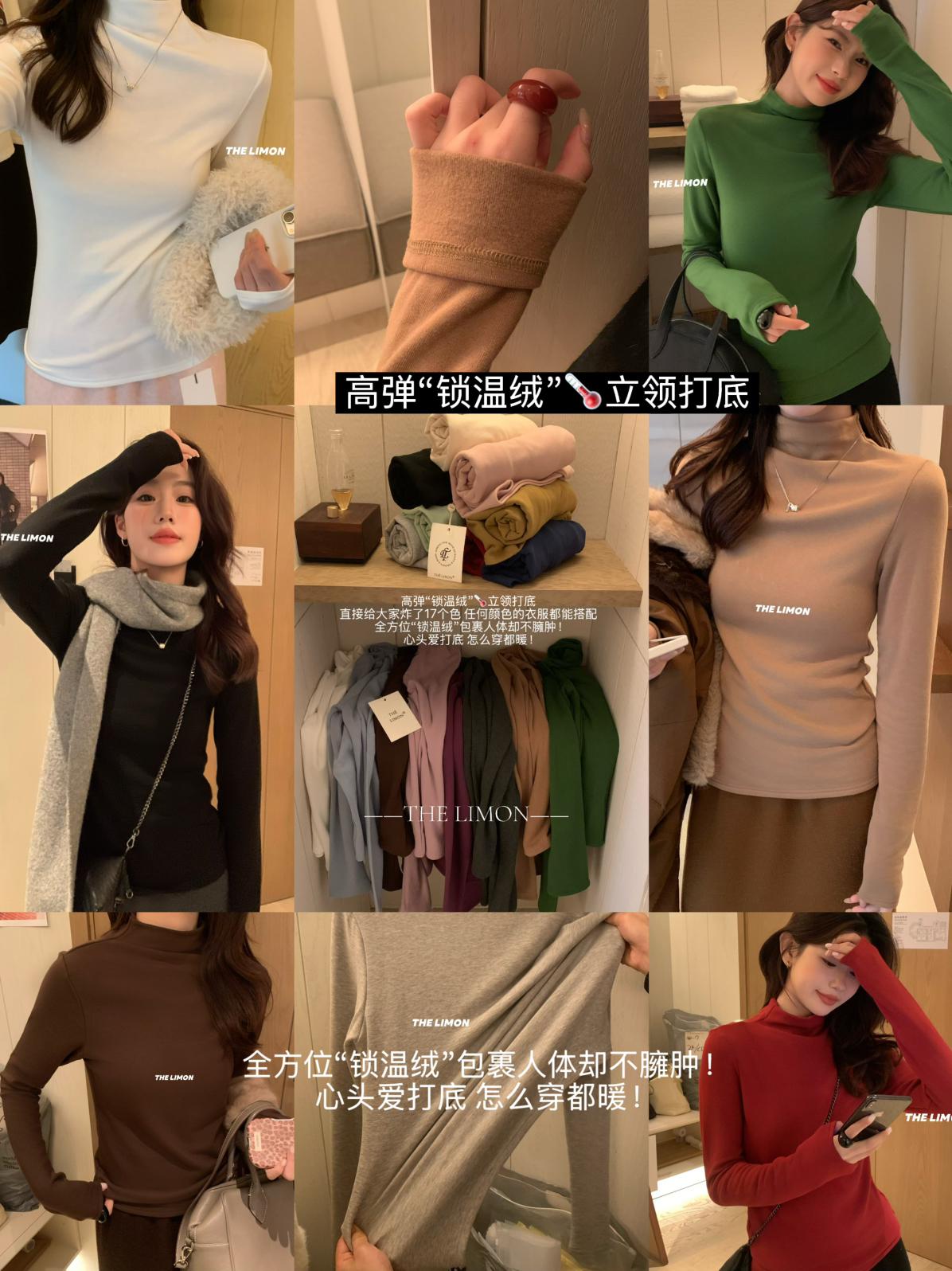 3. 【C7850】紙片人立領高彈鎖溫絨修身顯瘦打底衫