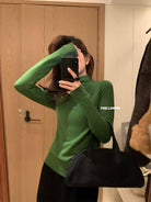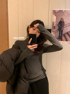 【C7850】紙片人立領高彈鎖溫絨修身顯瘦打底衫