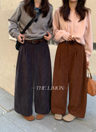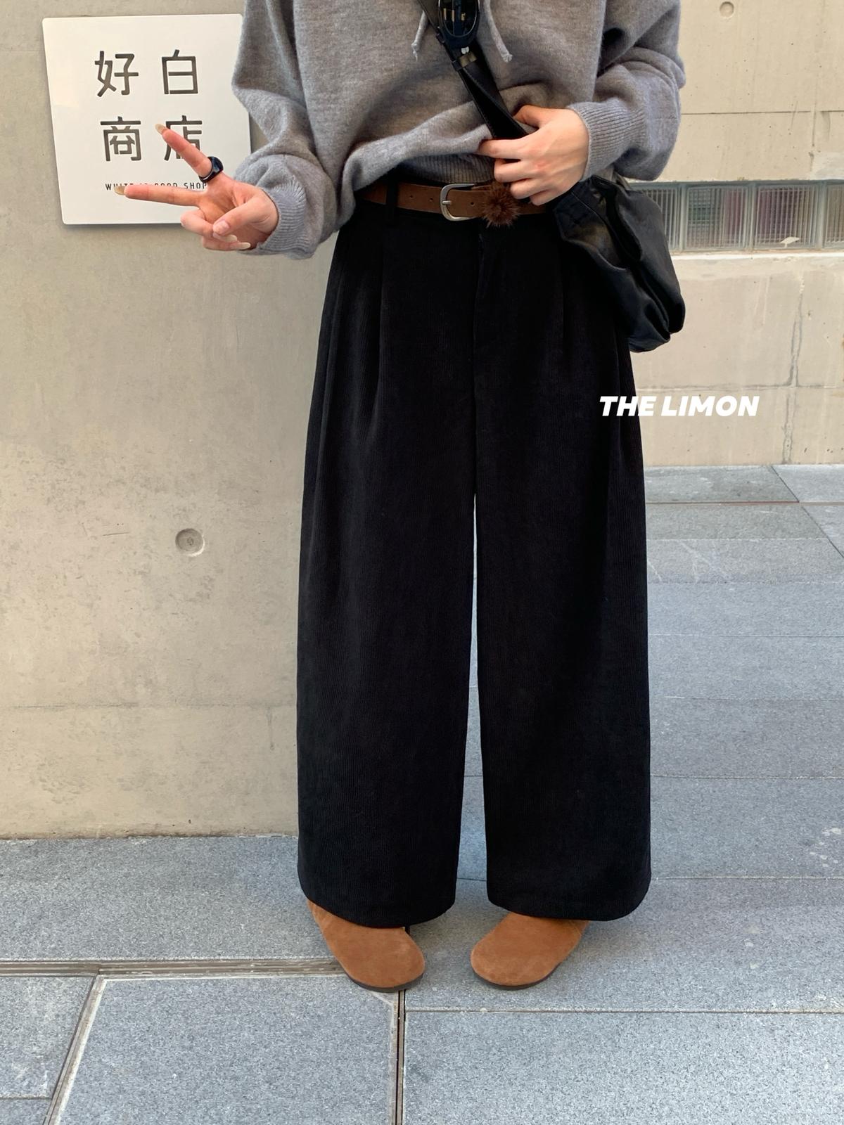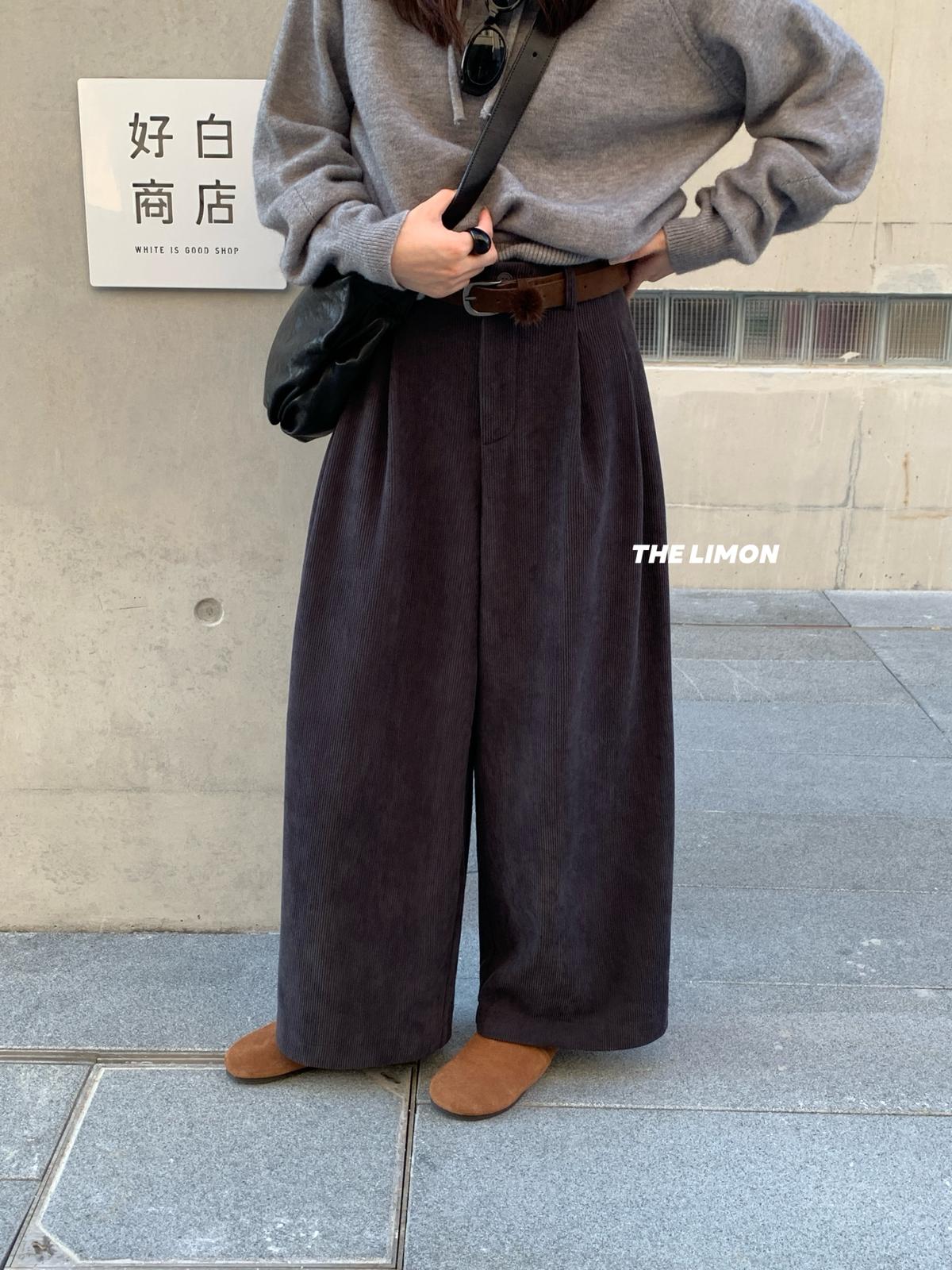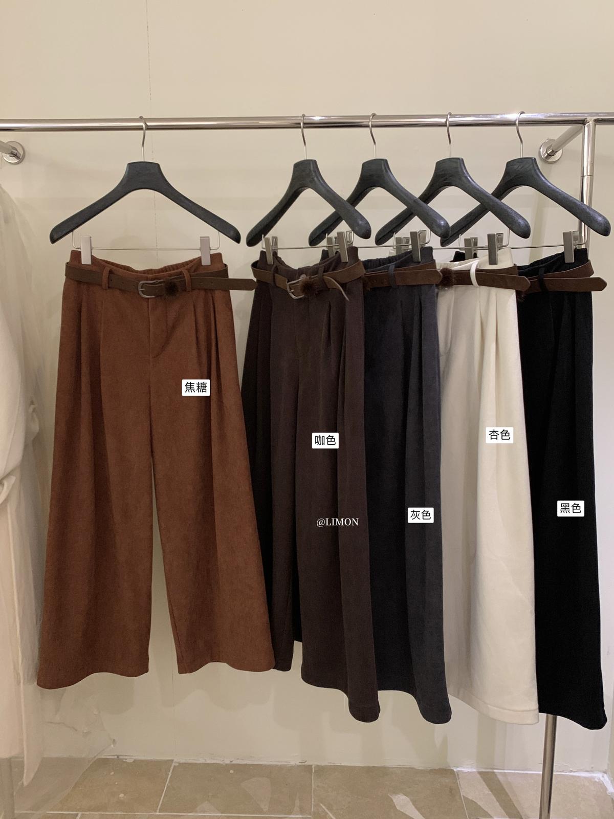 3. 【C7854】加絨燈芯絨闊腿顯瘦休閒褲(配腰帶)