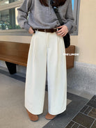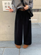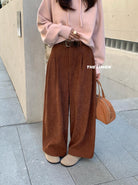 【C7854】加絨燈芯絨闊腿顯瘦休閒褲(配腰帶)