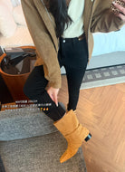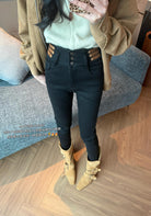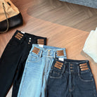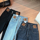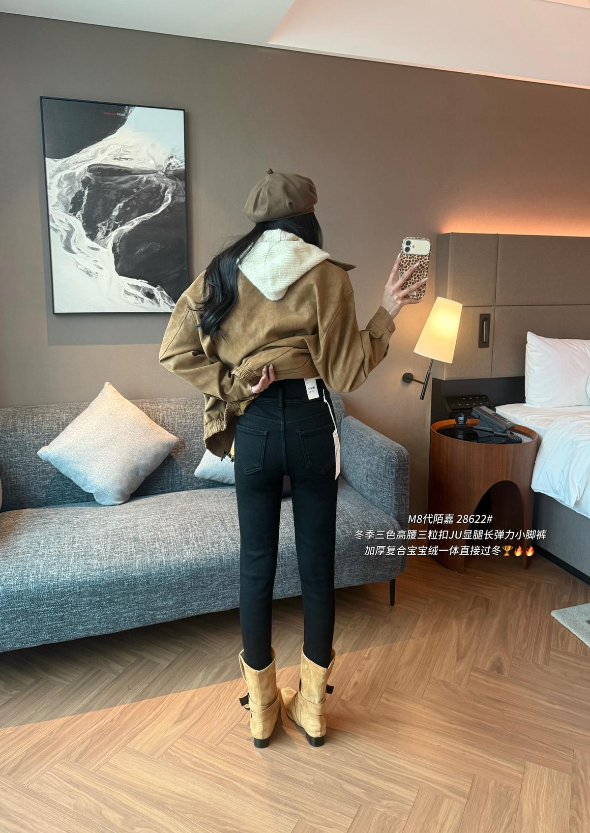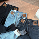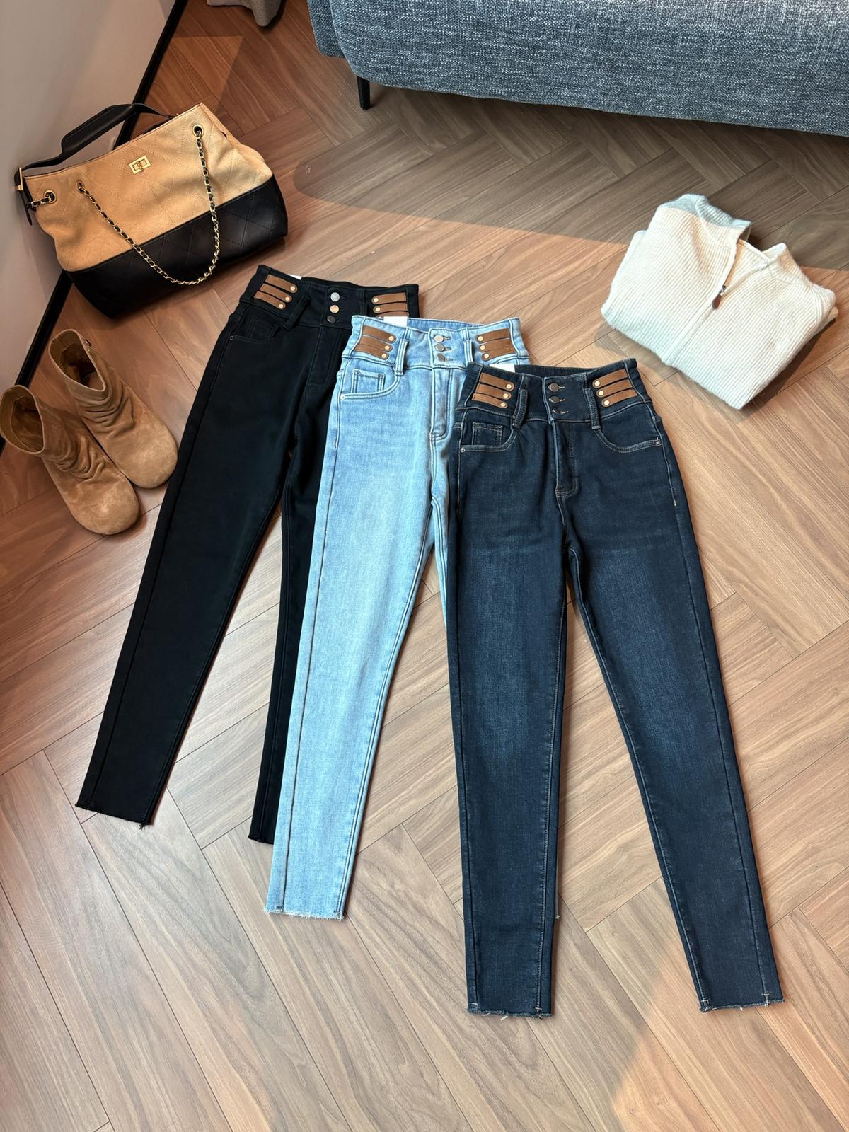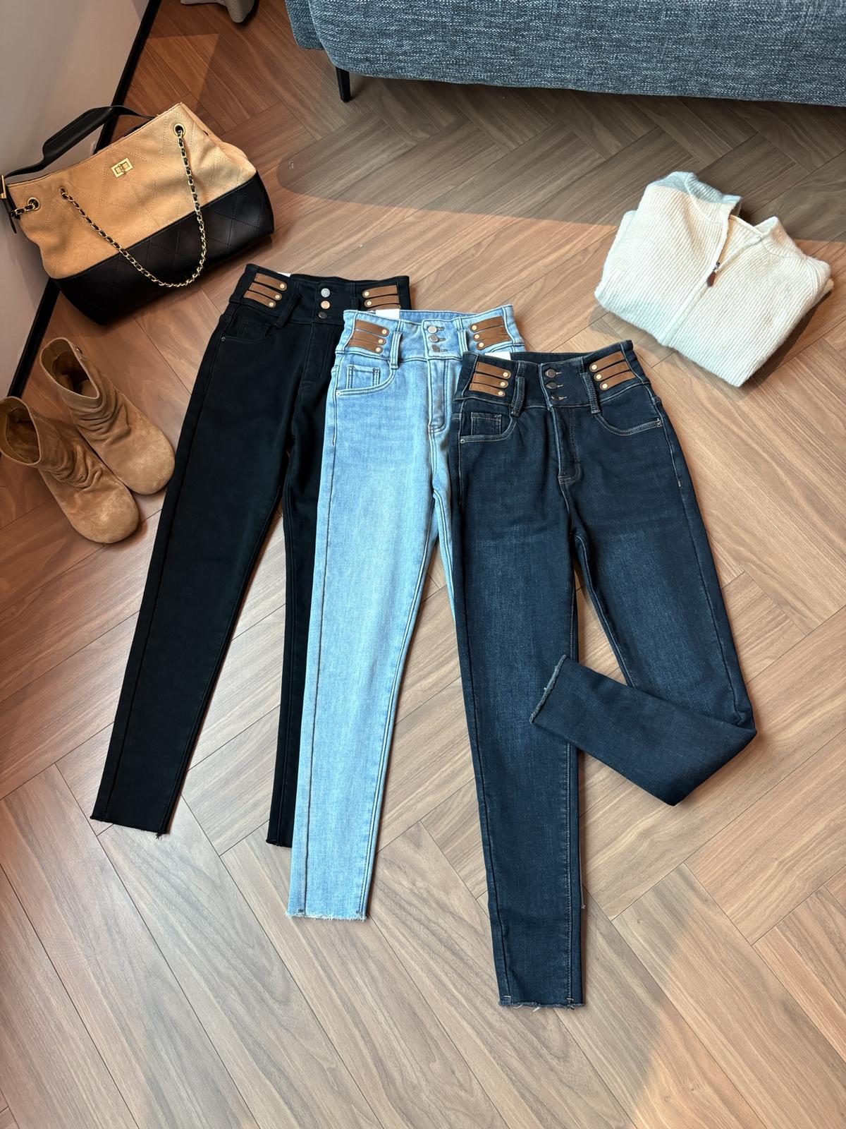 【C7855】冬季加厚複合寶寶絨高腰三粒扣修身顯腿長女神必備彈力小腳褲牛仔褲