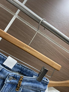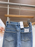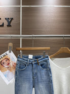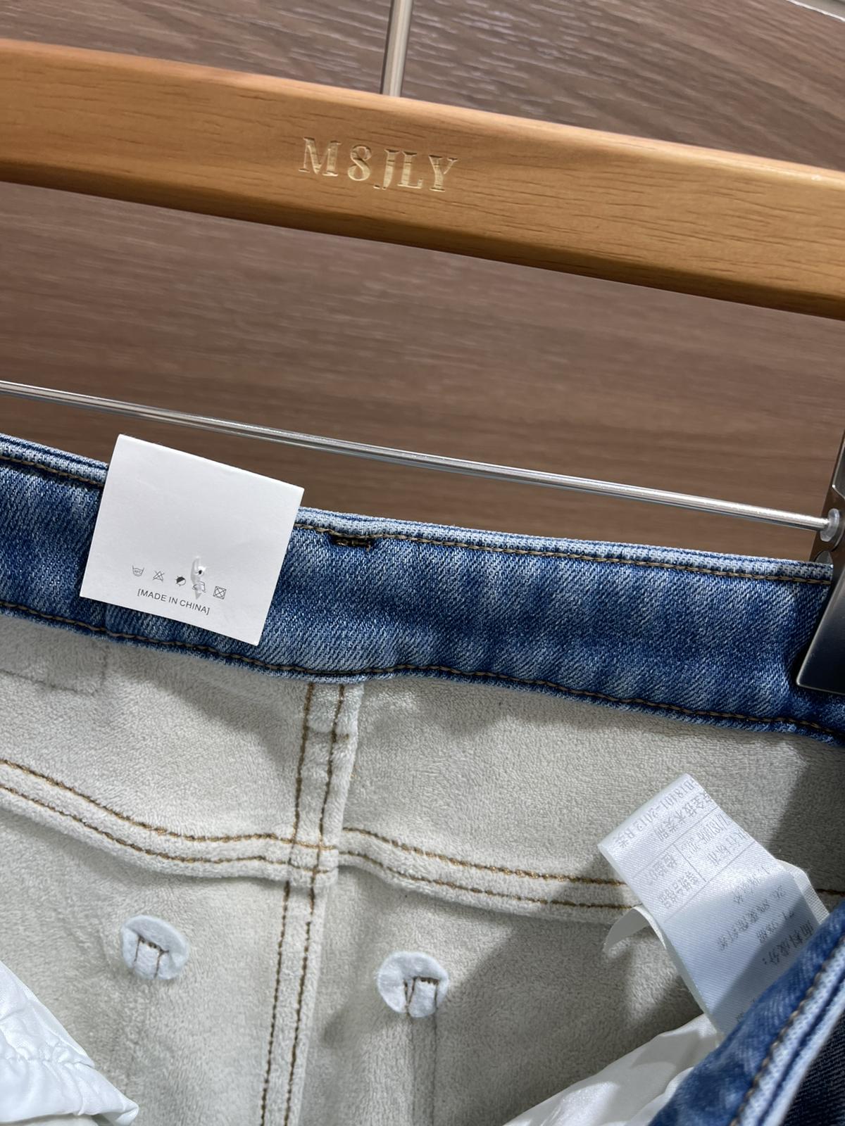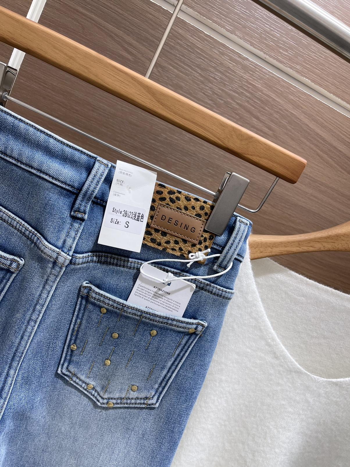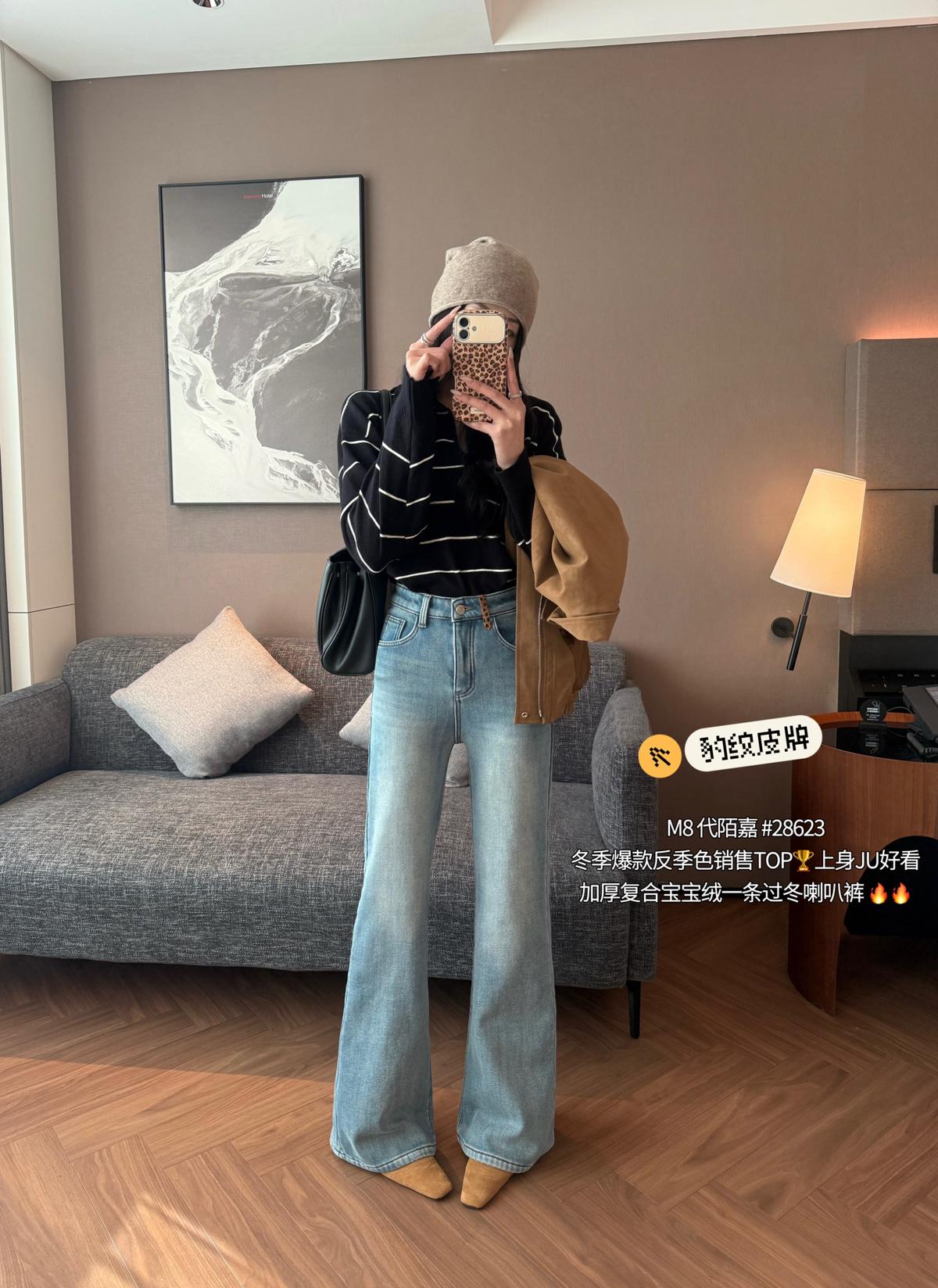 3. 【C7856】冬季加厚複合寶寶絨反季淺藍色前後豹紋皮牌呼應裝飾彈力喇叭褲牛仔褲