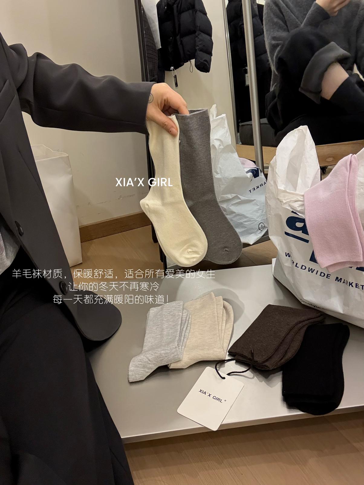 3. 【C7857】純色羊毛保暖發熱襪新款舒適韓系簡約洋氣中筒堆堆襪襪子