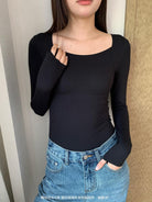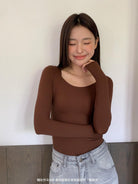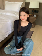 3. 【C7860】黑科技隱形發熱固定杯美膚衣女秋冬舒適純色圓領長袖內搭上衣保暖衣