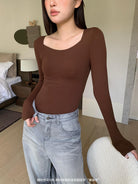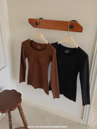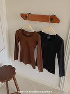 【C7860】黑科技隱形發熱固定杯美膚衣女秋冬舒適純色圓領長袖內搭上衣保暖衣