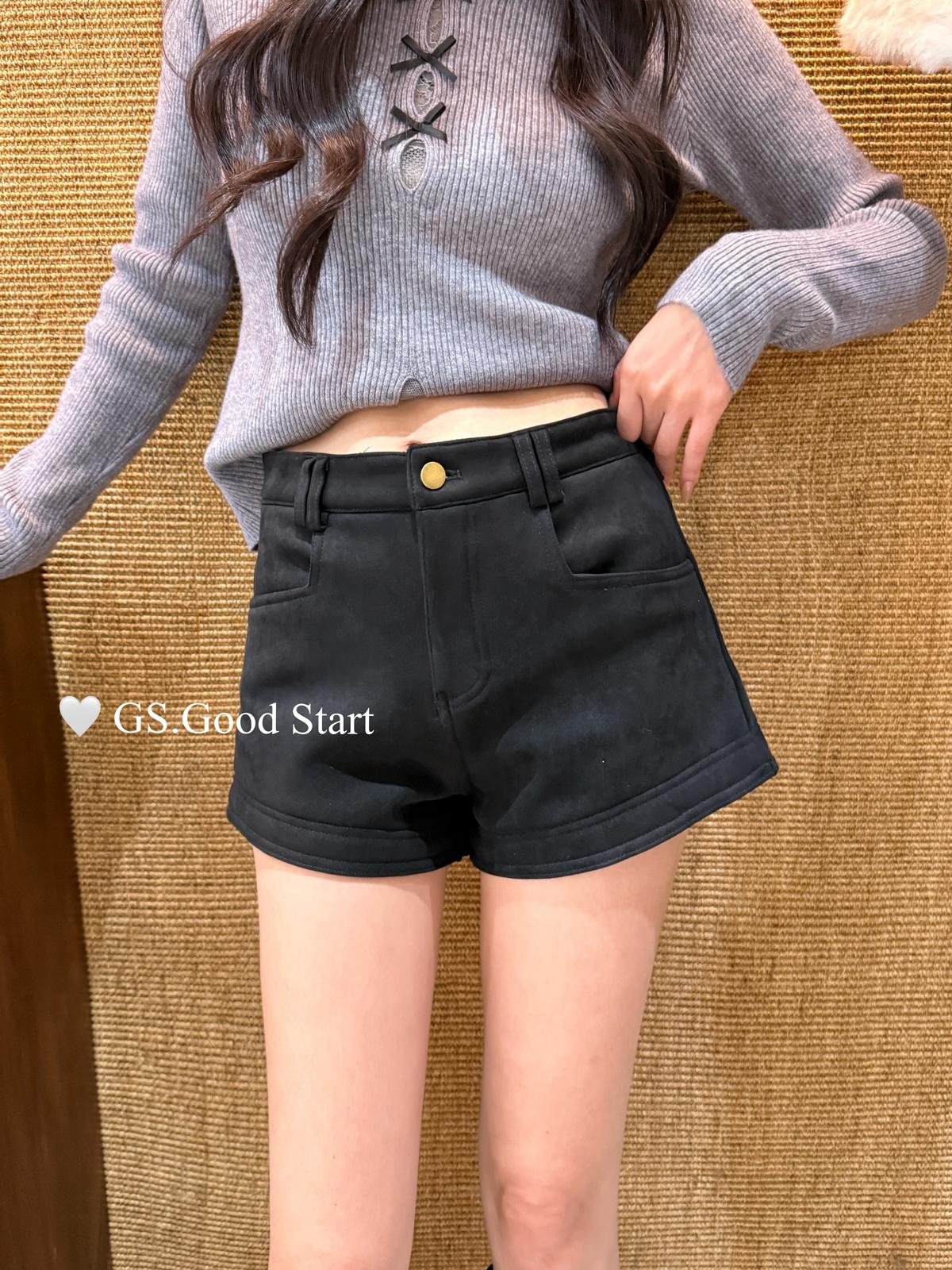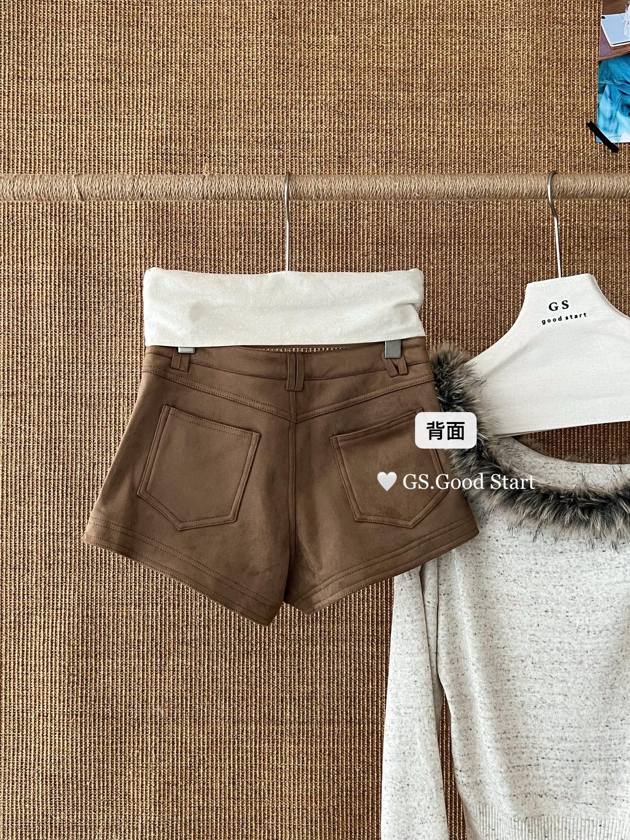 【C7861】賣了10w+的爆褲!升級加絨版*秒下訂單!冬季氣質百搭麂皮休閒短褲