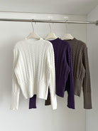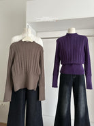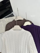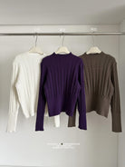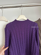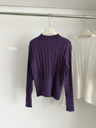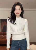 3. 【C7864】韓系簡約休閒百搭麻花小立領收腰厚款套頭保暖毛衣