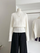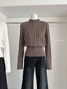【C7864】韓系簡約休閒百搭麻花小立領收腰厚款套頭保暖毛衣