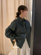 【C7866】爆款!加絨加厚復古洗水牛仔襯衫