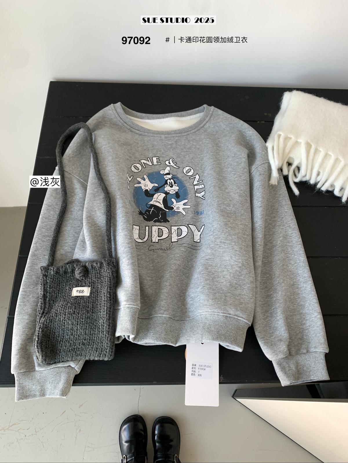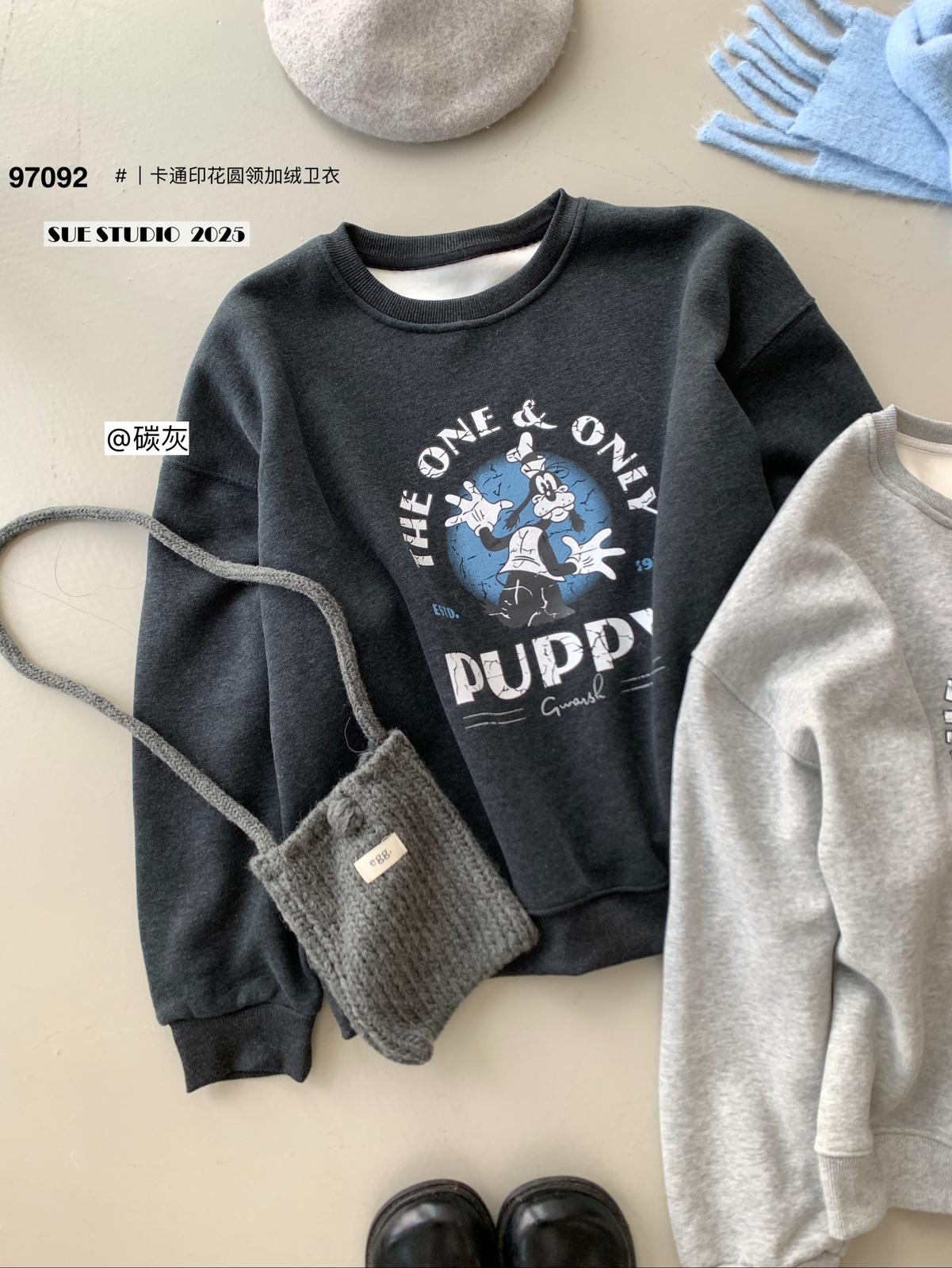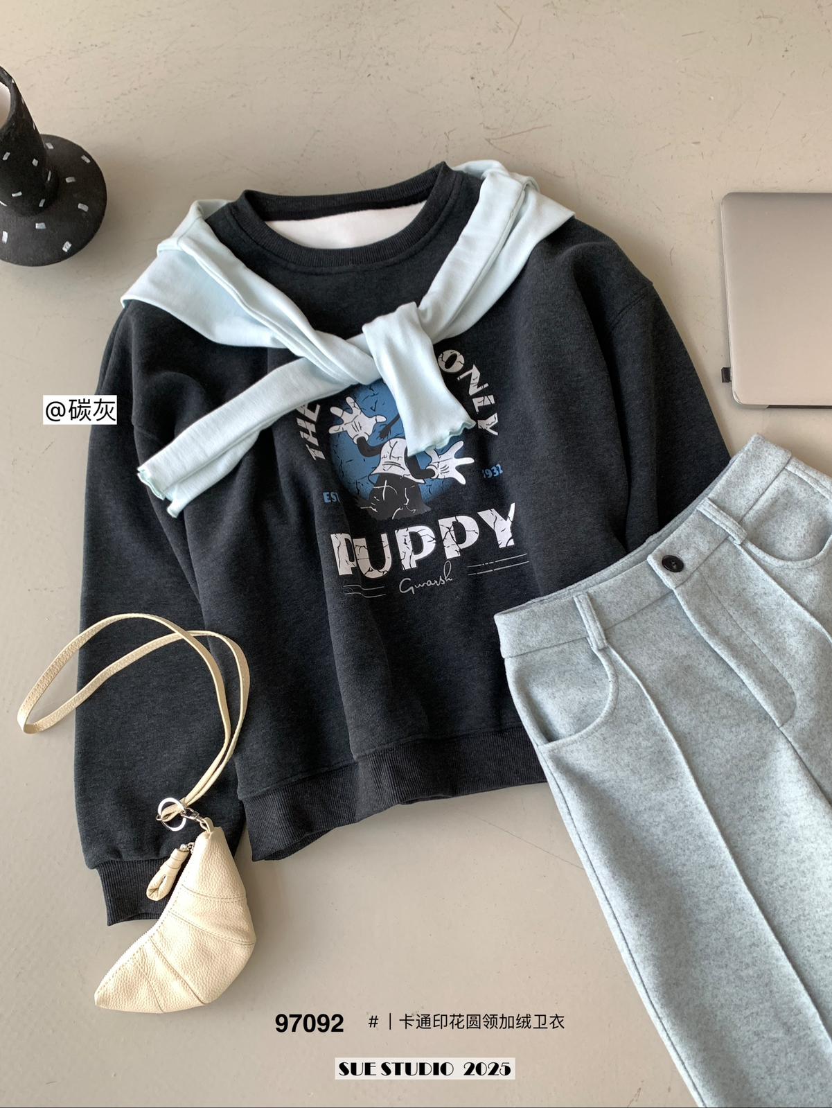 3. 【C7873】韓系印花寬鬆休閒風純色加絨衛衣