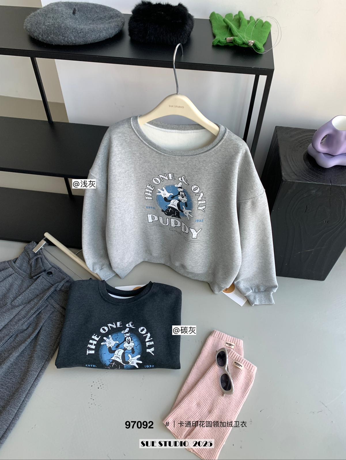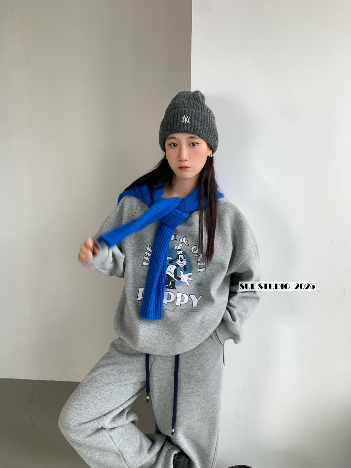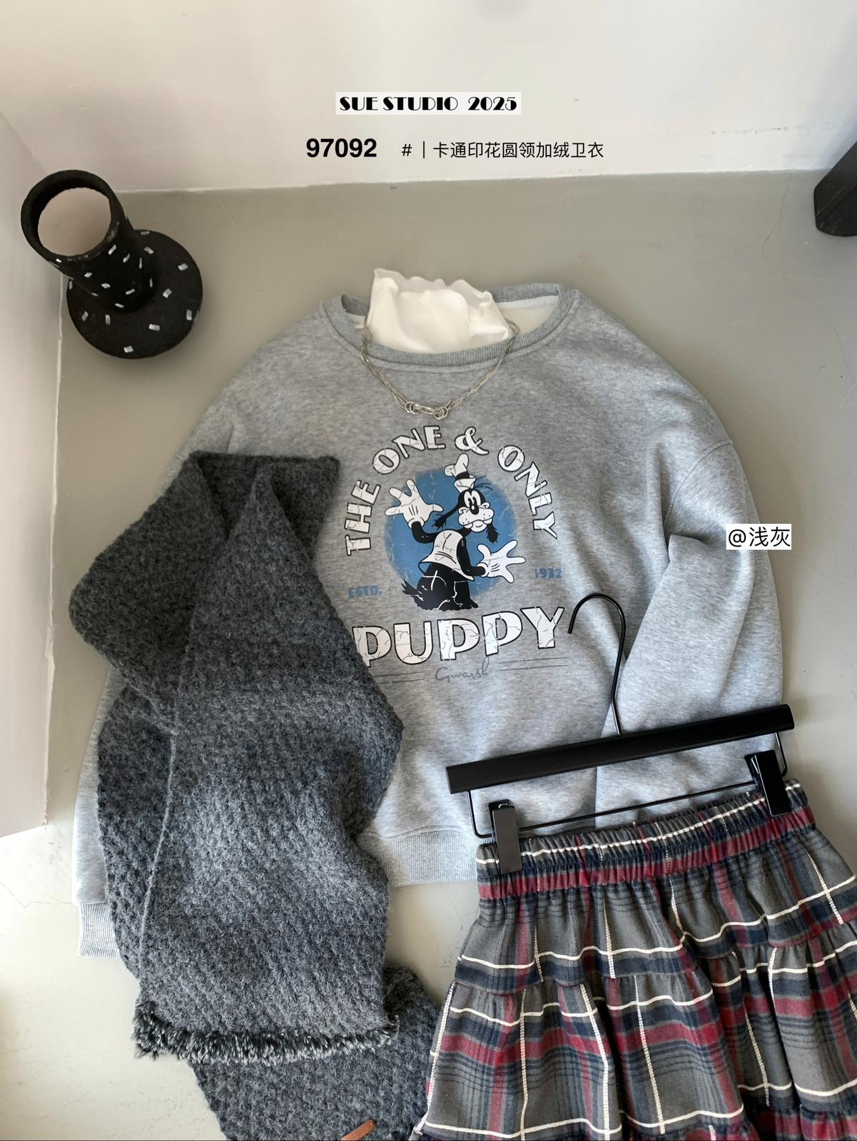 3. 【C7873】韓系印花寬鬆休閒風純色加絨衛衣