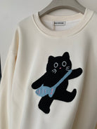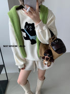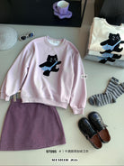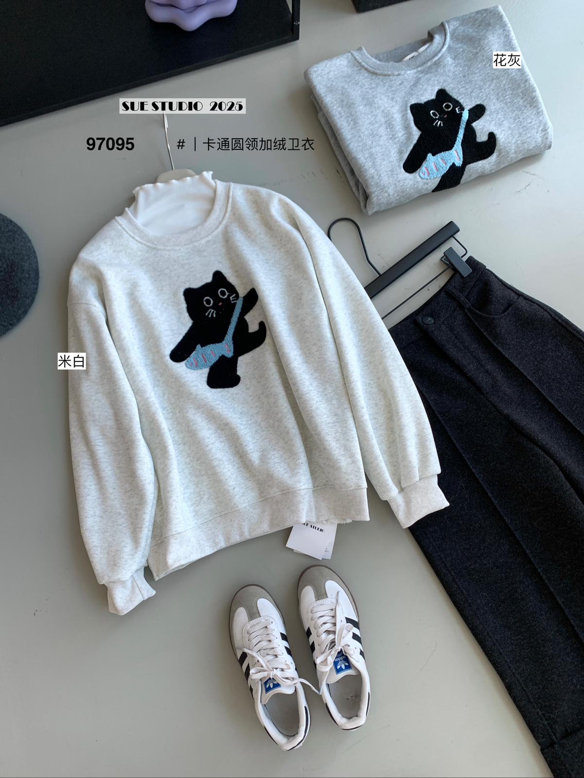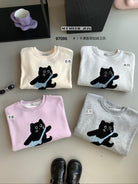 【C7875】韓系簡約貓貓圖案卡通圓領百搭加絨衛衣