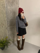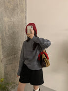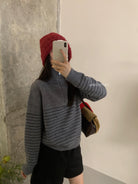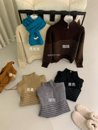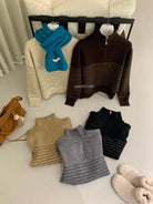 【C7879】淡人隨性風格韓標冬季羊毛高領半拉鍊親膚柔軟套頭簡約條紋保暖毛衣