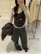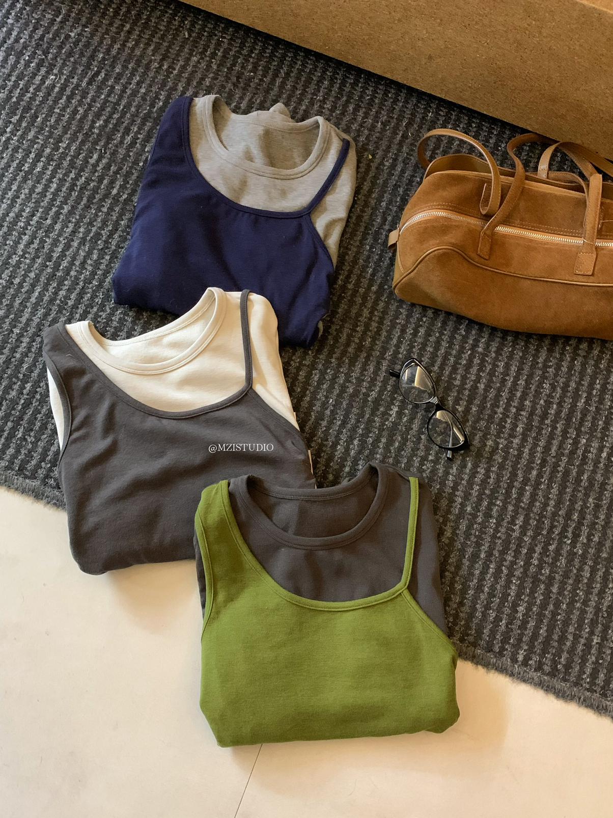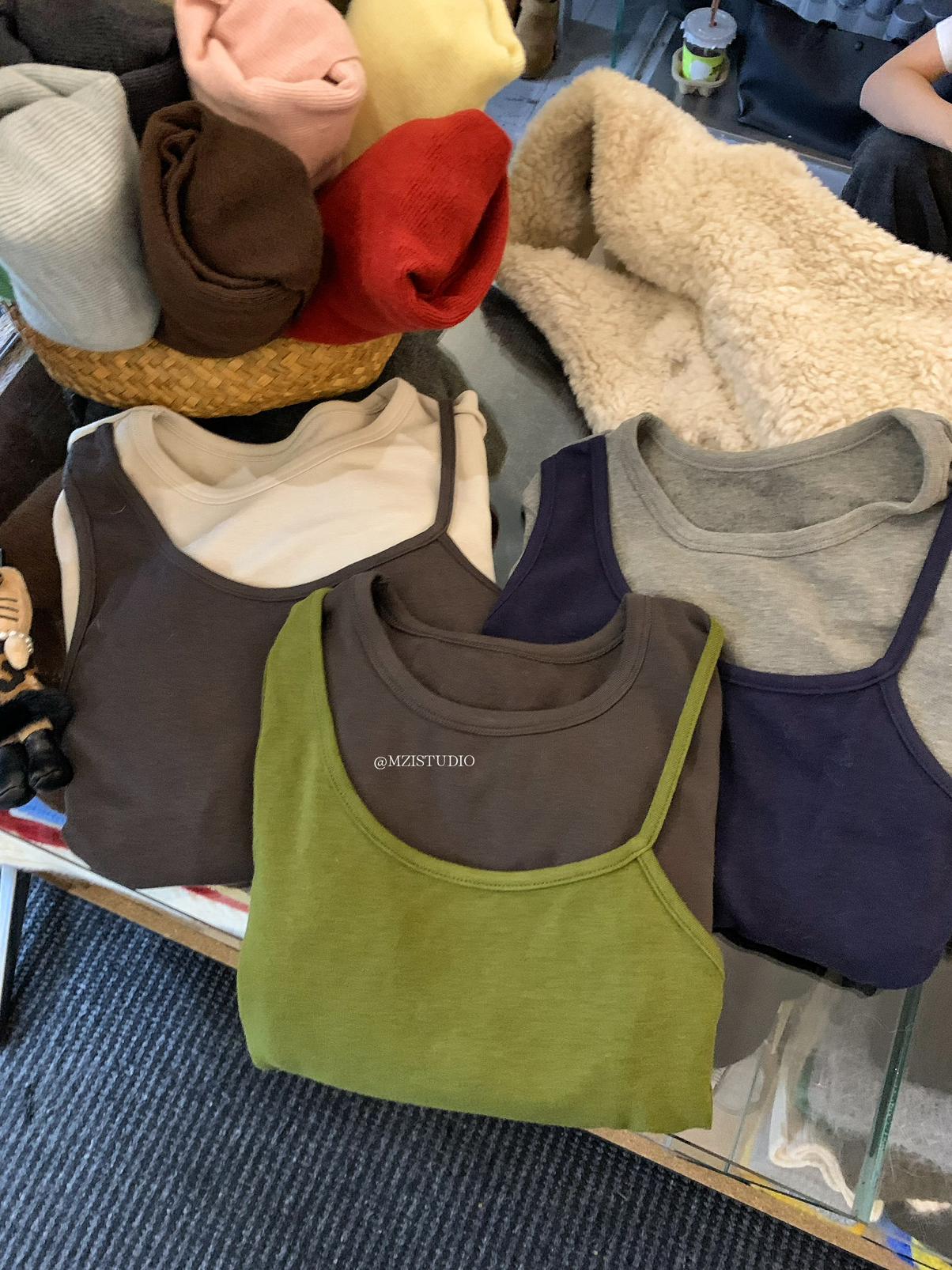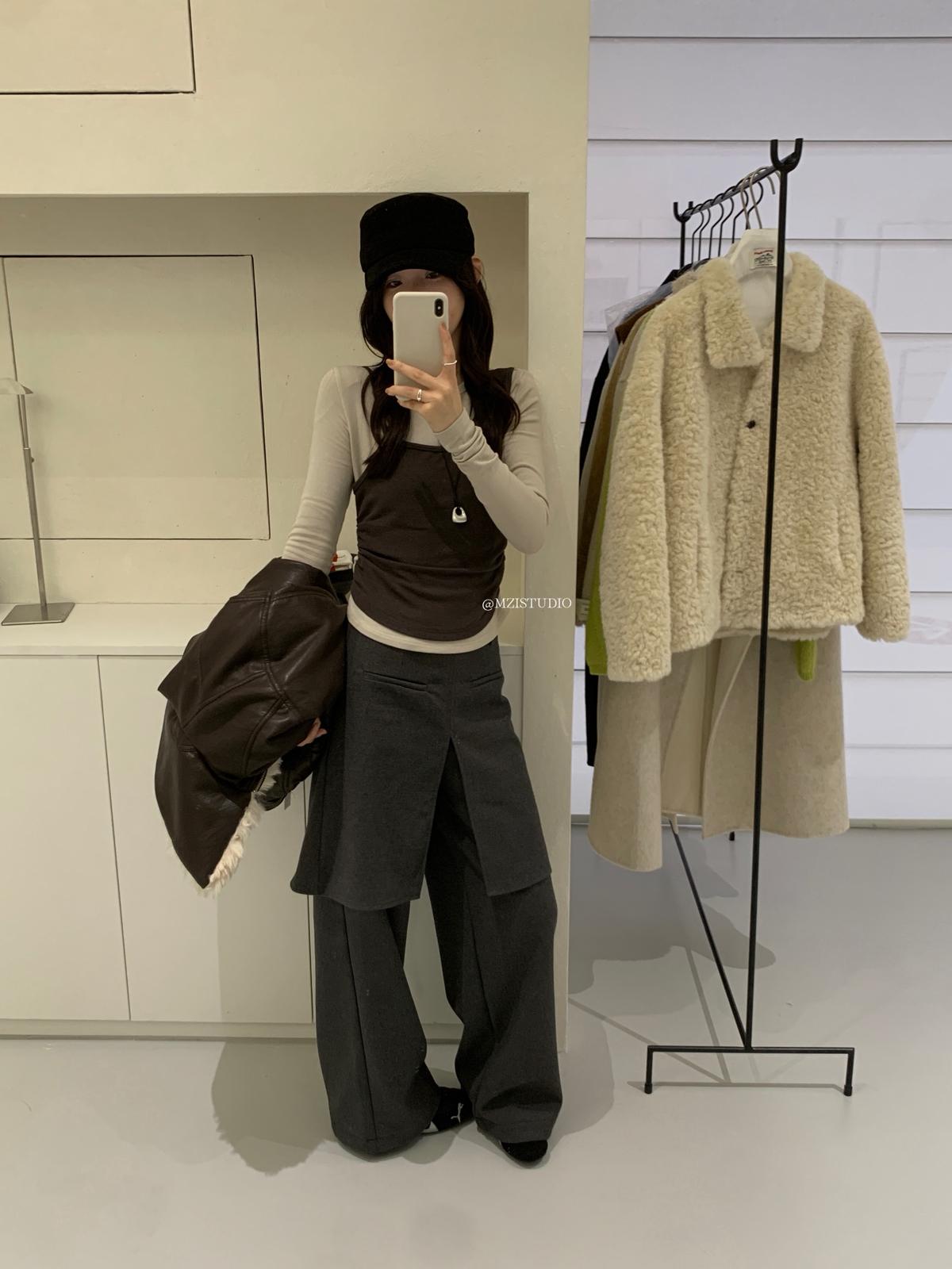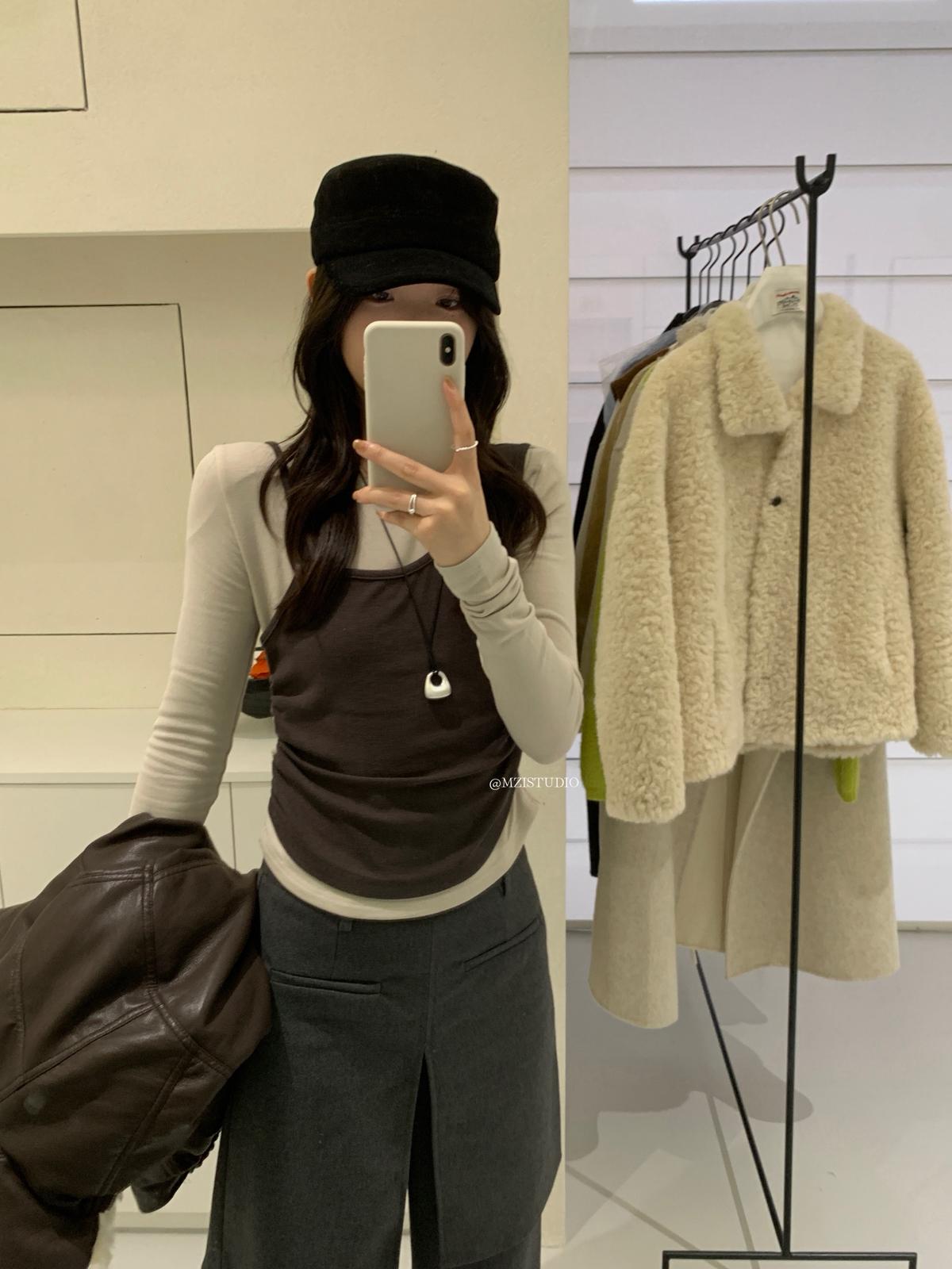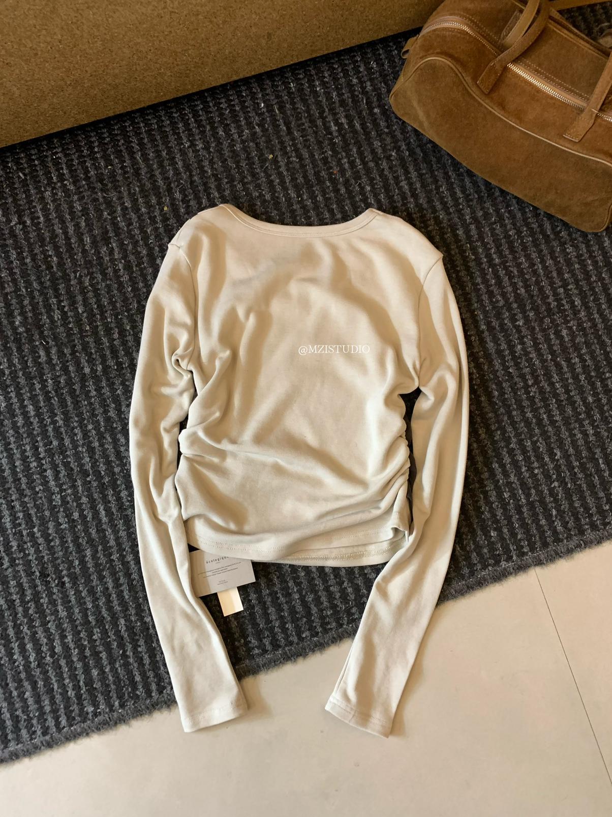 【C7880】凜冬時信韓感滿滿假兩件撞色磨毛收腰修身顯瘦長袖T恤