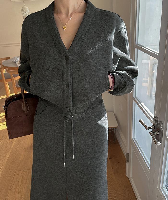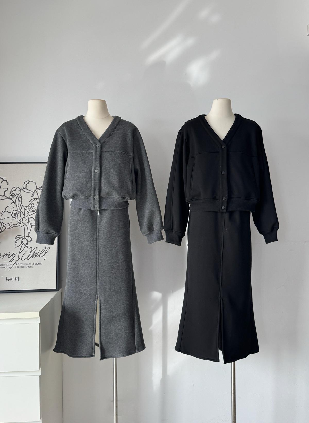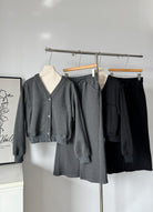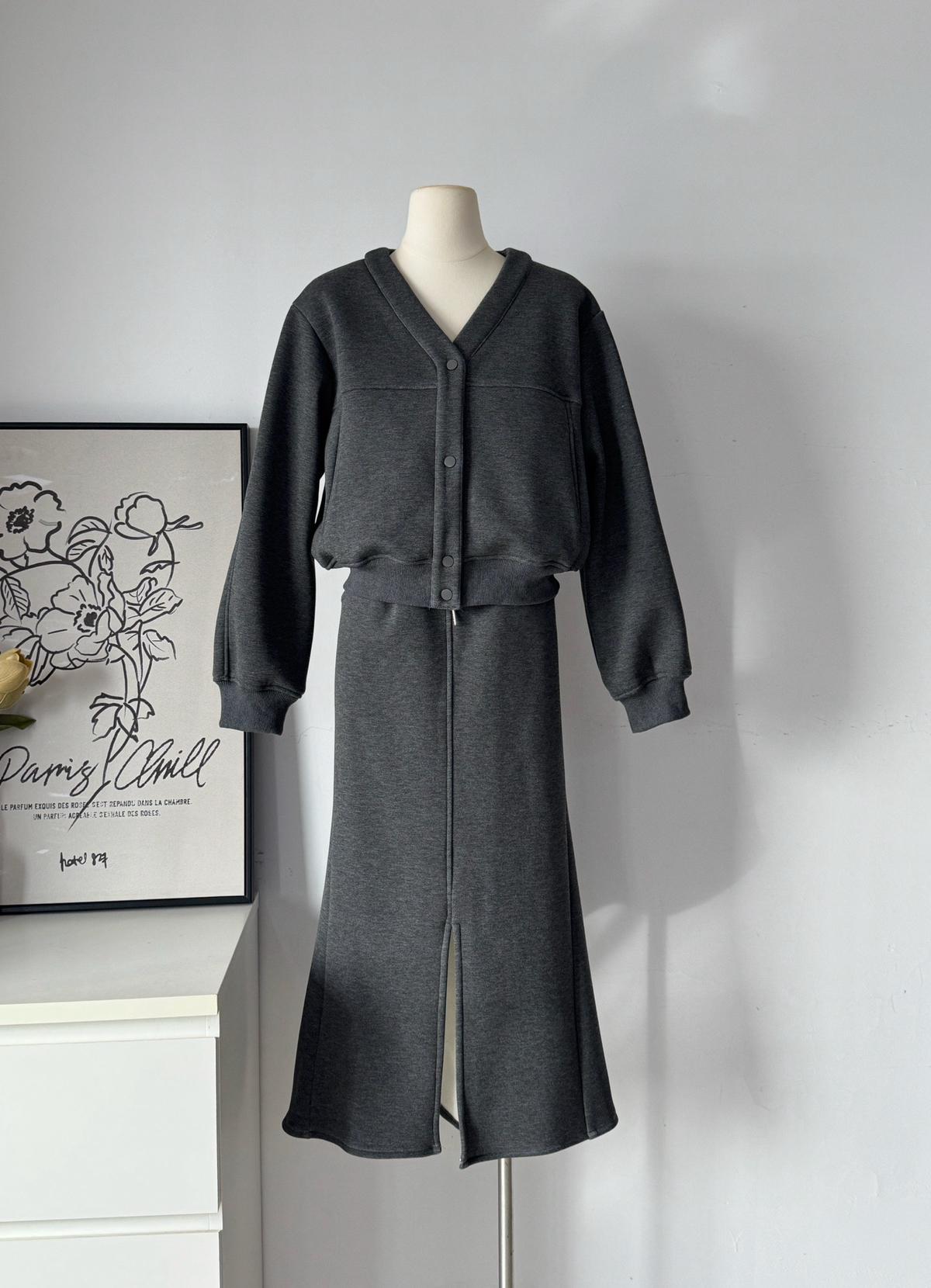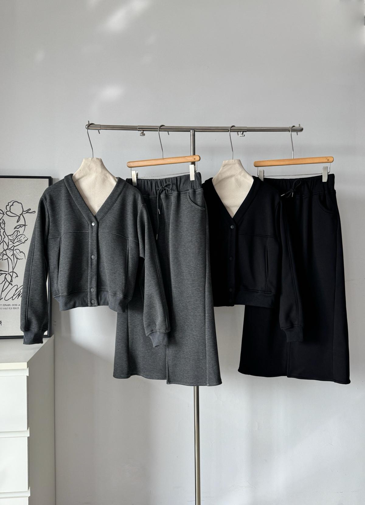 3. 【C7881】韓系v領單排扣外套➕高腰半身裙套裝