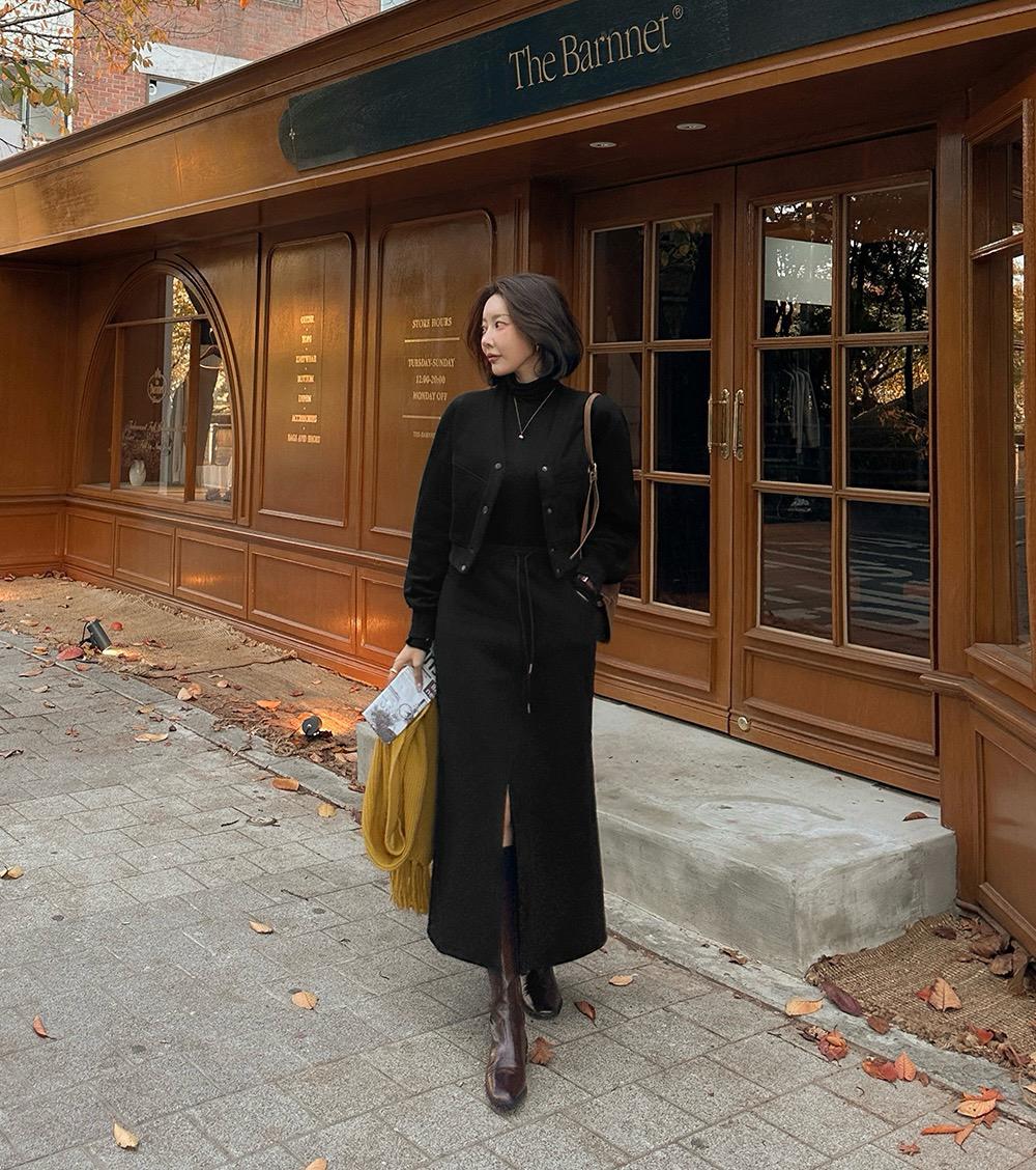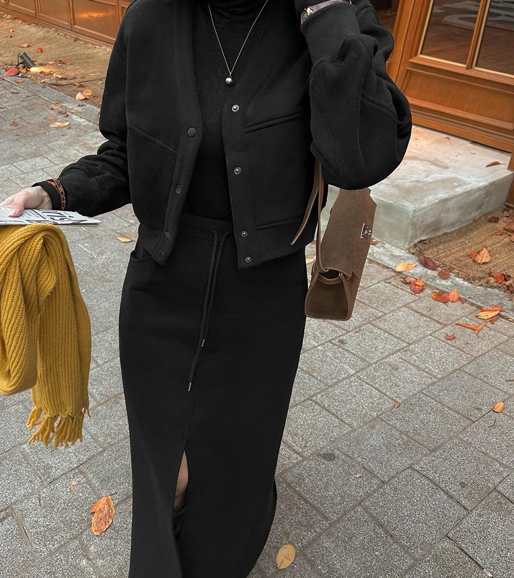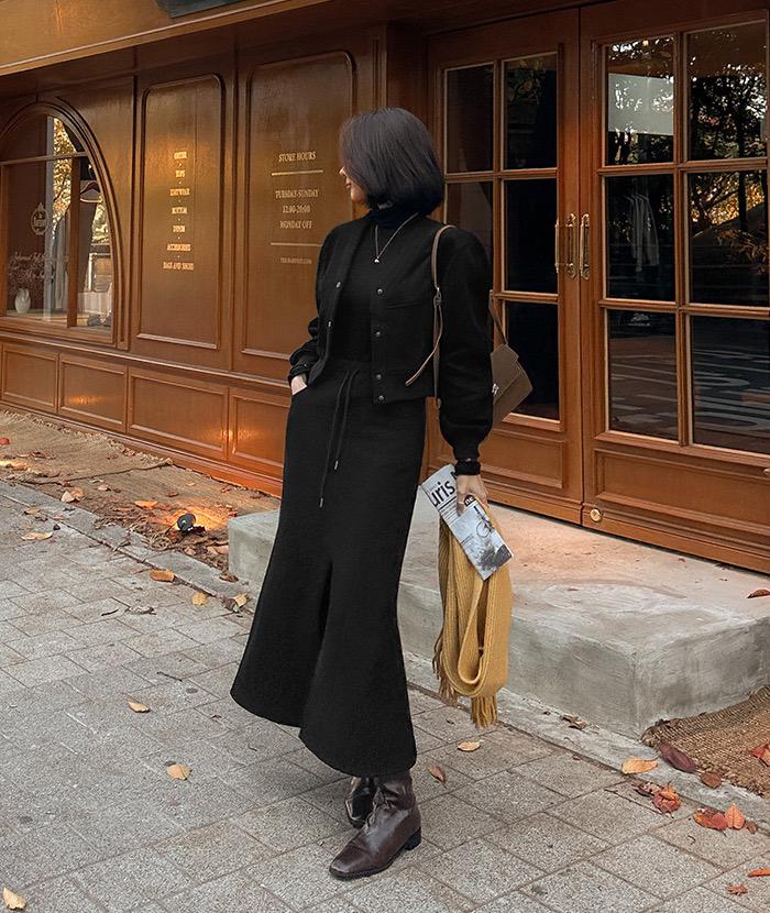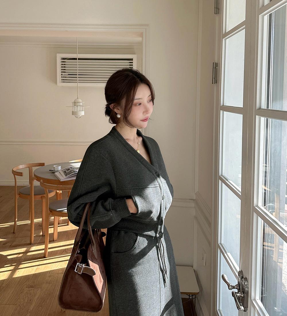 3. 【C7881】韓系v領單排扣外套➕高腰半身裙套裝