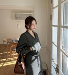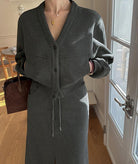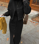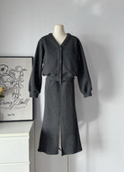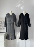 【C7881】韓系v領單排扣外套➕高腰半身裙套裝