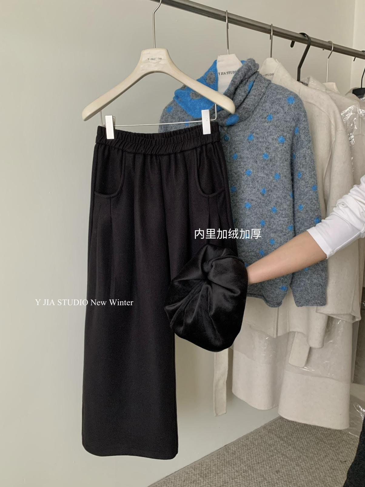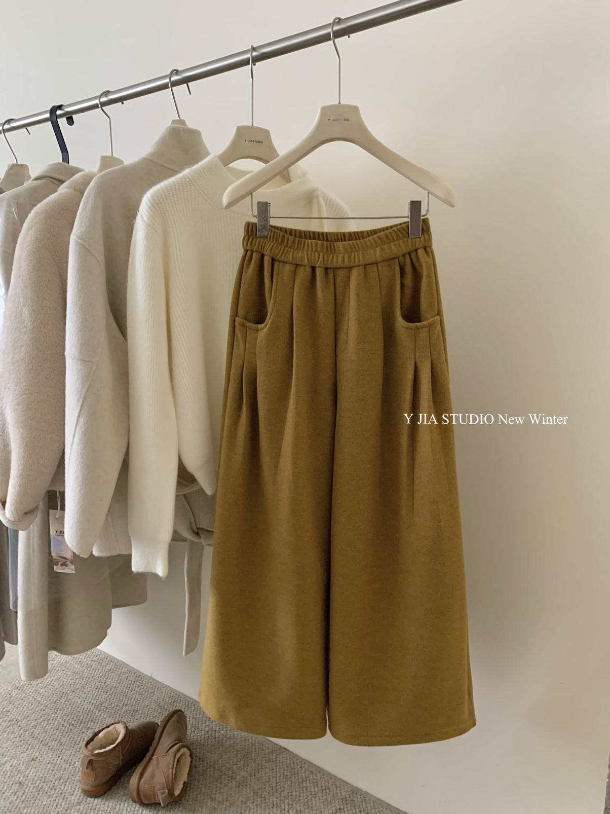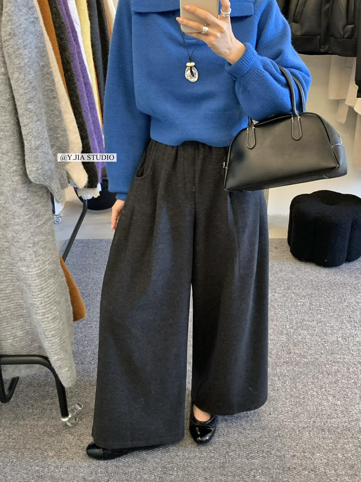 【C7886】加絨加厚闊腿褲毛呢面料厚實!垂感好!休閒褲
