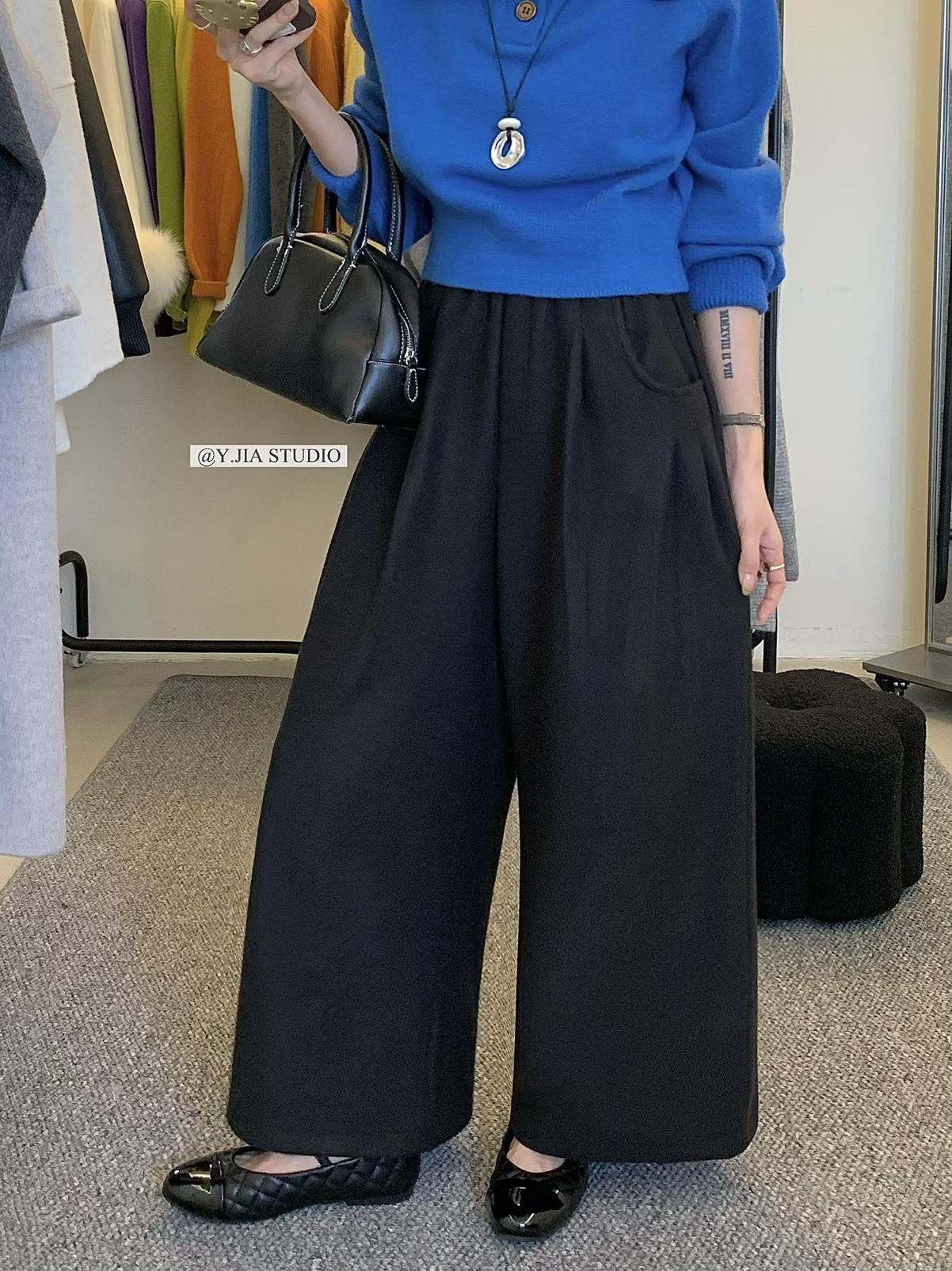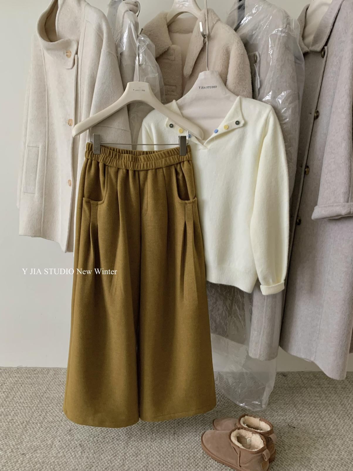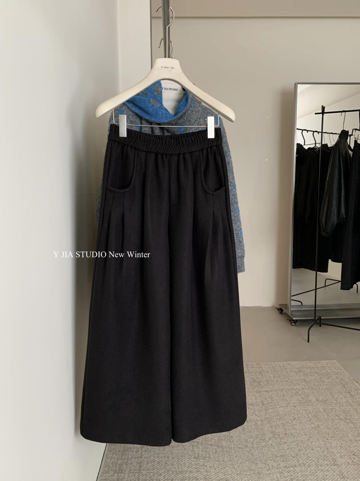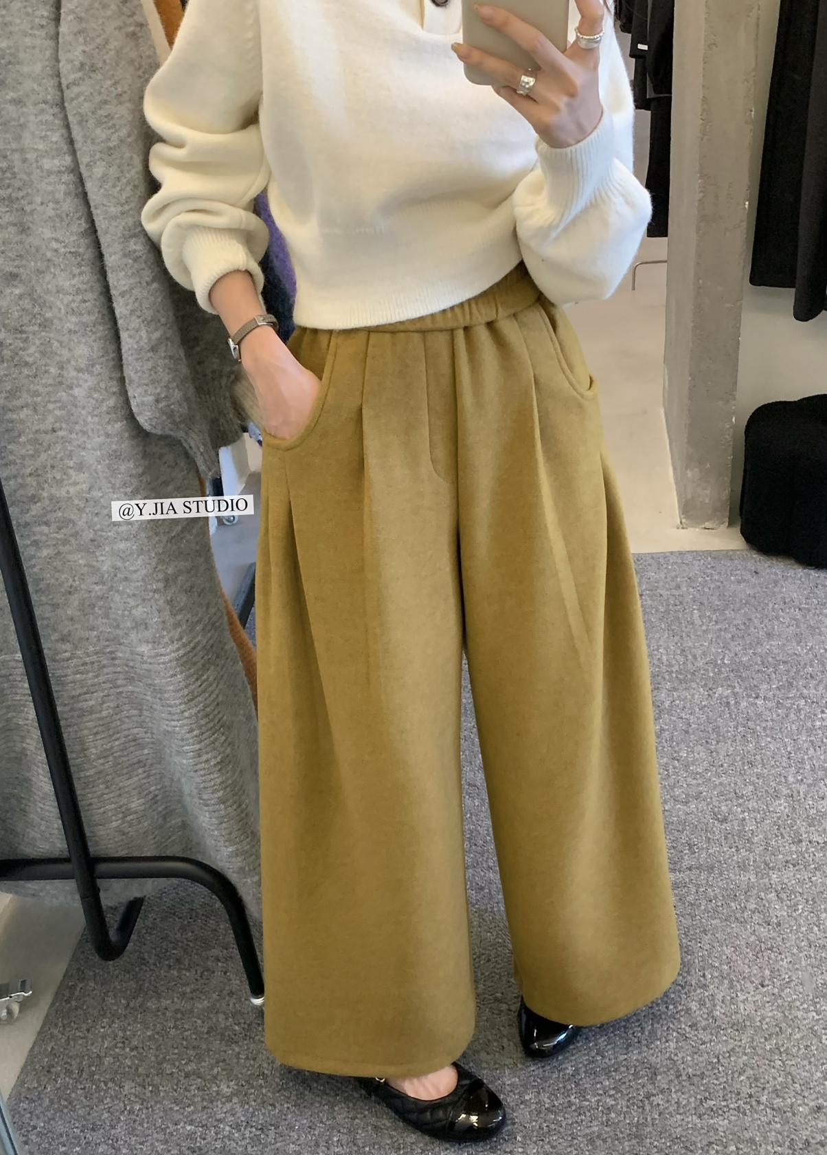 【C7886】加絨加厚闊腿褲毛呢面料厚實!垂感好!休閒褲