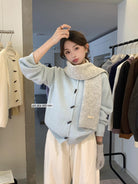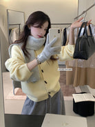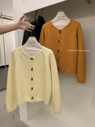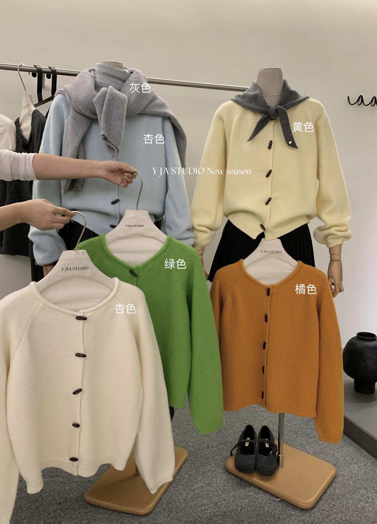 【C7890】氣質軟糯慵懶牛角扣百搭開衫保暖毛衣