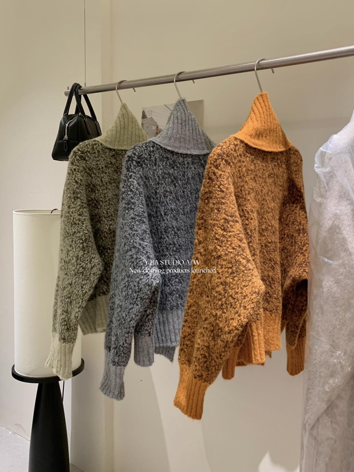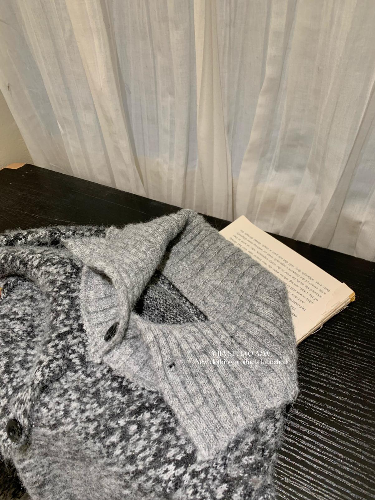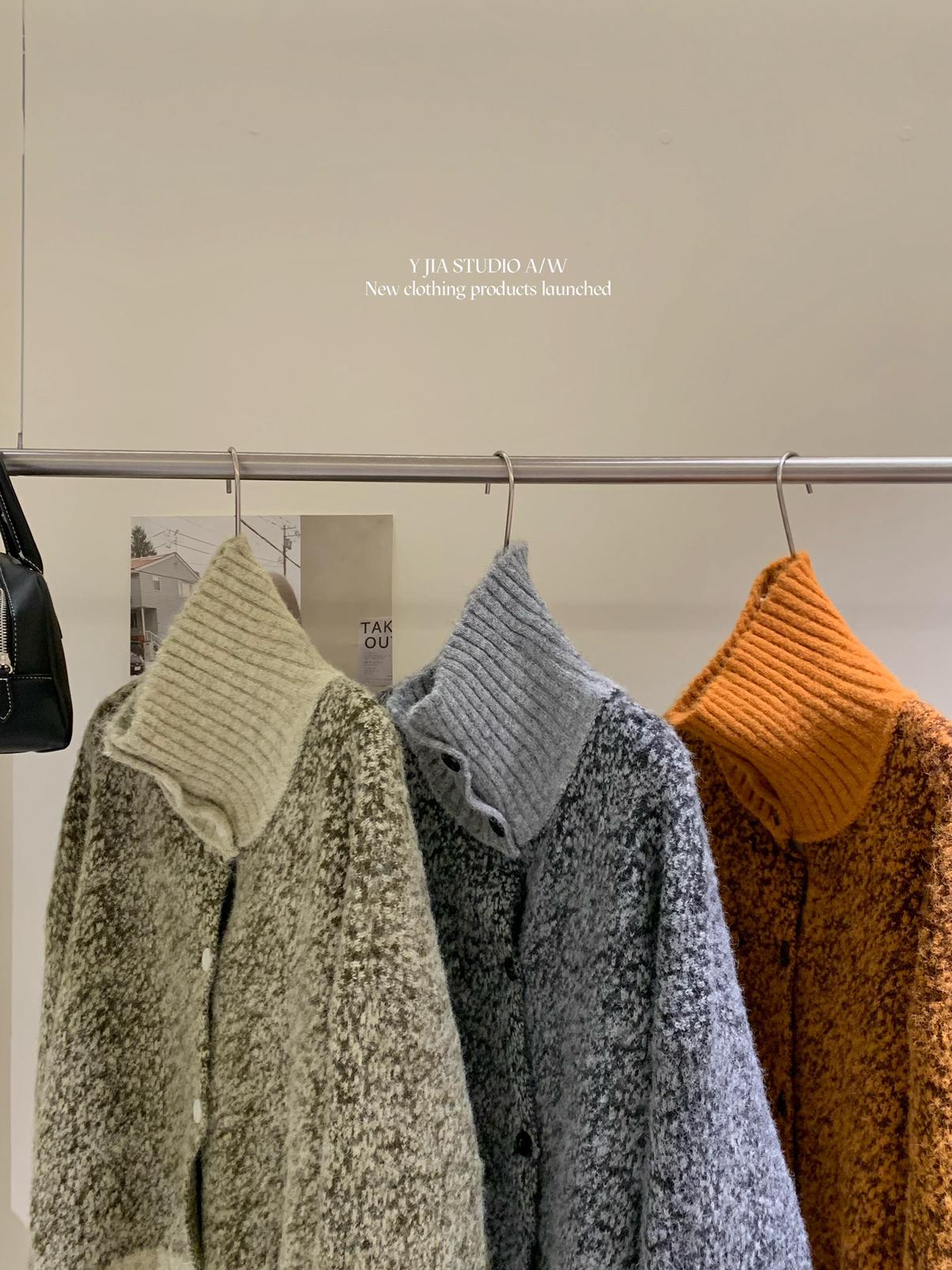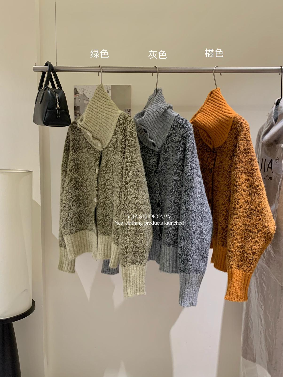 3. 【C7891】鬆弛意式慵懶設計感百搭大翻領立領兩穿混色開衫保暖毛衣