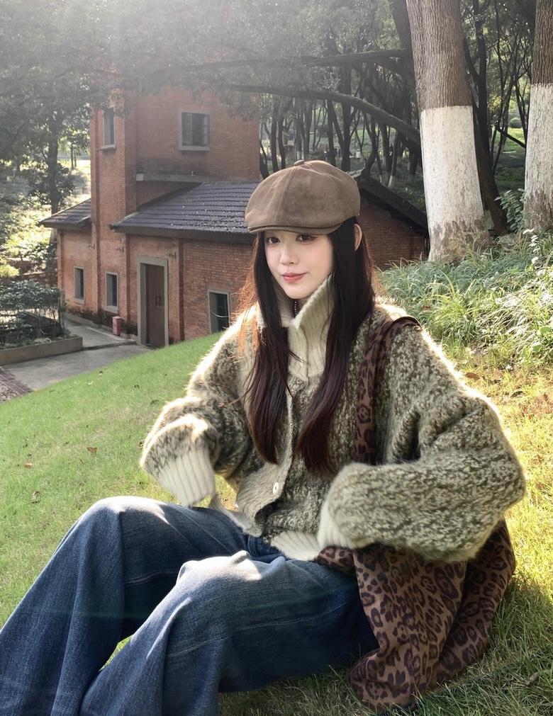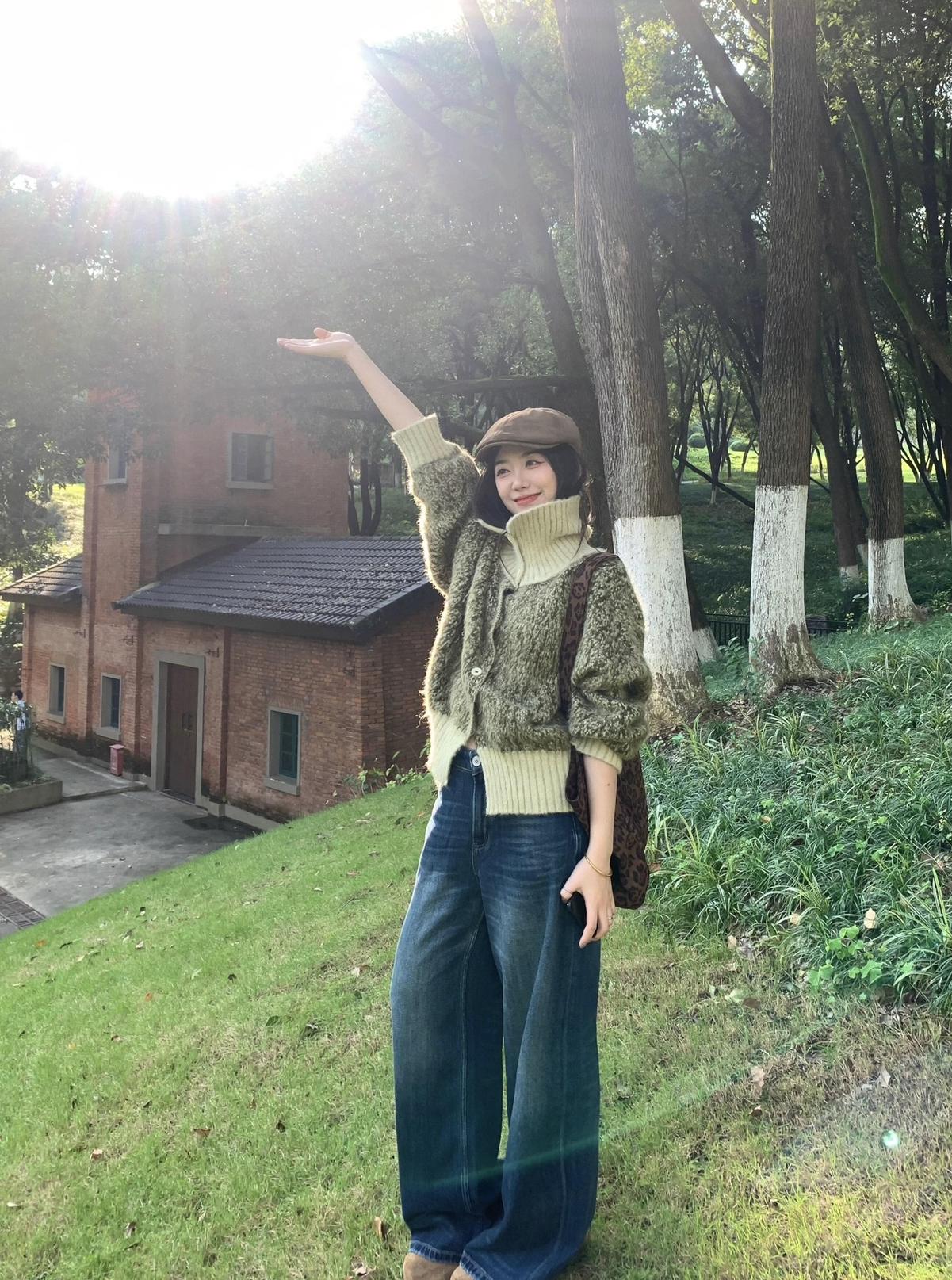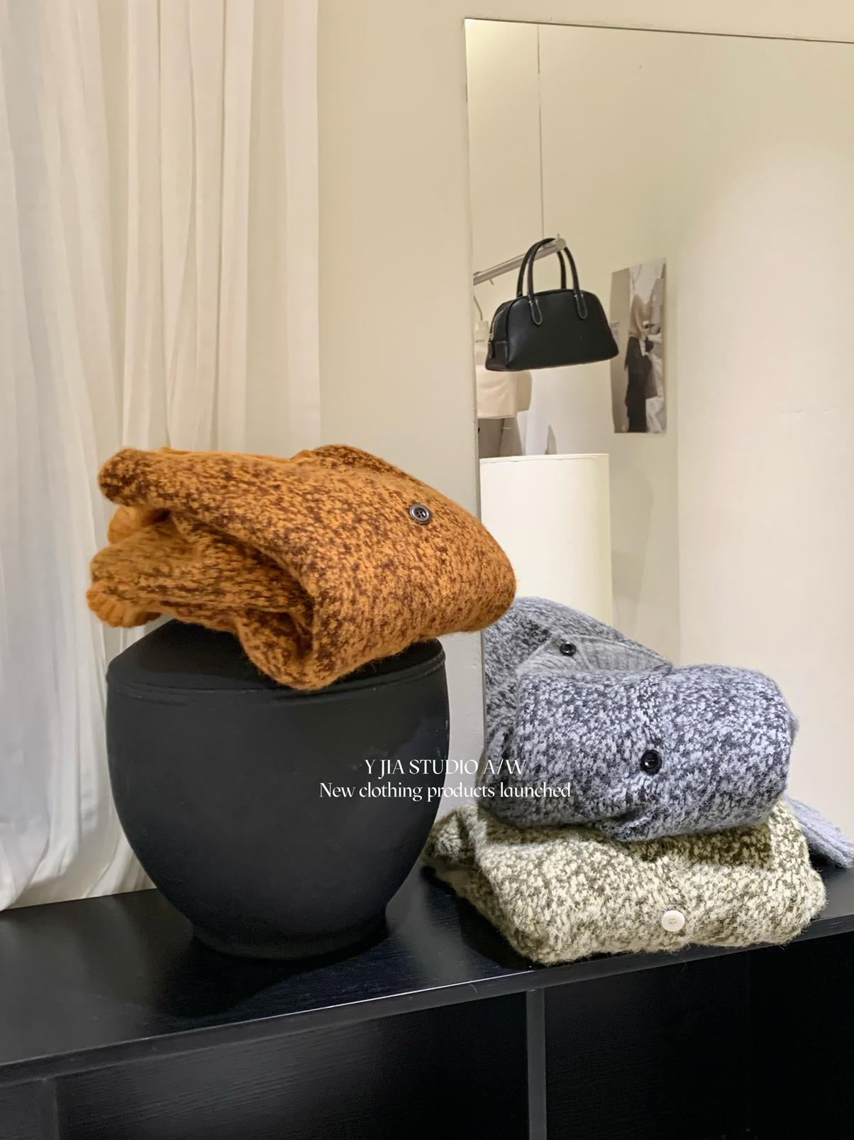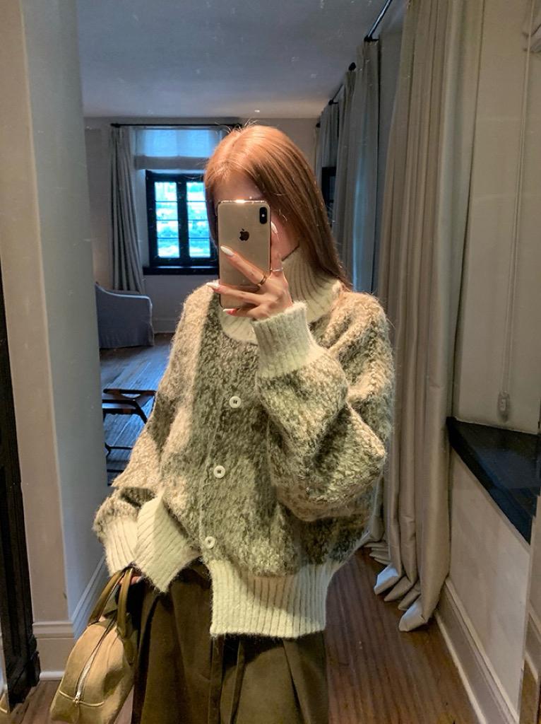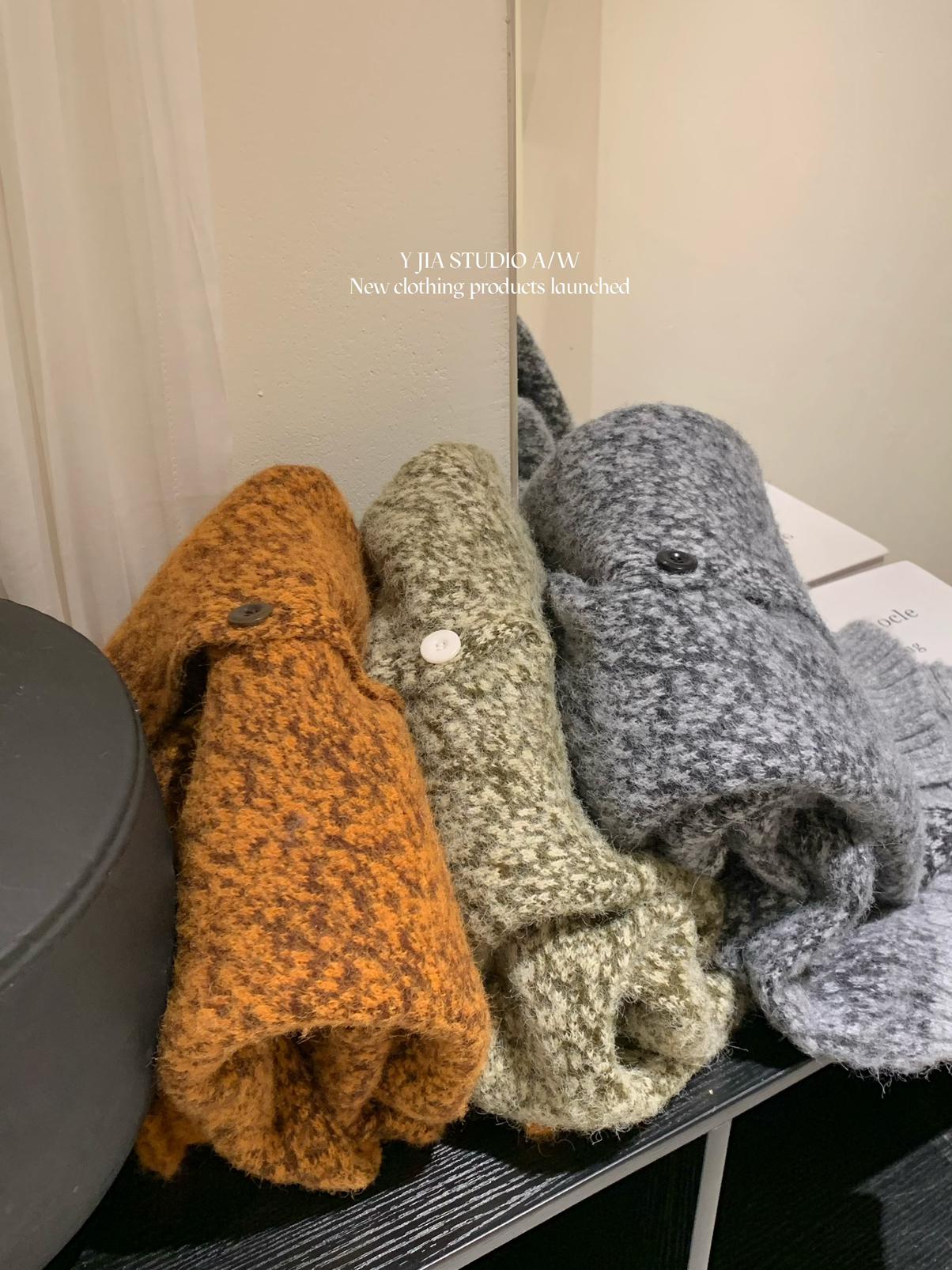 3. 【C7891】鬆弛意式慵懶設計感百搭大翻領立領兩穿混色開衫保暖毛衣