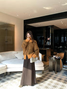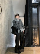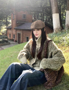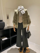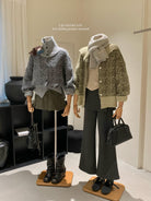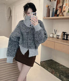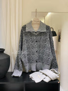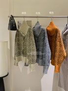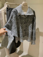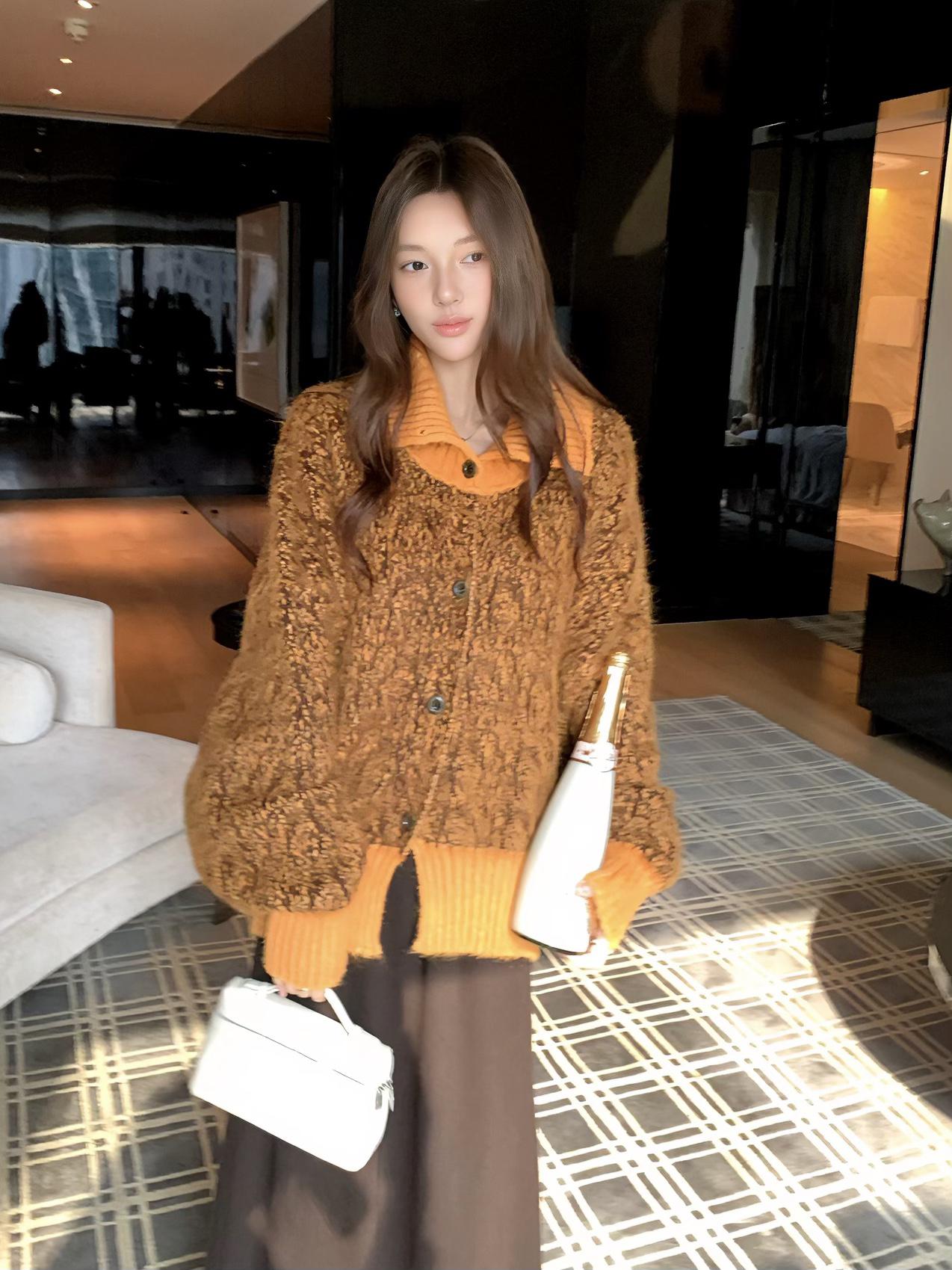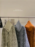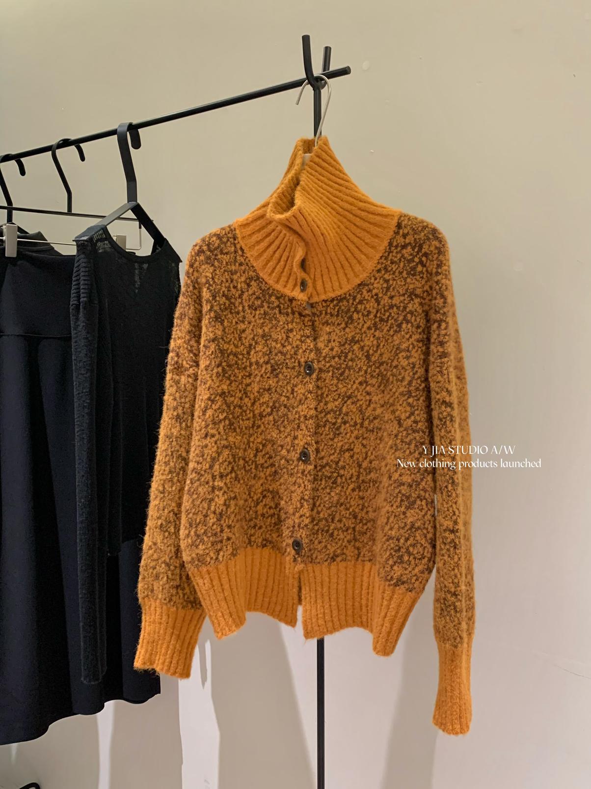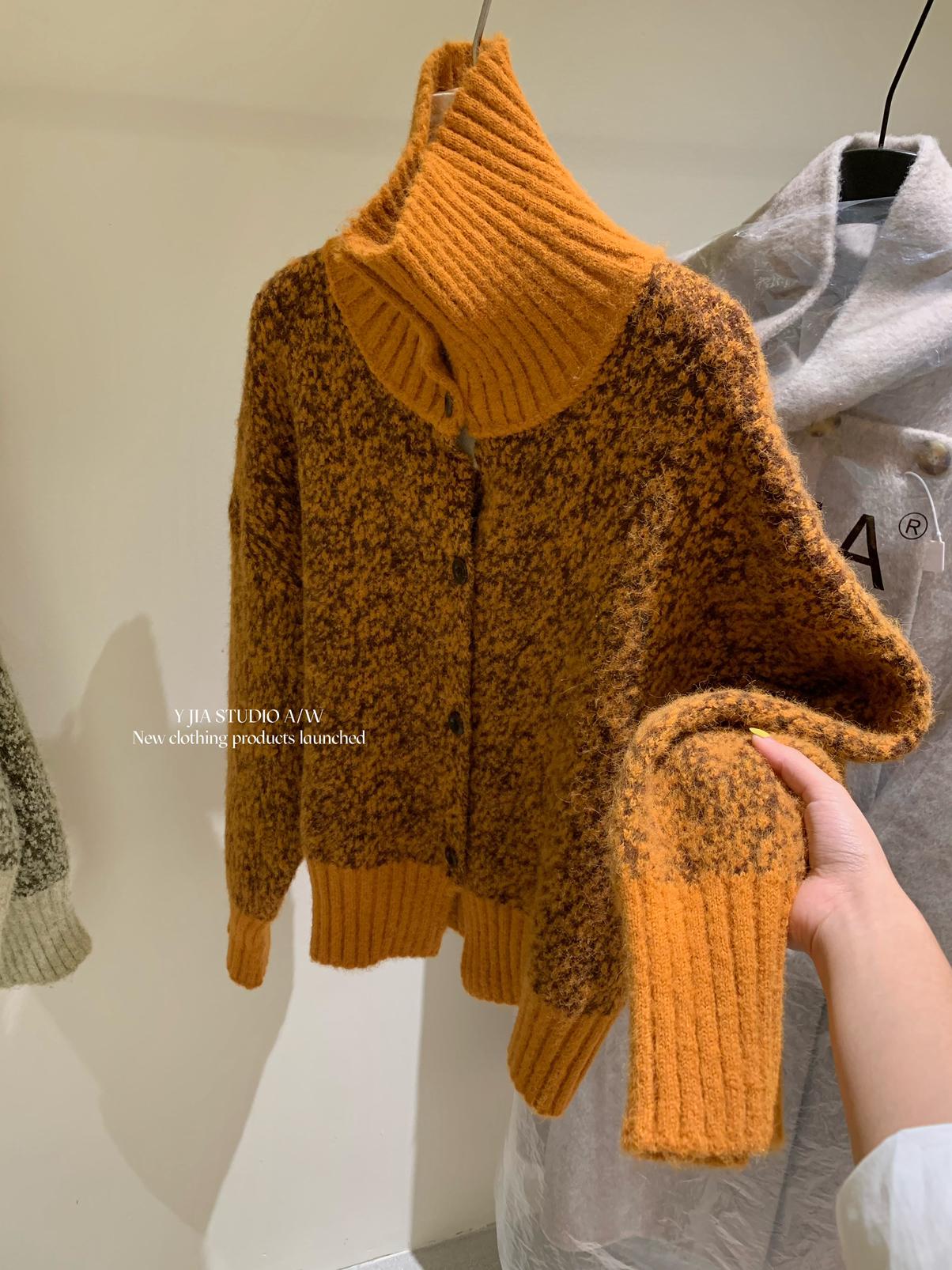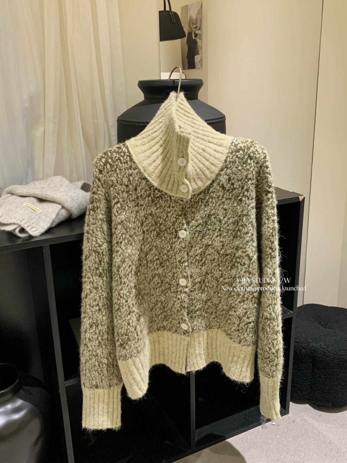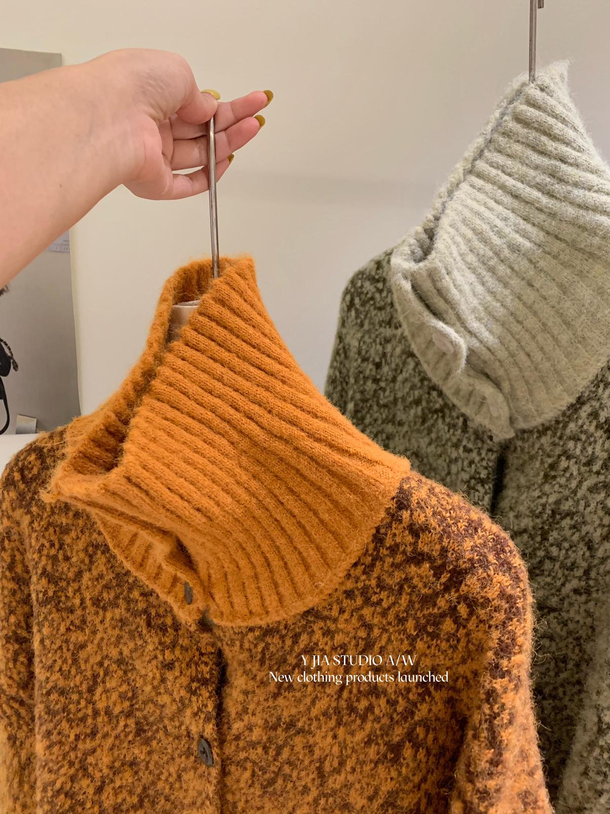 【C7891】鬆弛意式慵懶設計感百搭大翻領立領兩穿混色開衫保暖毛衣