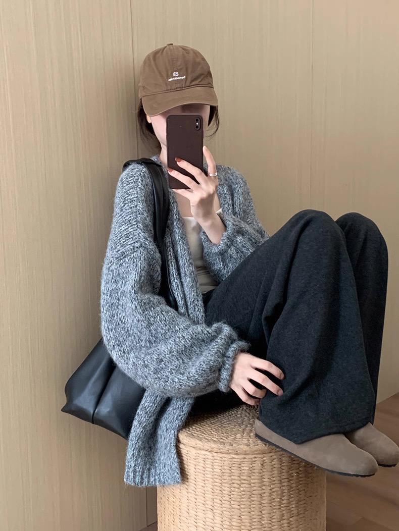 3. 【C7892】氣質花線慵懶風開衫秋冬韓版寬鬆顯瘦減齡簡約風上衣針織開衫