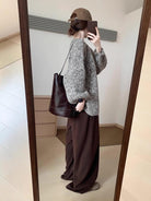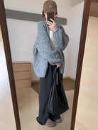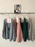 【C7892】氣質花線慵懶風開衫秋冬韓版寬鬆顯瘦減齡簡約風上衣針織開衫