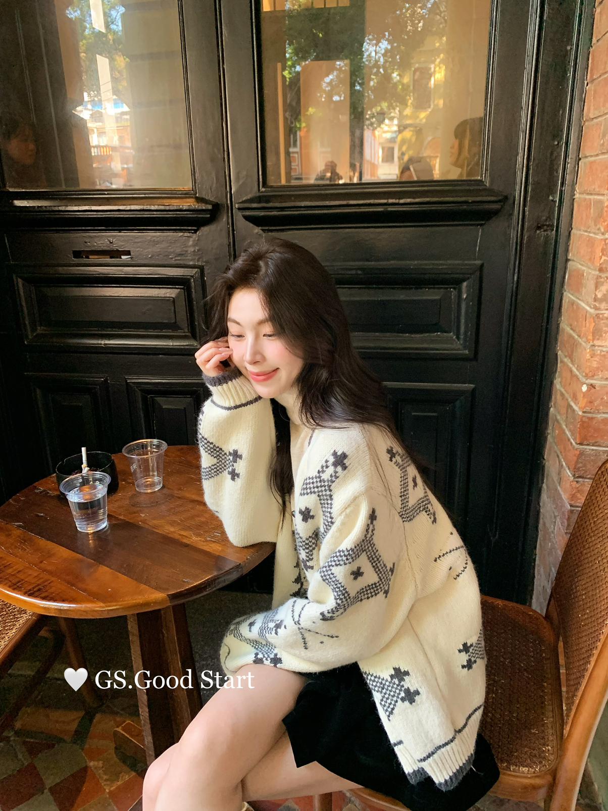 【C7895】自帶流量!vtg中古系列秒種草!冬復古休閒費爾島提花牛角扣保暖毛衣