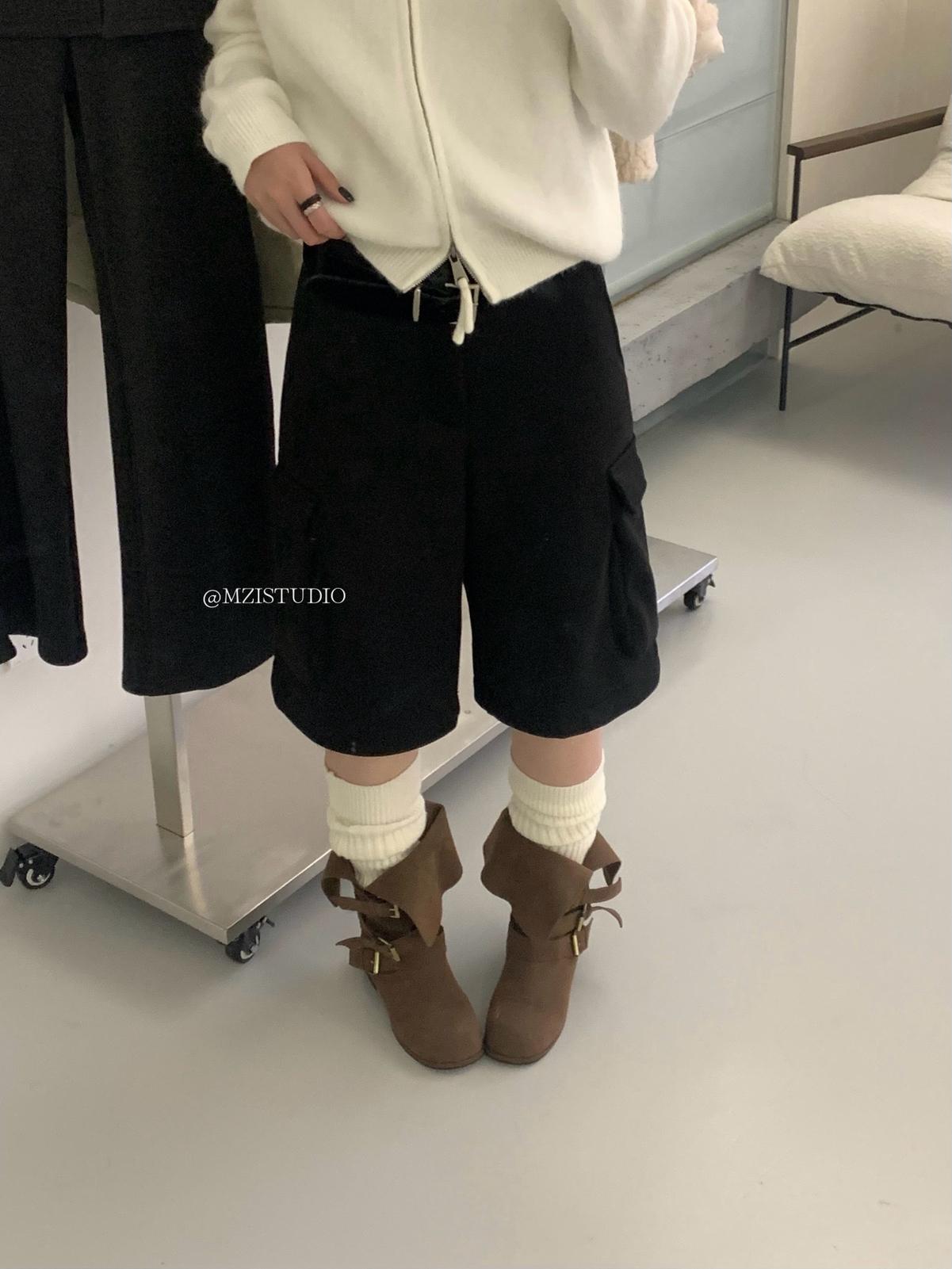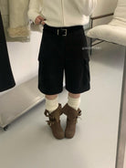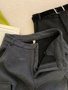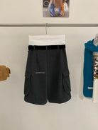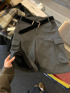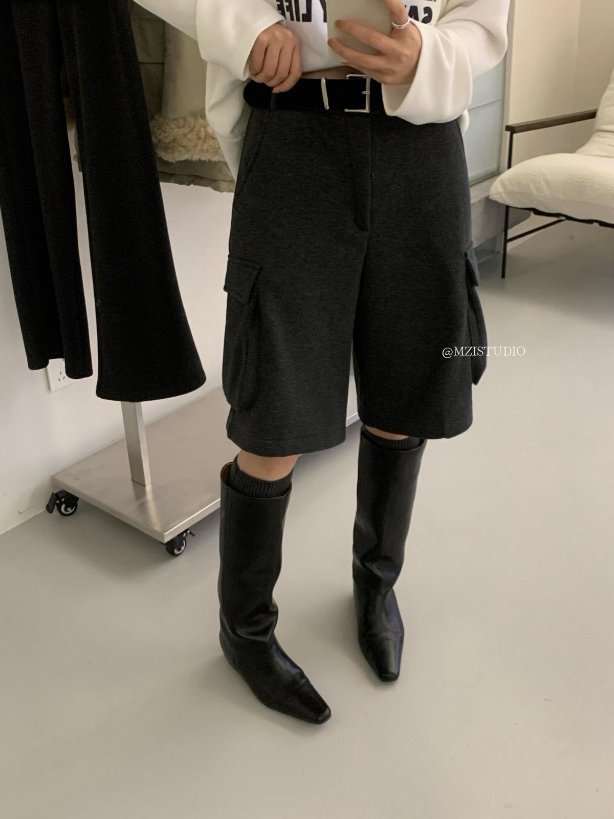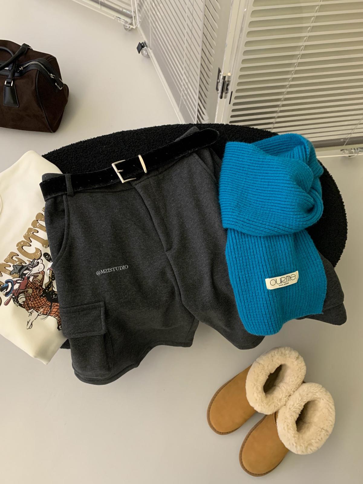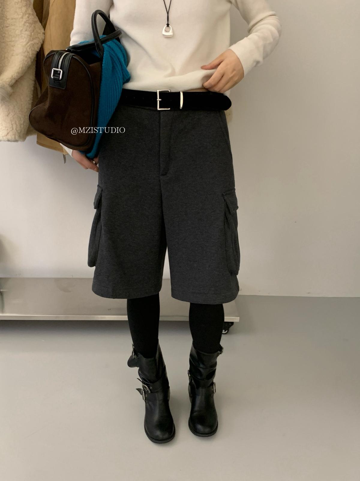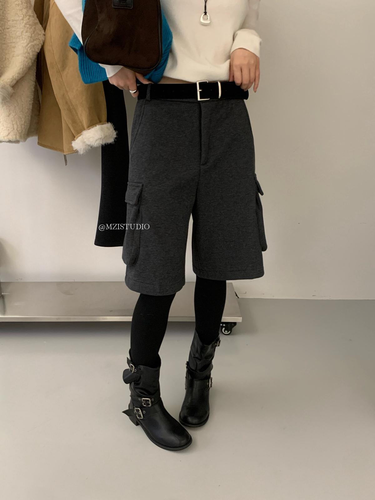 【C7903】首爾高智格雷系冬季加絨加厚大口袋低飽和五分工裝褲(配皮帶)