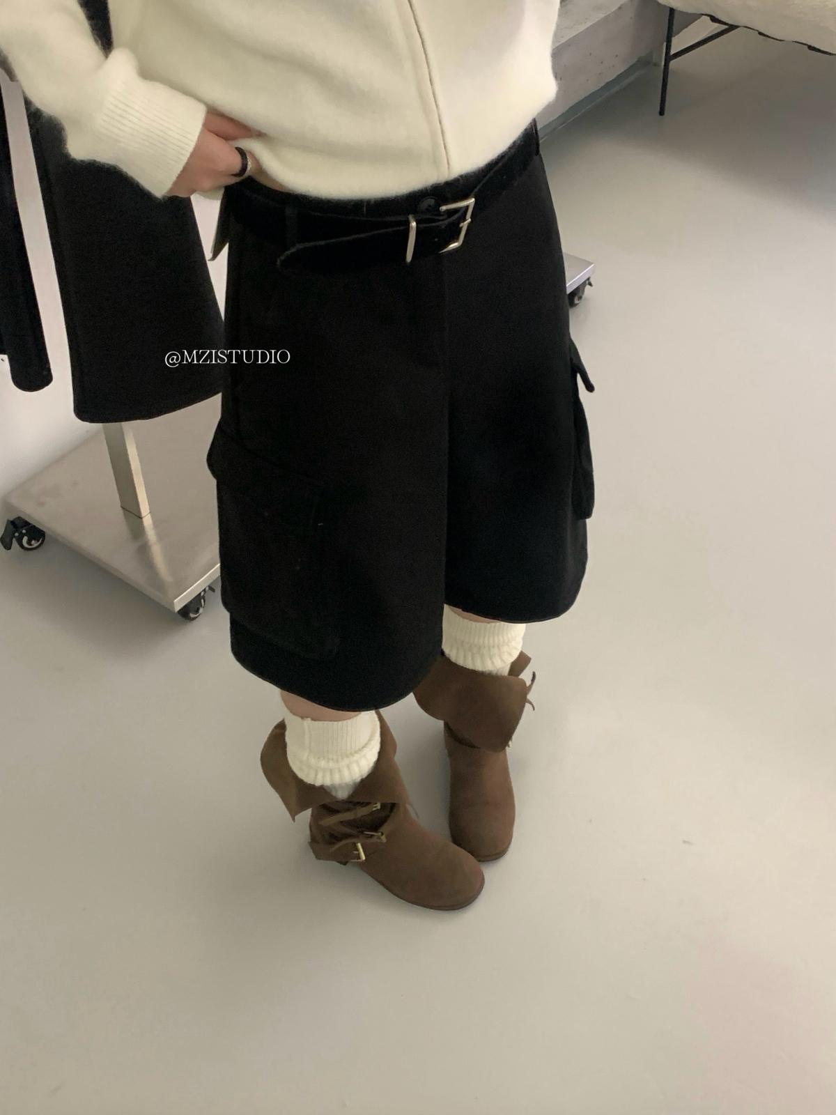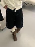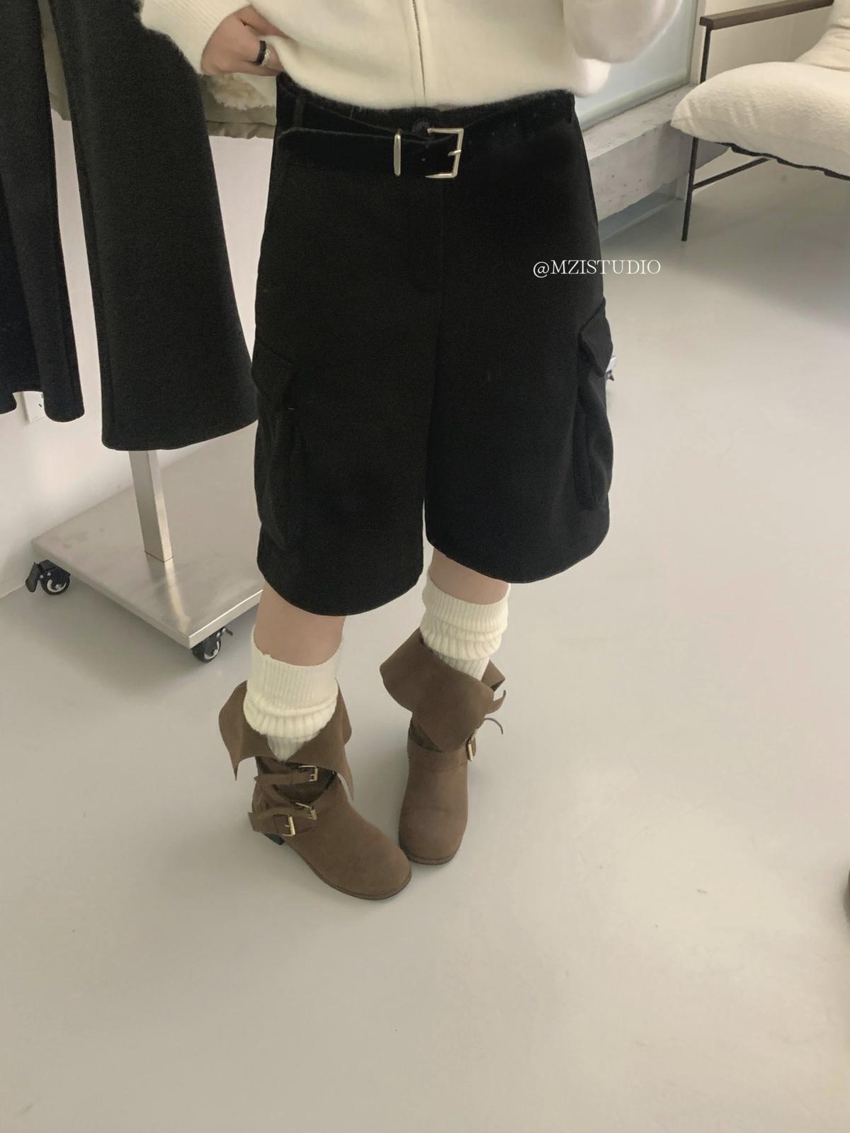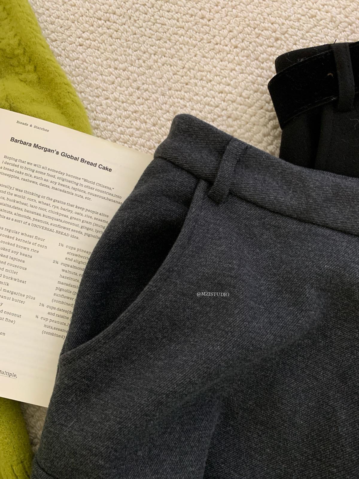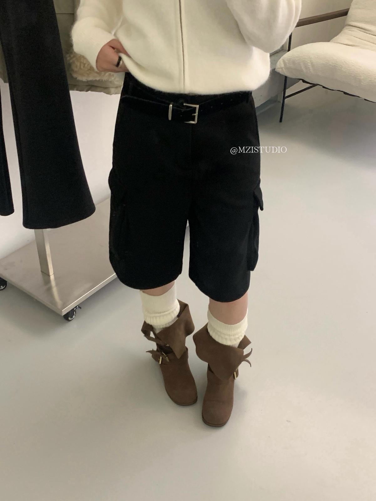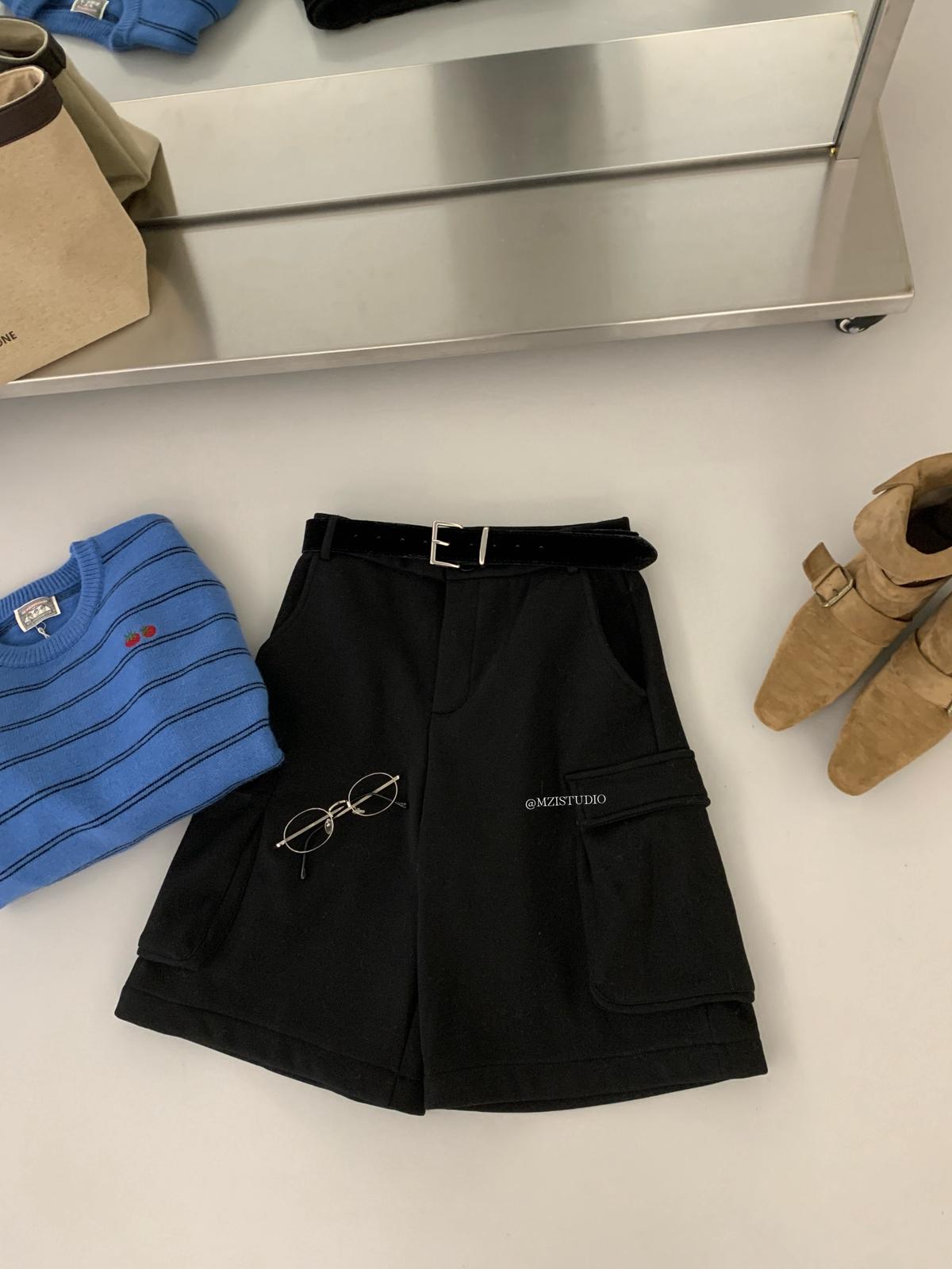 【C7903】首爾高智格雷系冬季加絨加厚大口袋低飽和五分工裝褲(配皮帶)