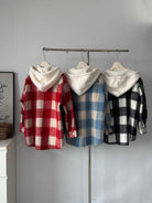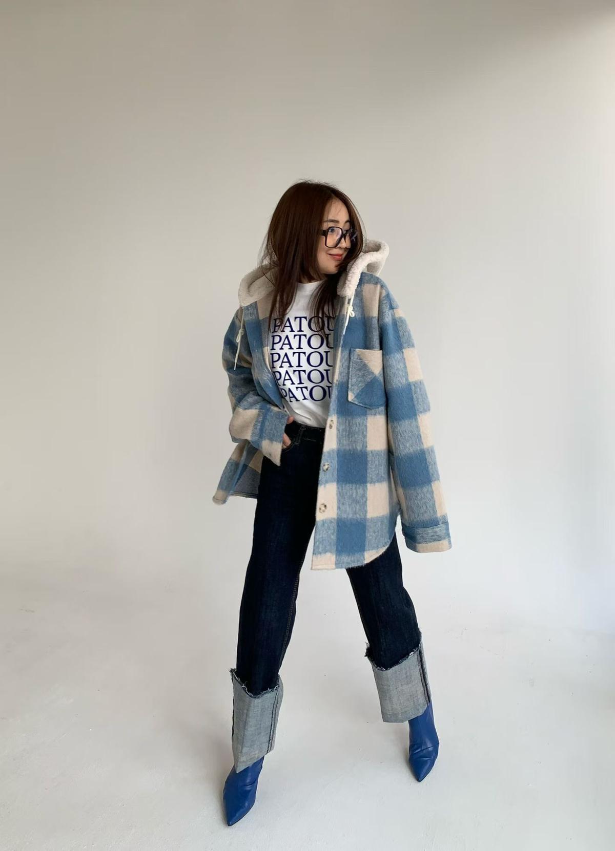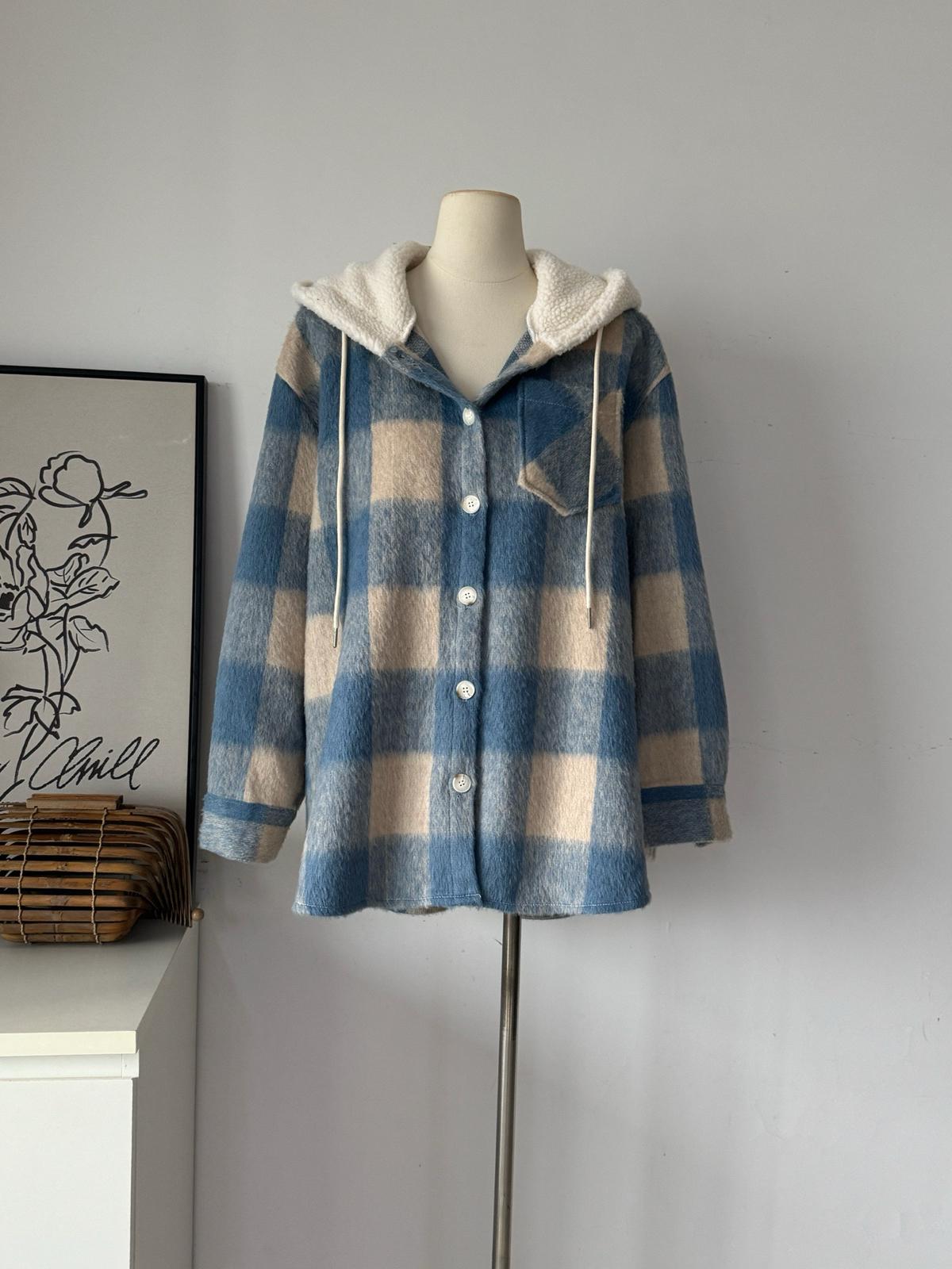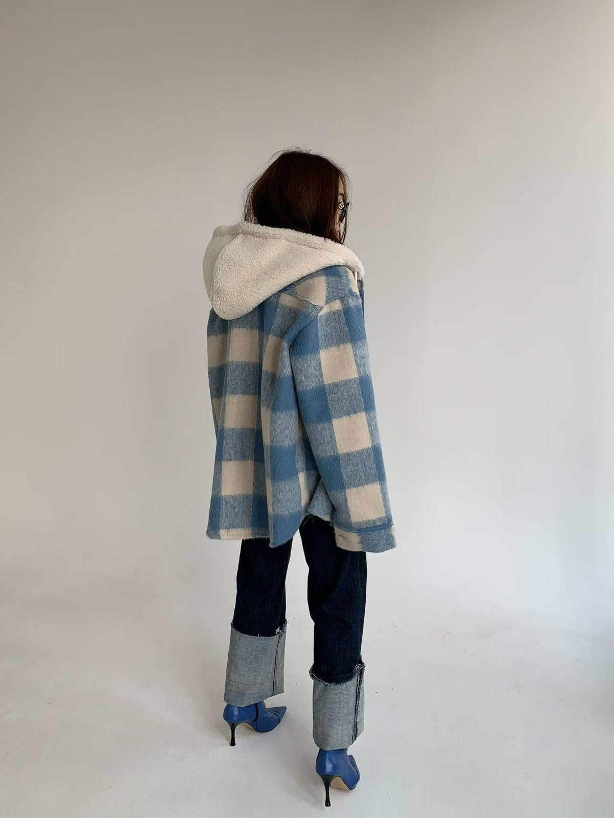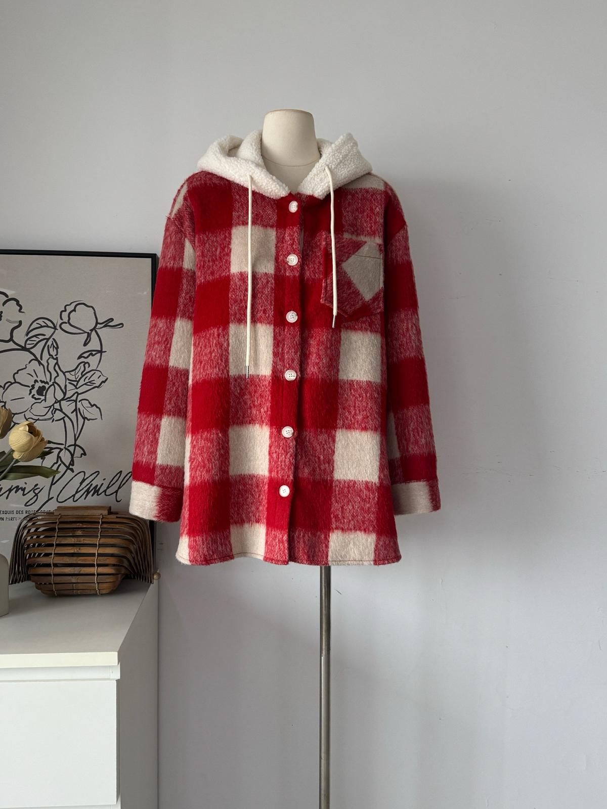 3. 【C7908】冬季新款外套上衣時髦毛絨連帽格子外套短外套