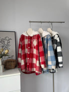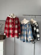 【C7908】冬季新款外套上衣時髦毛絨連帽格子外套短外套