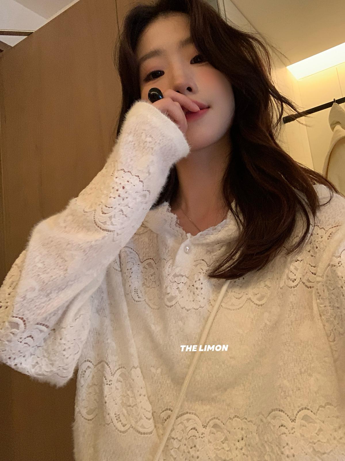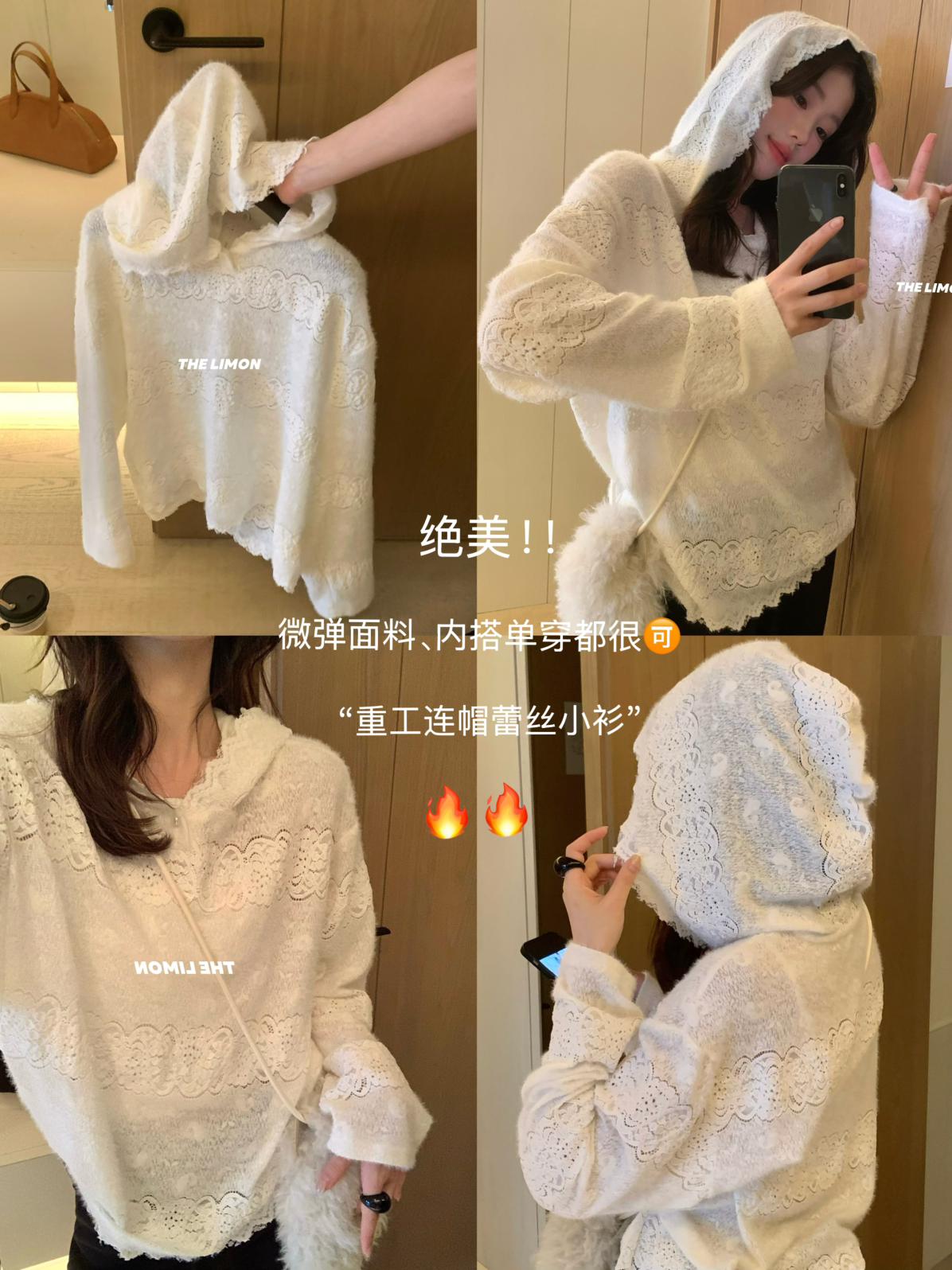3. 【C7911】重工鉤花蕾絲拼接連帽微彈小衫
