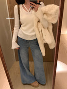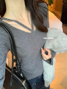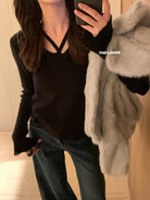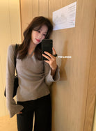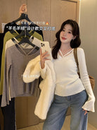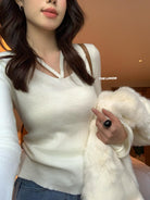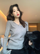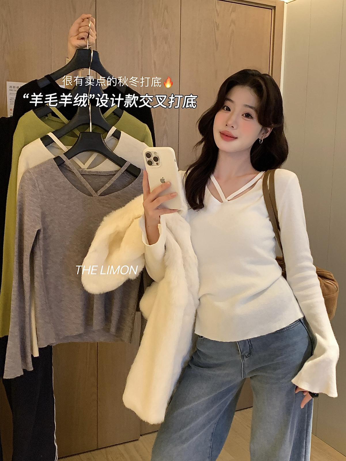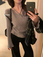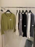 【C7912】設計感簡約v領修身打底針織衫(含6%羊毛)